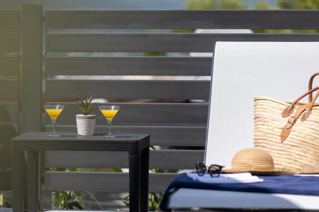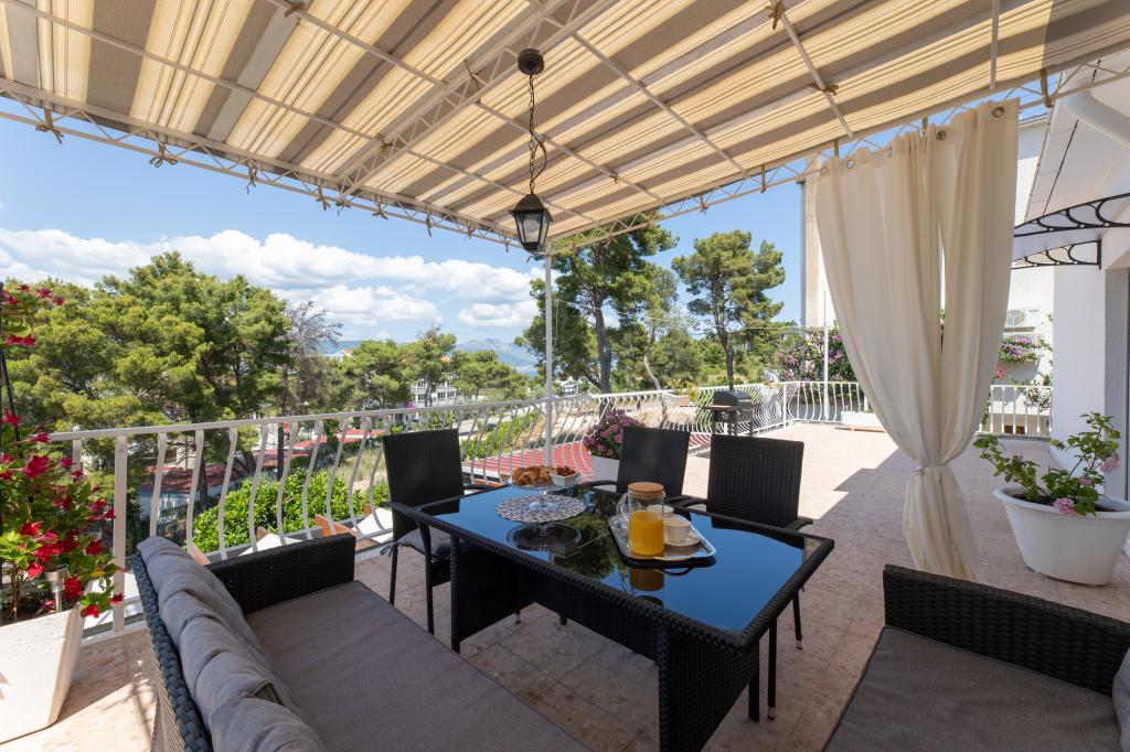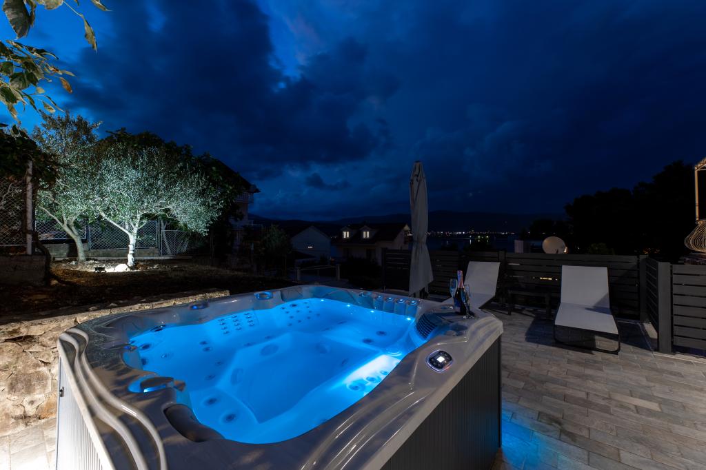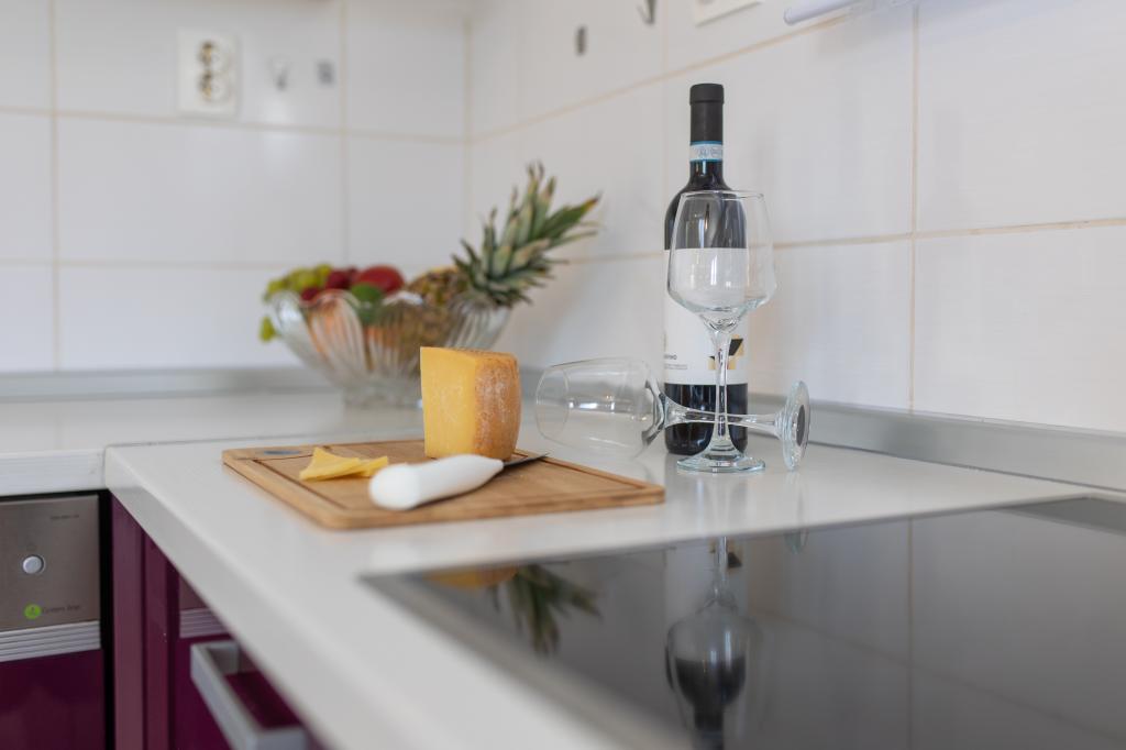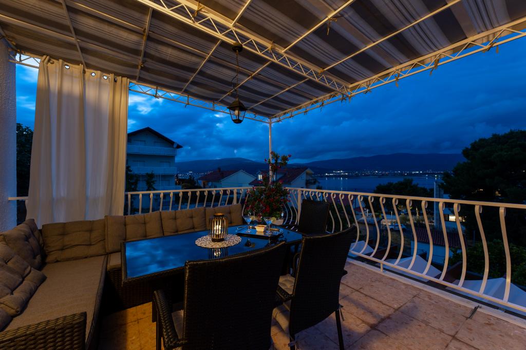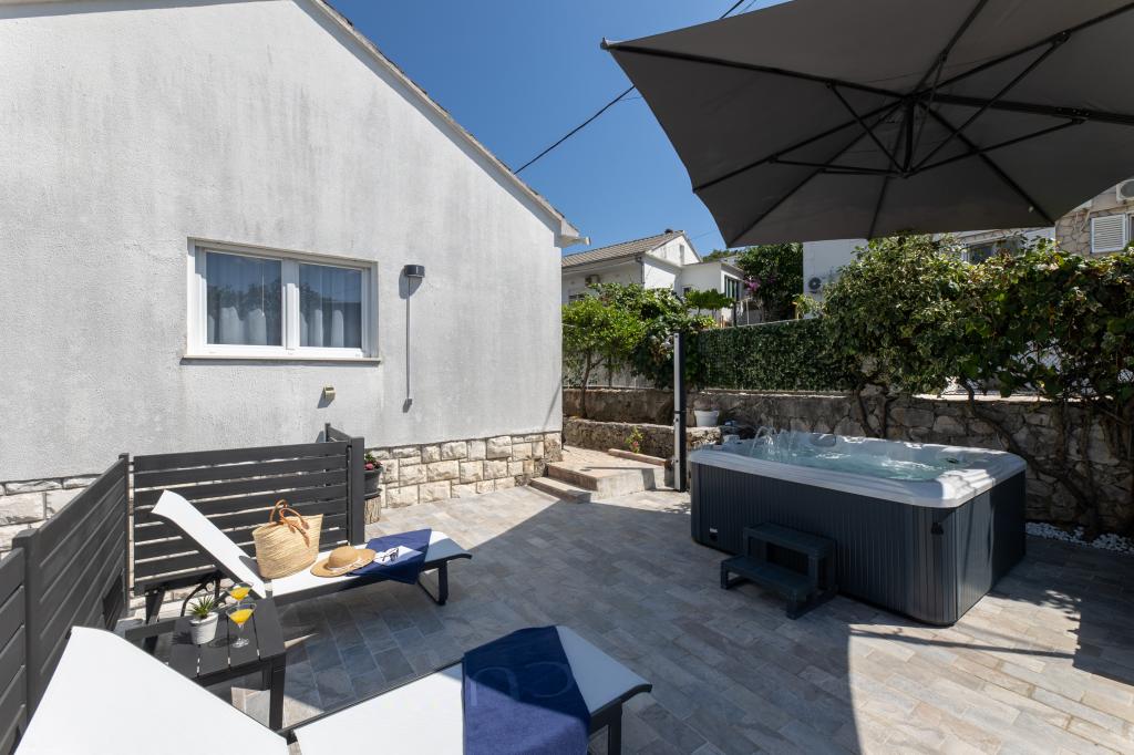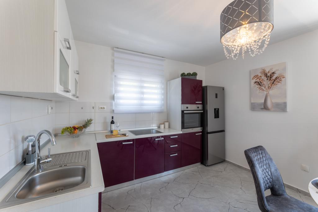 The two-room apartment is the perfect choice for a longer stay at the sea. The large kitchen includes a dishwasher, oven, hob, toaster and kettle. The terrace offers a view of the sea and the mountains, thus providing an exceptional feeling of relaxation. If you decide to grill, guests are provided with a new grill with the necessary equipment. The spacious rooms have wardrobes, and towels and bed linen are available. Within the apartment, guests have the option of using their own jacuzzi. The apartment is air-conditioned and has WI-FI coverage.