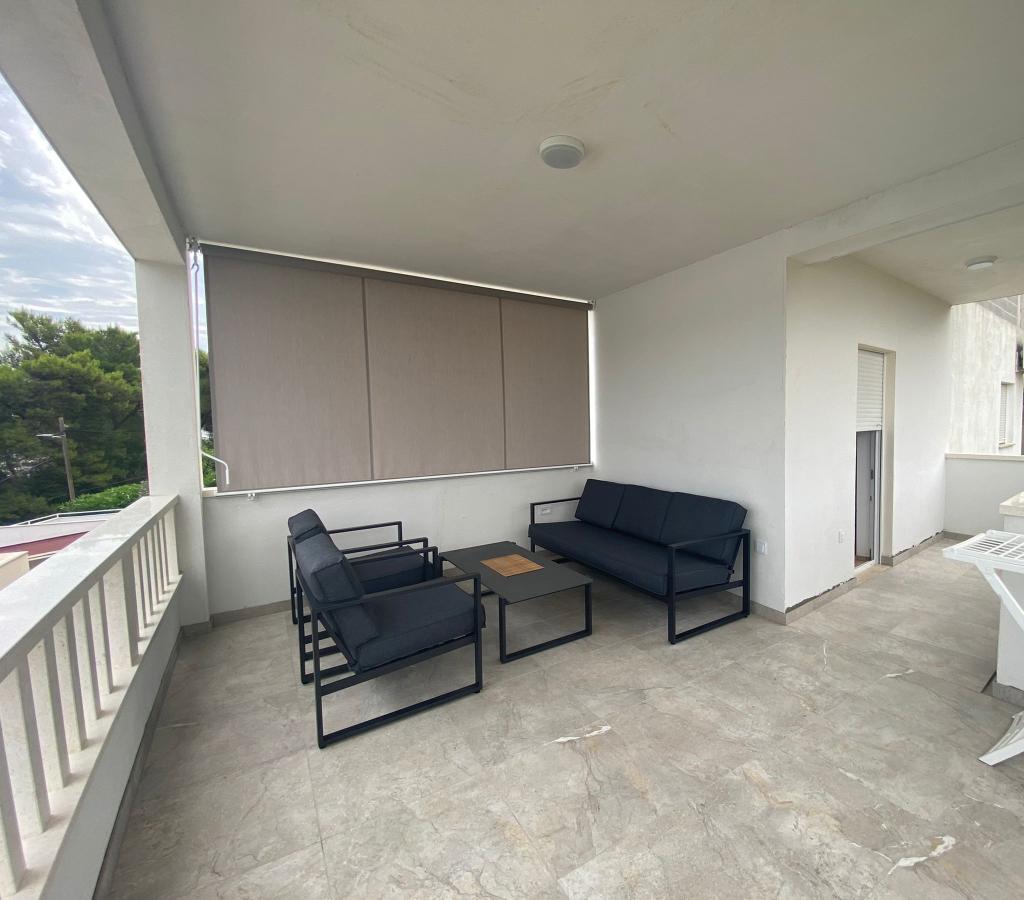 Apartments Klarić are located in a family house on the island of Čiovo. The reconstruction of the balcony is in the final stage and will be in operation this season, and it is now about 24 square meters. The house has 3 fully furnished and equipped apartments that can accommodate 4 people each. Each apartment has its own terrace with a beautiful view of the sea and Kaštela Bay. In front of the house there is a parking lot with space for 6 cars, and 20 m from the house is a concrete beach, and 50 m from a pebble and concrete beach as well as a beach bar. All our guests have the possibility to use the barbecue located in the yard of the house. Only 4 km from the apartment is the beautiful town of Trogir, the old part of which is included in the UNESCO list of cultural heritage monuments. Some of the ancient antiquities are the Trogir Cathedral of St. Lovre, Ćipiko Palace, Kamerlengo Tower... Visit Apartments KLARIĆ and treat yourself to a dream vacation. We are looking forward and I expect