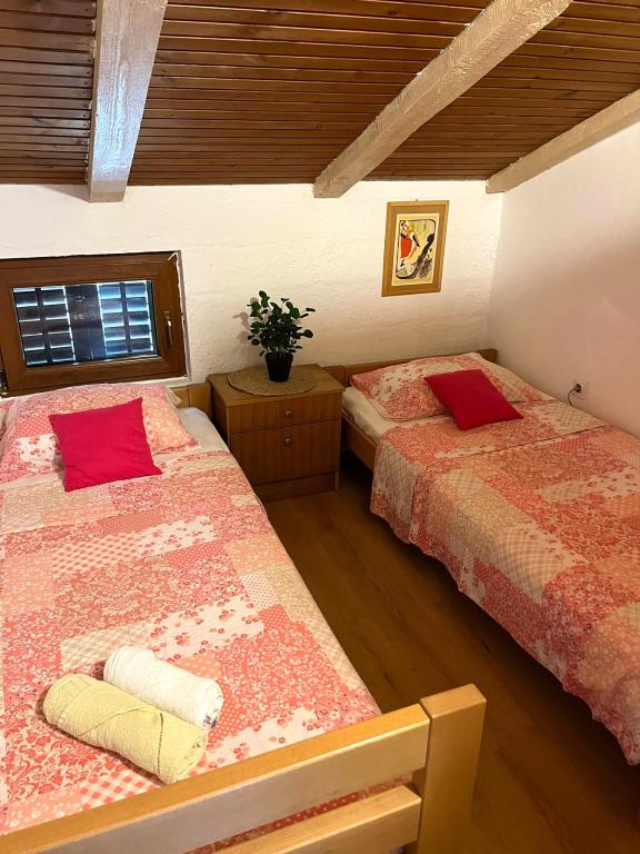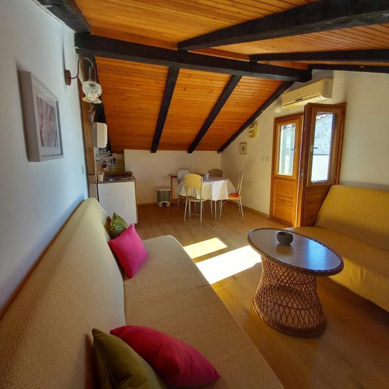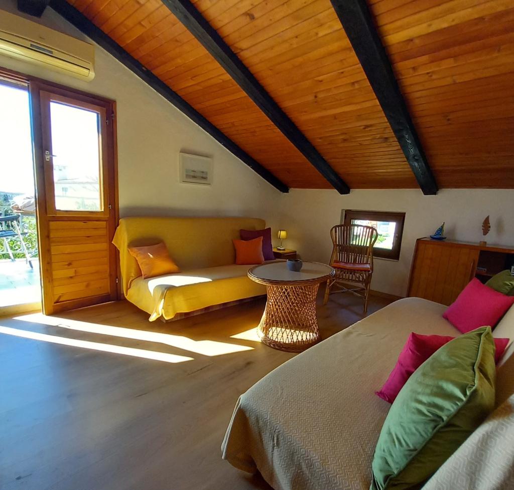 The house with two apartments and a parking space is located in a small, quiet village of Mušoga-Banjole and is only 300 m from the beach. It is suitable for accommodating 2 families. Apartment Oleander 2+2, on the 1st floor (low attic) is ideal for 2 adults or 2 adults and 1-2 small children. The apartment is air-conditioned and consists of 1 double bedroom, bathroom, separate room with two sofas/beds and a mini kitchen block and a terrace. Apartment Glicinija for 4 people, on the ground floor, consists of 2 bedrooms, a dining room, a kitchen, a bathroom and a courtyard with all-day natural shade. There are numerous seaside promenades and cycling paths in the vicinity of the apartment. A ten-minute walk will take you to a supermarket, bakery, fish market, pharmacy, bicycle rental agency and several restaurants. Only 6 km from the apartment is the Kamenjak peninsula with beautiful beaches, clear sea and a unique Safari bar. Come and enjoy the sea, sun, Mediterranean scents and digital detox :).