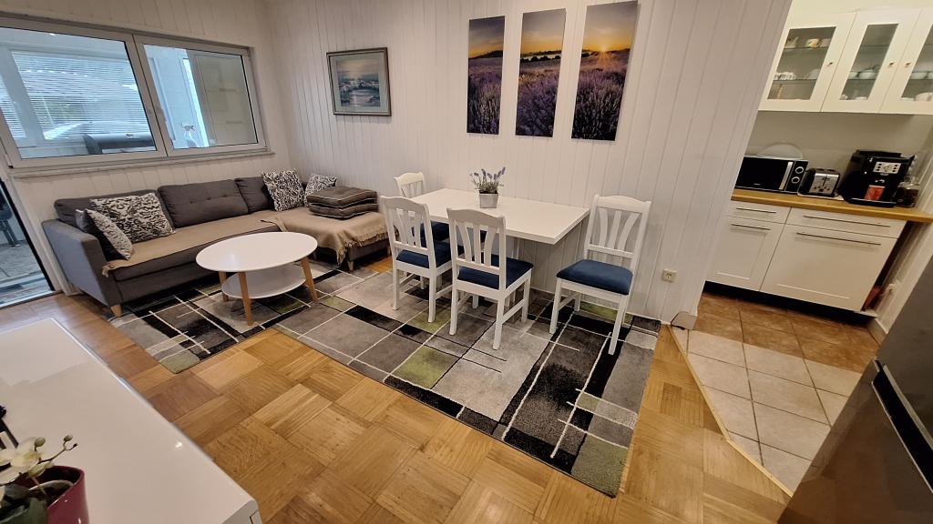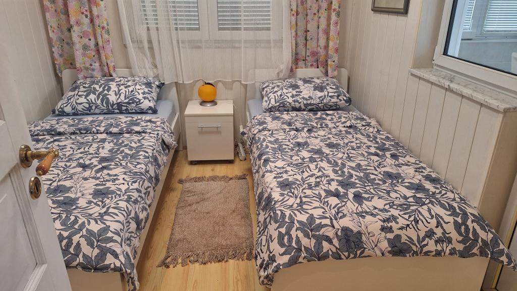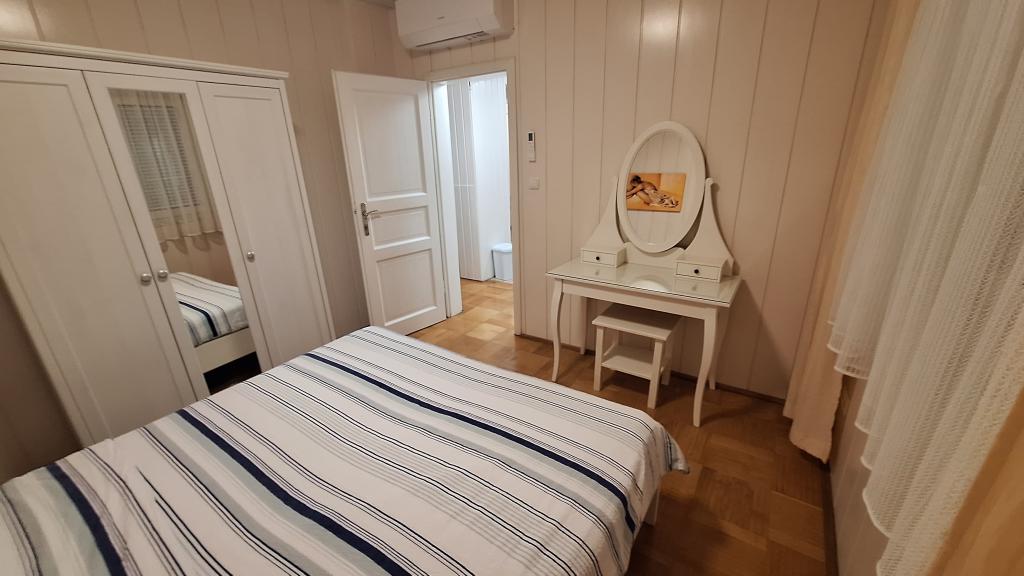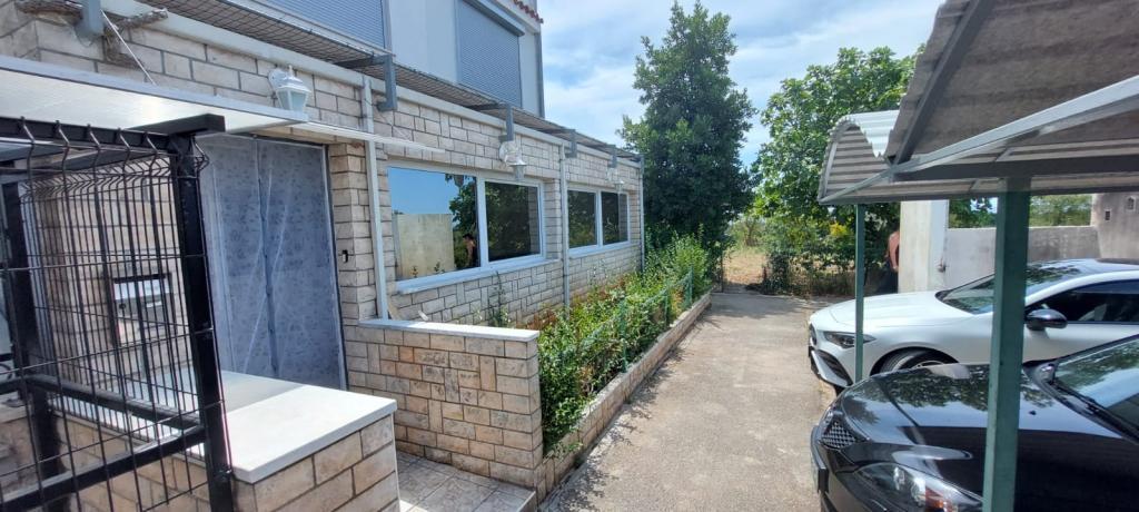 Apartment MARIJA is a large apartment with 3 bedrooms and a living room. In front there is a covered and glazed terrace. Next to the entrance there is a small free space where you can sit and possibly set up a grill which is available in the apartment. Directly in front of the entrance there are 2 covered parking spaces for 2 cars.