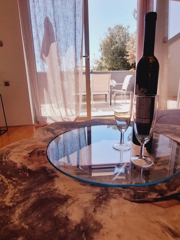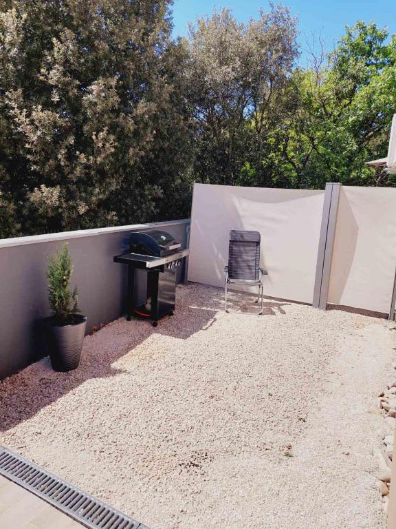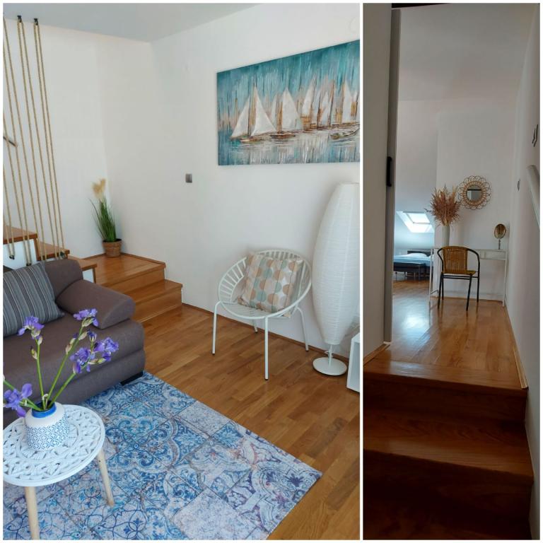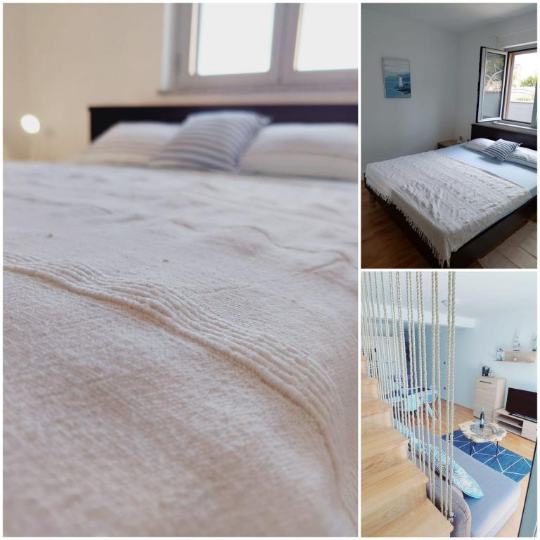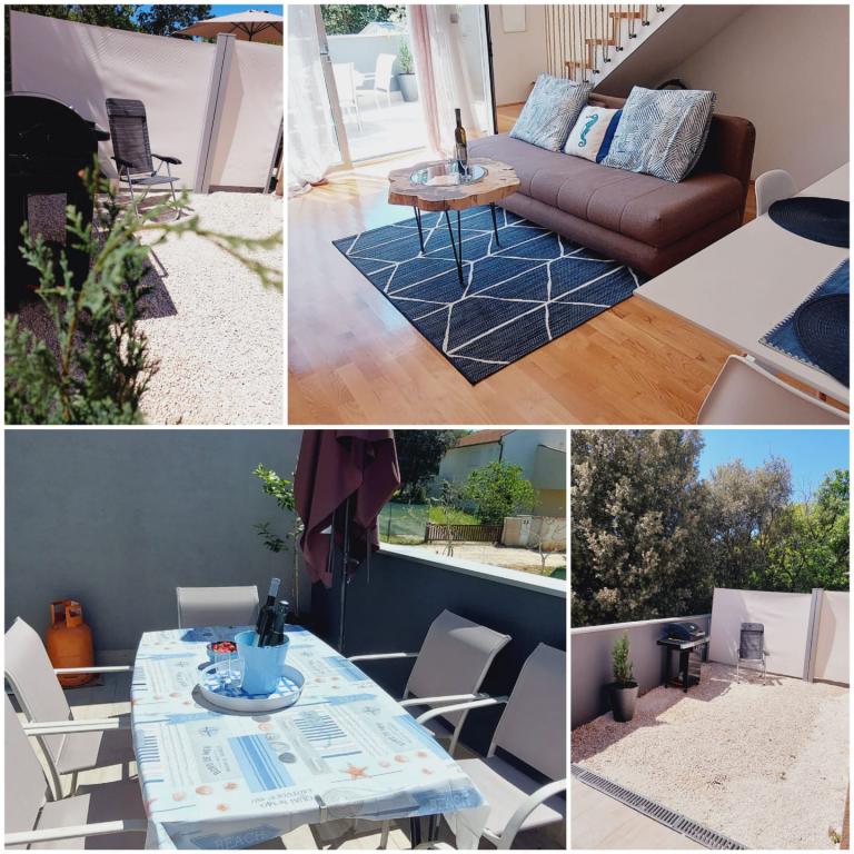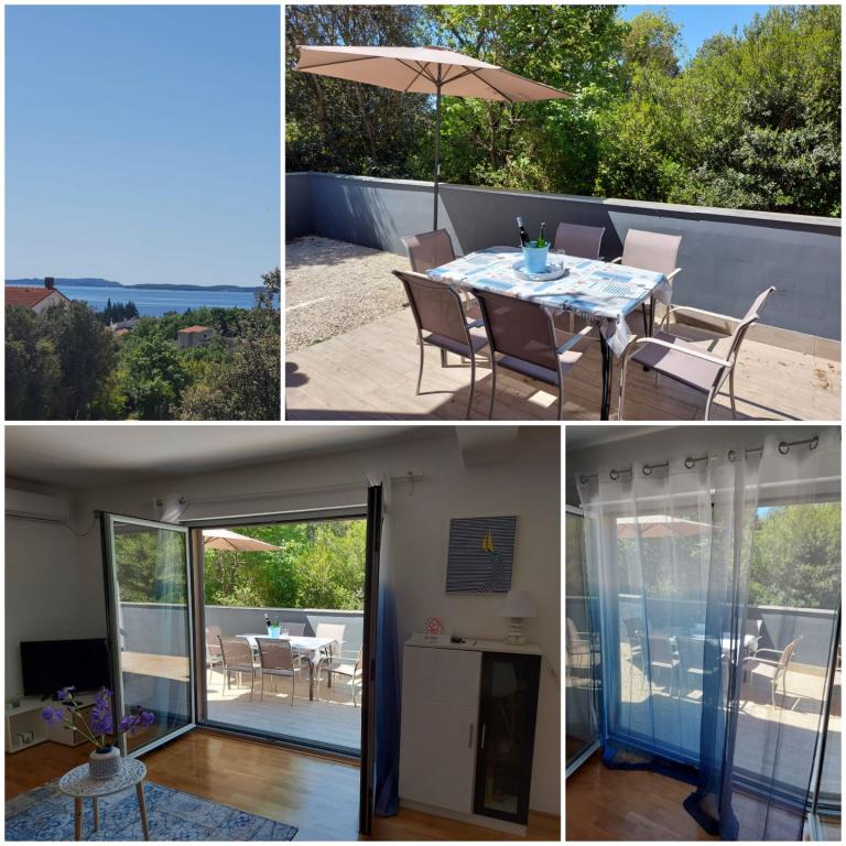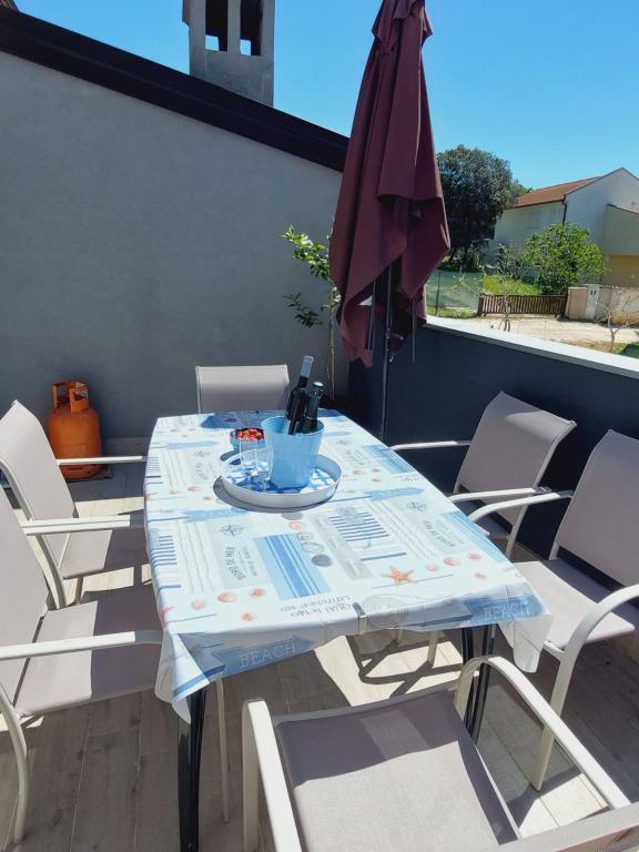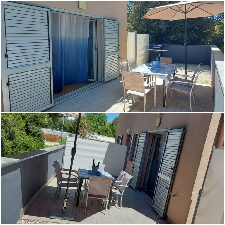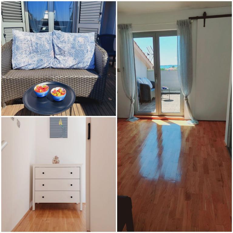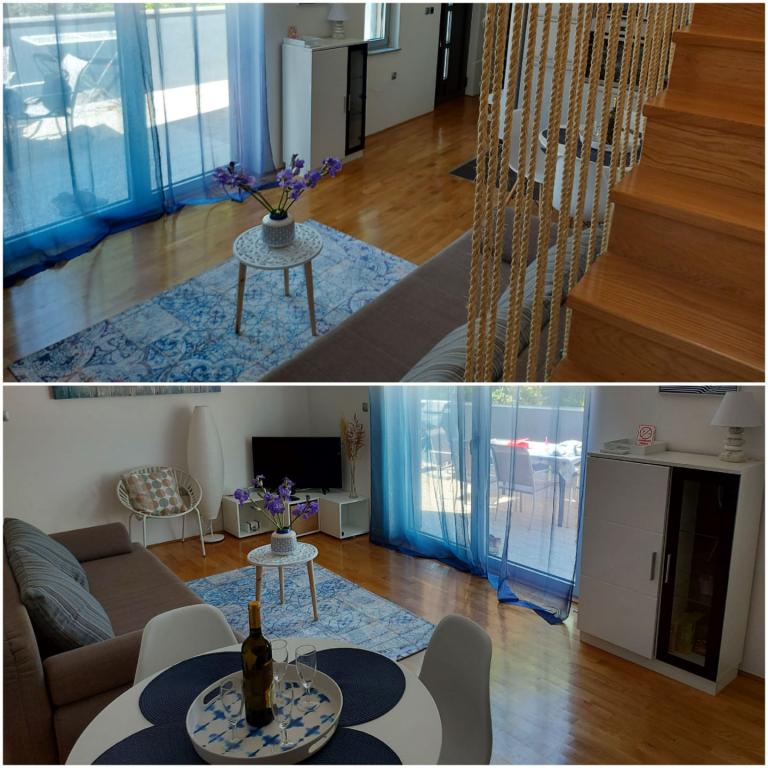 The holiday house consists of 2 duplex apartments with sea views. Each apartment on the ground floor has a bedroom, bathroom, kitchen connected to the living room and a spacious terrace. On the second floor there is a bedroom with a bathroom and a large terrace overlooking the sea. The beach is approx. 15 min walk or 3 minutes by car. The whole coast is surrounded by pine forests and is full of natural shade. A few minutes walk from the house there are several taverns that offer local food and Istrian specialties. It is possible to rent the whole house or each apartment individually. Betiga is a small and quiet place located between Pula and Rovinj (20-25 minutes by car). Nearby is the beautiful town of Fazana (15 min by car) from which it is possible to go on a boat trip and visit the Brijuni National Park.