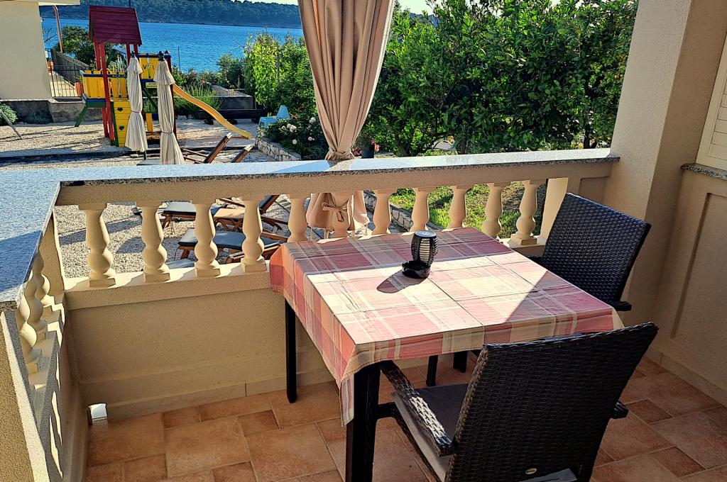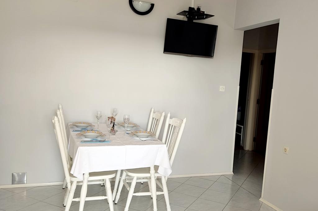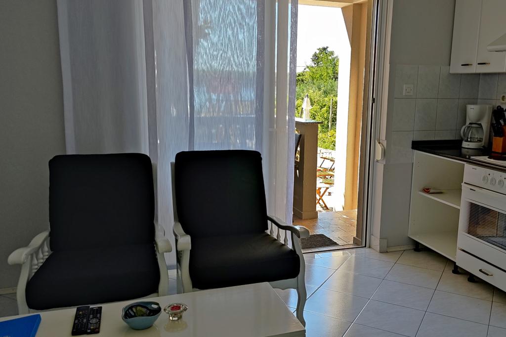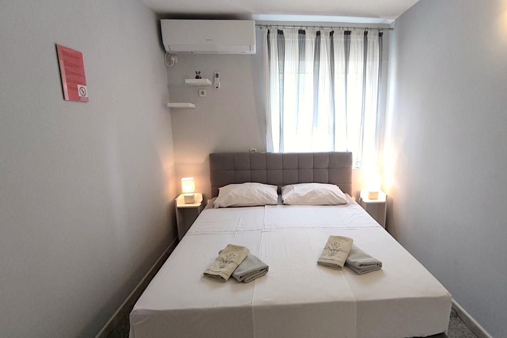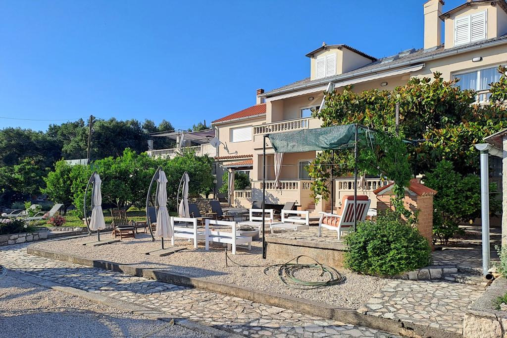 Apartments 30 m from the sea, free mooring for the vessel. The house owned by the family Snježana and Slobodan (Bobo) Frankić is located in Barbat on the island of Rab, 4 km from the town of Rab and 6 km from the ferry. It was built as a one-story building with five apartments for rent, a common room for entertainment and one apartment where the hosts live. The house is located in a quiet area, in a beautiful residential area, it is only 30 meters from the sea and is surrounded by a parking lot, a flower garden, an orchard, a sunny terrace with deckchairs, a playground for children and adults, and a common terrace. There are five apartments for 4 people: Apartment 1, Apartment 3, Apartment 4, Apartment 5 and one apartment for 2 people: Apartment 2. Two apartments for 4 people: Apartment 1, Apartment 3 and one apartment for 2 people: Apartment 2 are located on the ground floor, and two apartments for four people: Apartment 4, Apartment 5 on the first floor (hosts and rented Apartment 5 share a terrace). All apartments have air conditioning. Free WiFi