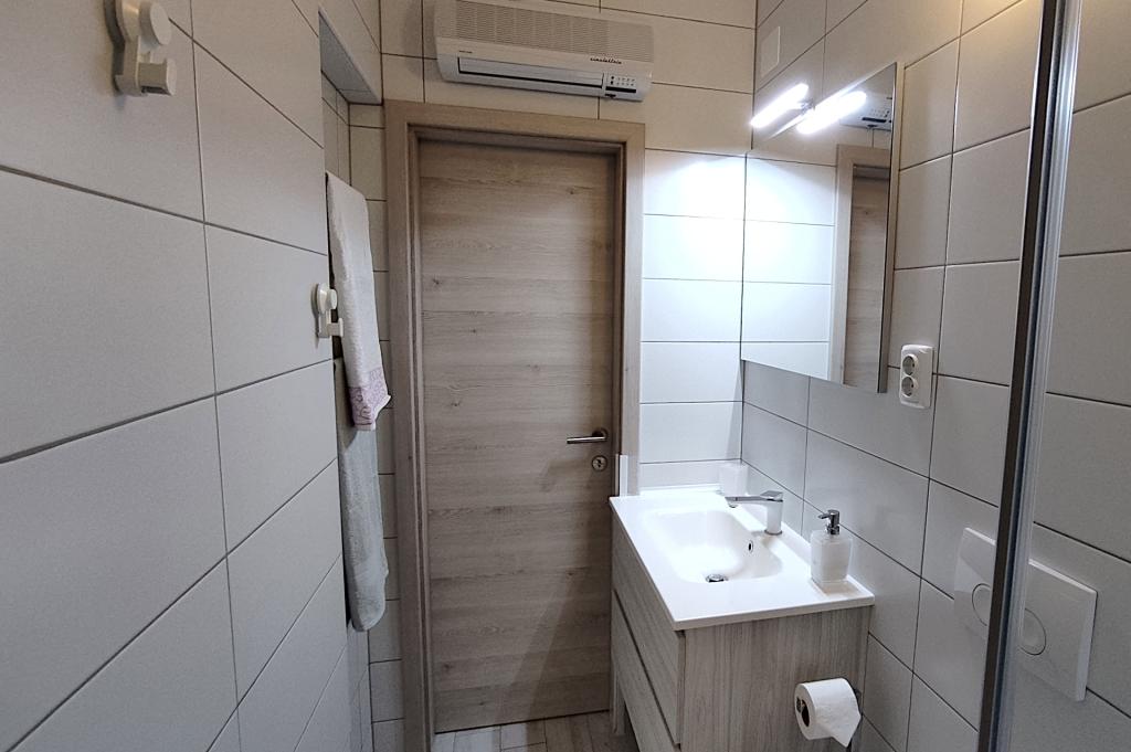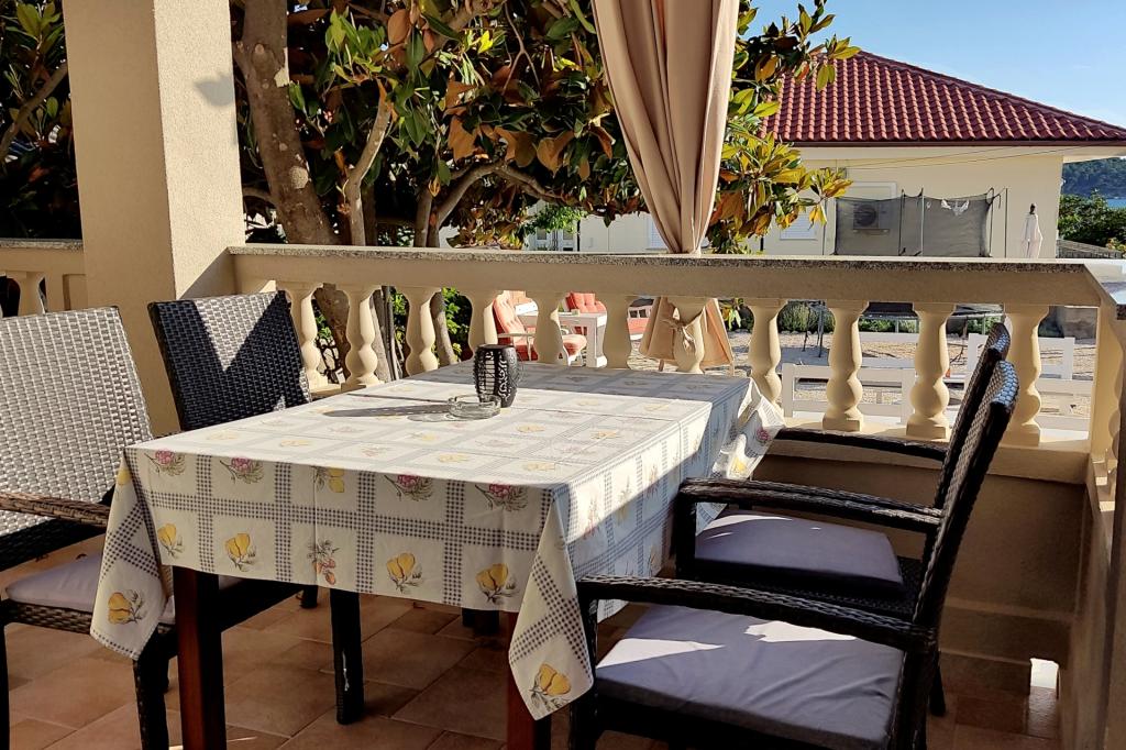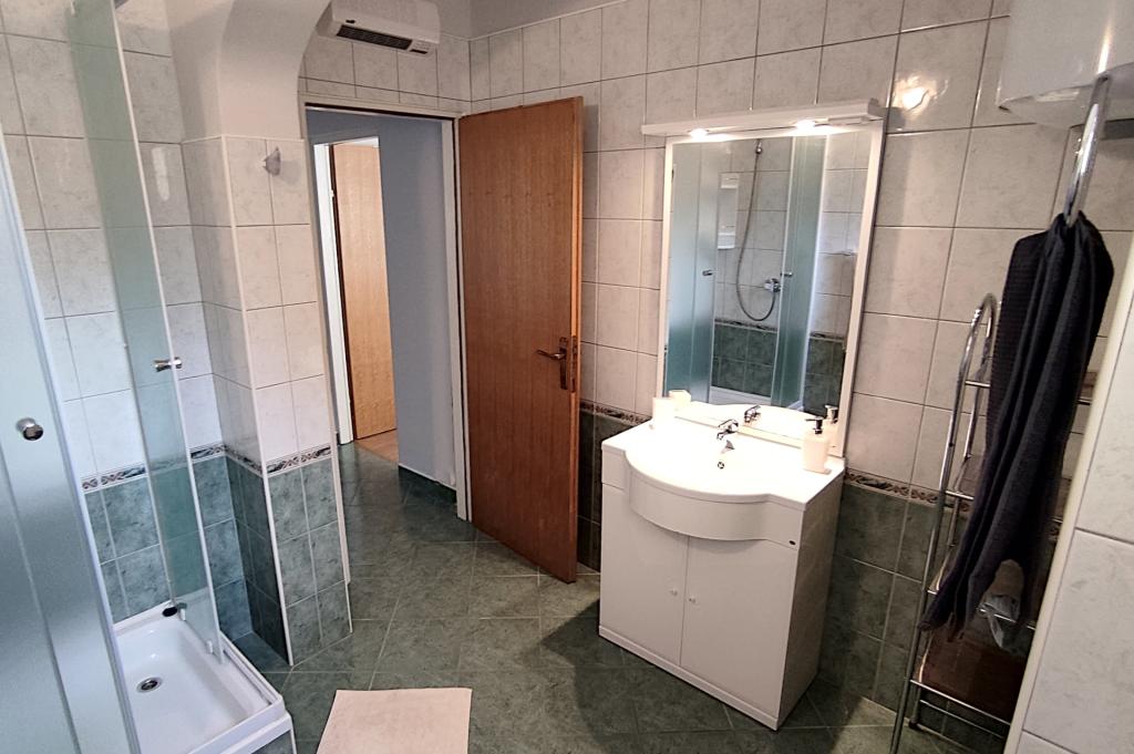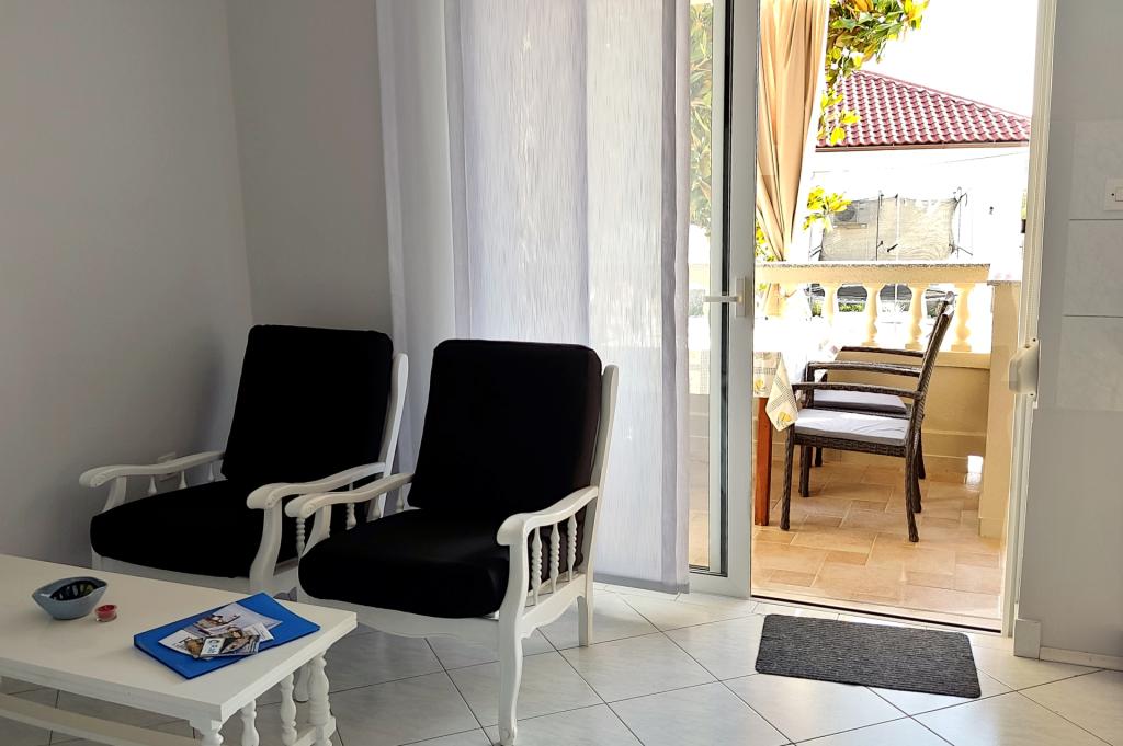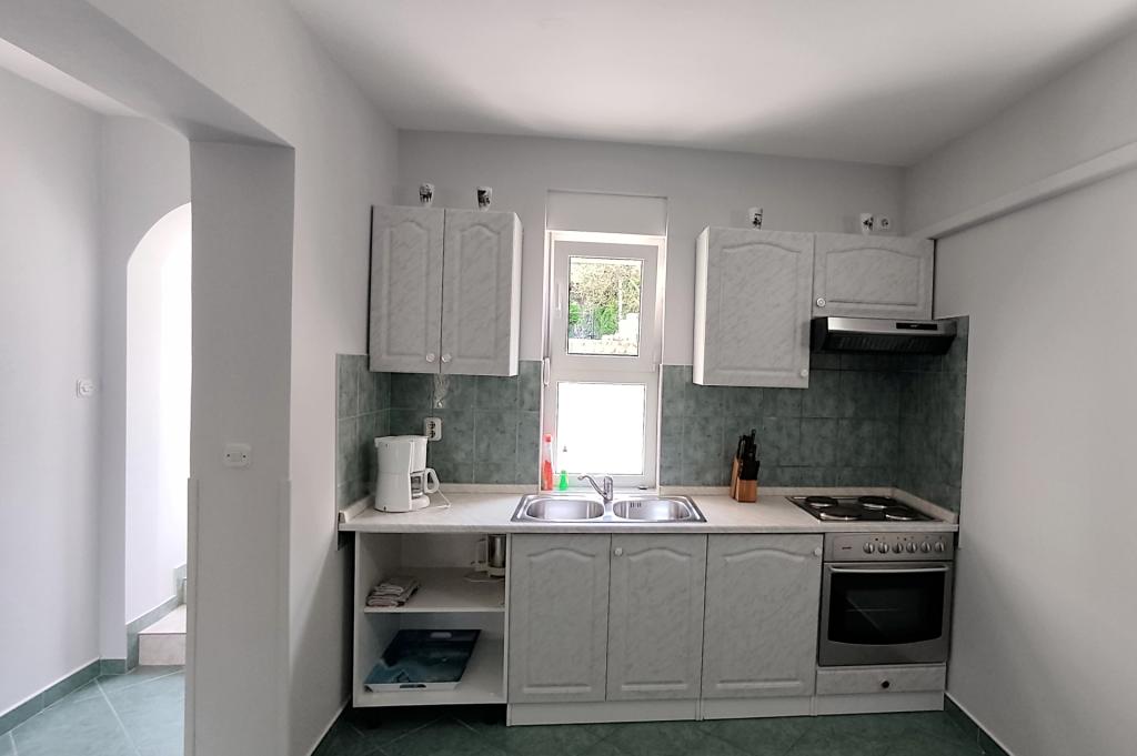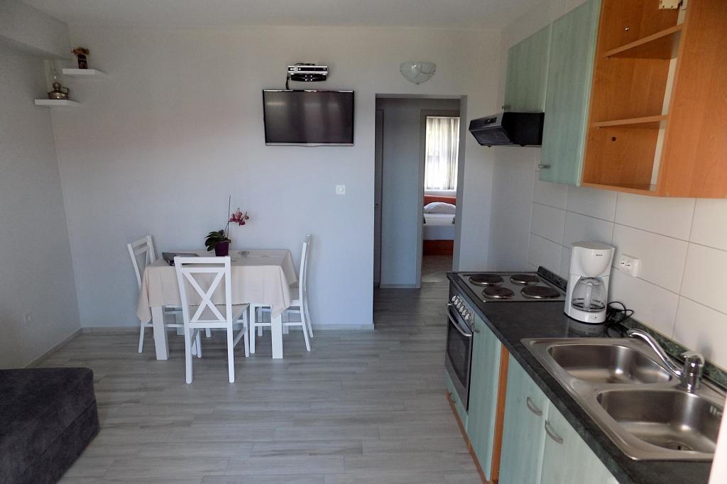 Apartments 30 m from the sea, free mooring for the vessel. The house owned by the family Snježana and Slobodan (Bobo) Frankić is located in Barbat on the island of Rab, 4 km from the town of Rab and 6 km from the ferry. It was built as a one-story building with five apartments for rent, a common room for entertainment and one apartment where the hosts live. The house is located in a quiet area, in a beautiful residential area, it is only 30 meters from the sea and is surrounded by a parking lot, a flower garden, an orchard, a sunny terrace with deckchairs, a playground for children and adults, and a common terrace. There are five apartments for 4 people: Apartment 1, Apartment 3, Apartment 4, Apartment 5 and one apartment for 2 people: Apartment 2. Two apartments for 4 people: Apartment 1, Apartment 3 and one apartment for 2 people: Apartment 2 are located on the ground floor, and two apartments for four people: Apartment 4, Apartment 5 on the first floor (hosts and rented Apartment 5 share a terrace). All apartments have air conditioning. Free WiFi