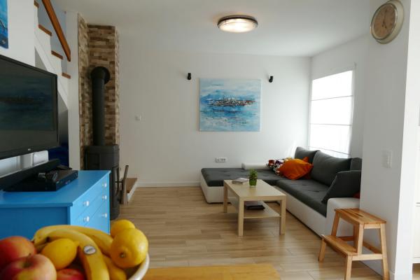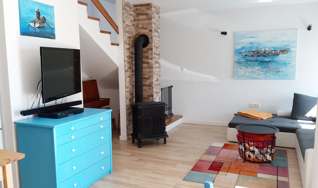 This is a newly renovated 200 year old house. It is suitable for families with children. The space is about 80 m2 on two floors. On the ground floor there is a kitchen, dining room, living room, bathroom with shower and pantry. Two bedrooms and another bathroom with bathtub are upstairs. One bedroom has a double bed 160x200 cm. The second bedroom (children's bedroom) has an elevated bed measuring 140x200 cm (IKEA Stora bed), and under the bed is a sofa that is the same size when pulled out. The children's bedroom is equipped with toys, coloring books, crayons. The nearest store is about 1 km away, and it is best to go shopping by car. The nearest beach is about 500 m away.