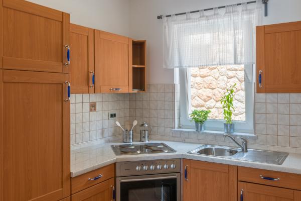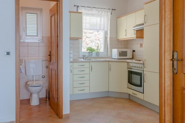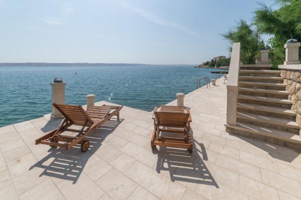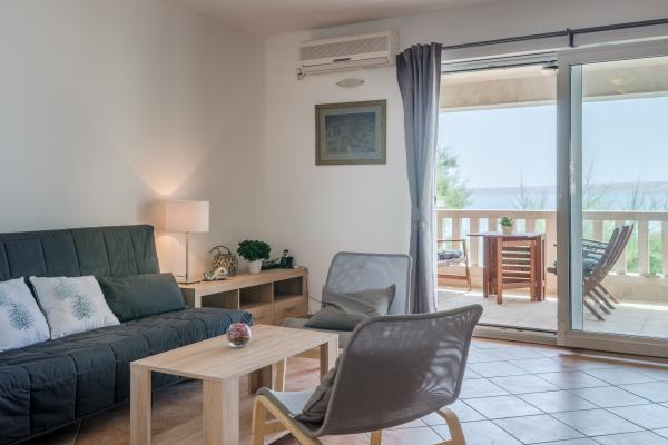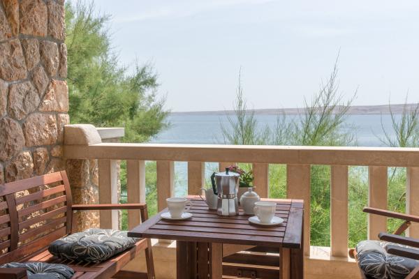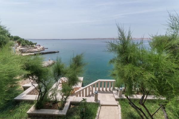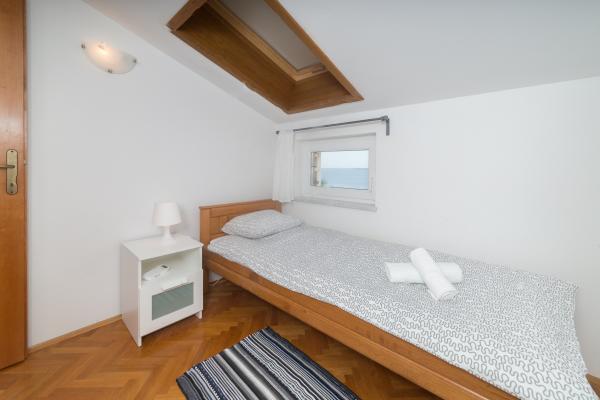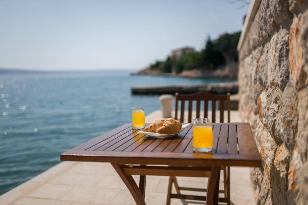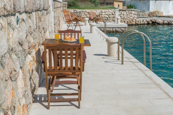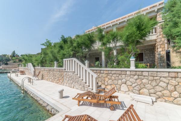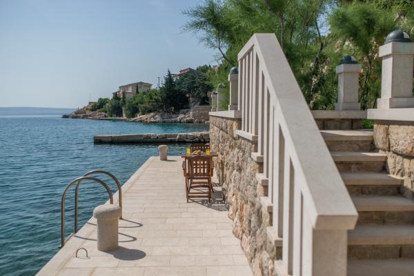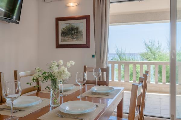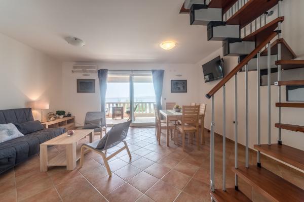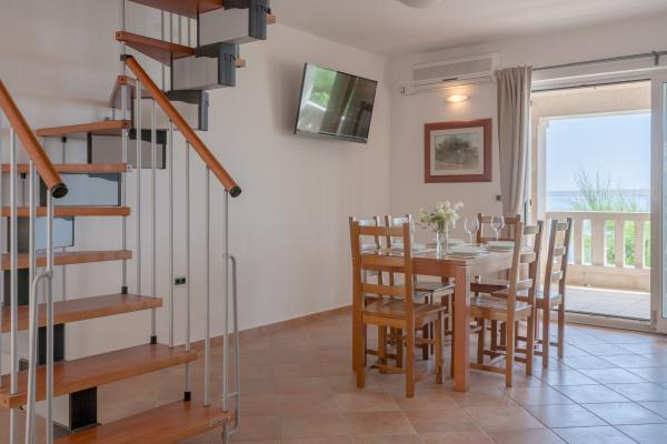 Completely and modernly equipped apartments in the house on the sea. Each of the two apartments is 90 m2. The apartment has two floors and on the first floor there is a living room, a kitchen, a toilet and a spacious terrace, while on the second floor there are three bedrooms and a bathroom. All rooms are air-conditioned. The terrace offers views of the garden and the sea.