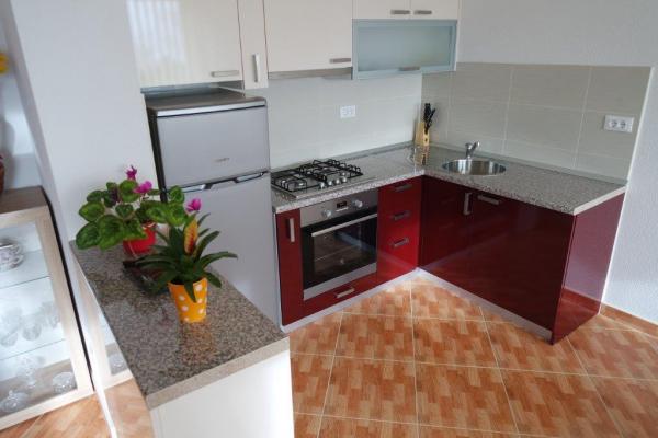 Apartment Ana is part of a house located in the small hamlet Bast located at the foot of the southern slopes of the nature park mountain, surrounded by natural beauty, panoramic views of the sea and islands of Brac and Hvar, 10 km west of the town, 2, 5 km east of Baska Voda. The apartment is brand new, fully equipped and modern, 60m2, consisting of a bedroom with a double bed and a sofa bed, a living room with sofa bed, kitchen, dining room and bathrooms. The apartment is air conditioned, has a separate entrance, parking, satellite TV, internet, large terrace with barbecue. Exceptionally hospitality in a quiet and warm environment with beautiful views of the sea and islands will make your holiday in the apartment Ana enjoyable and memorable.
