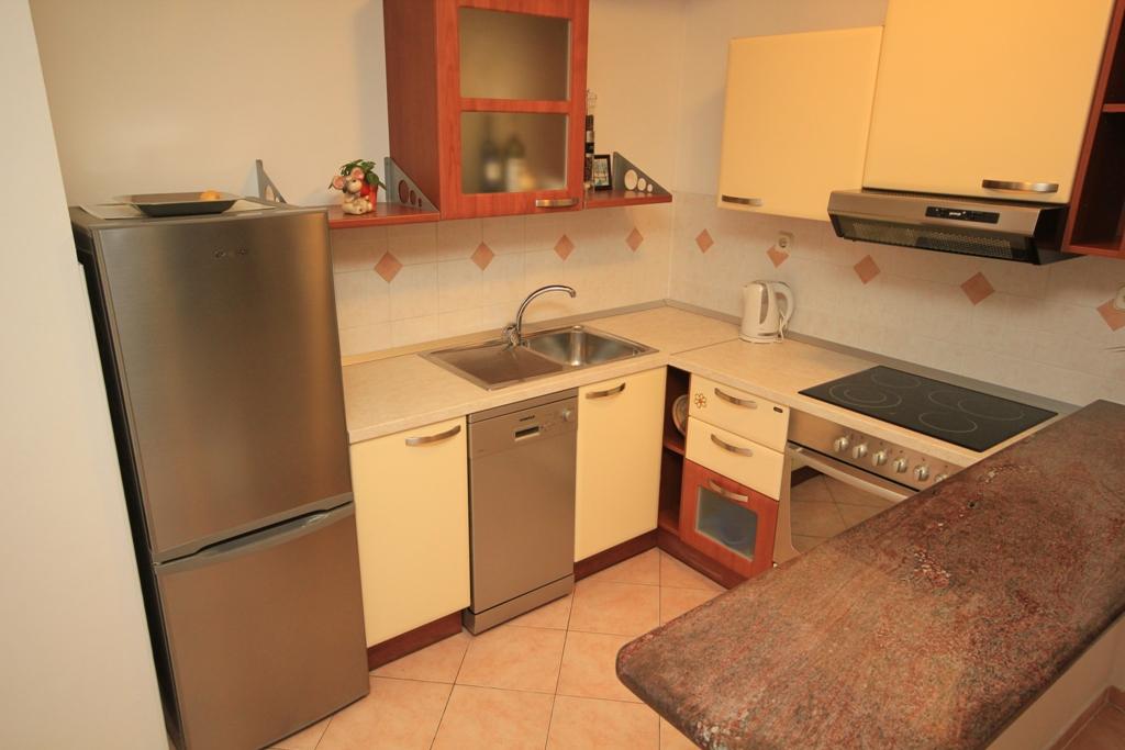 Fully equipped comfortable apartment with two bedrooms, spacious bathroom, bathroom with washer, oven and large fridge and freezer, living room with sat android tv, 2 balconies and parking space. The balcony offers a beautiful view of the sea and islands. The beach is accessible only by private ownership of the apartment owners and guests located in this unit also have the right of passage and use of the access footpath, which takes 5-6 minutes to reach the beautiful sandy beach covered by tall pines. Ideal for families with children.