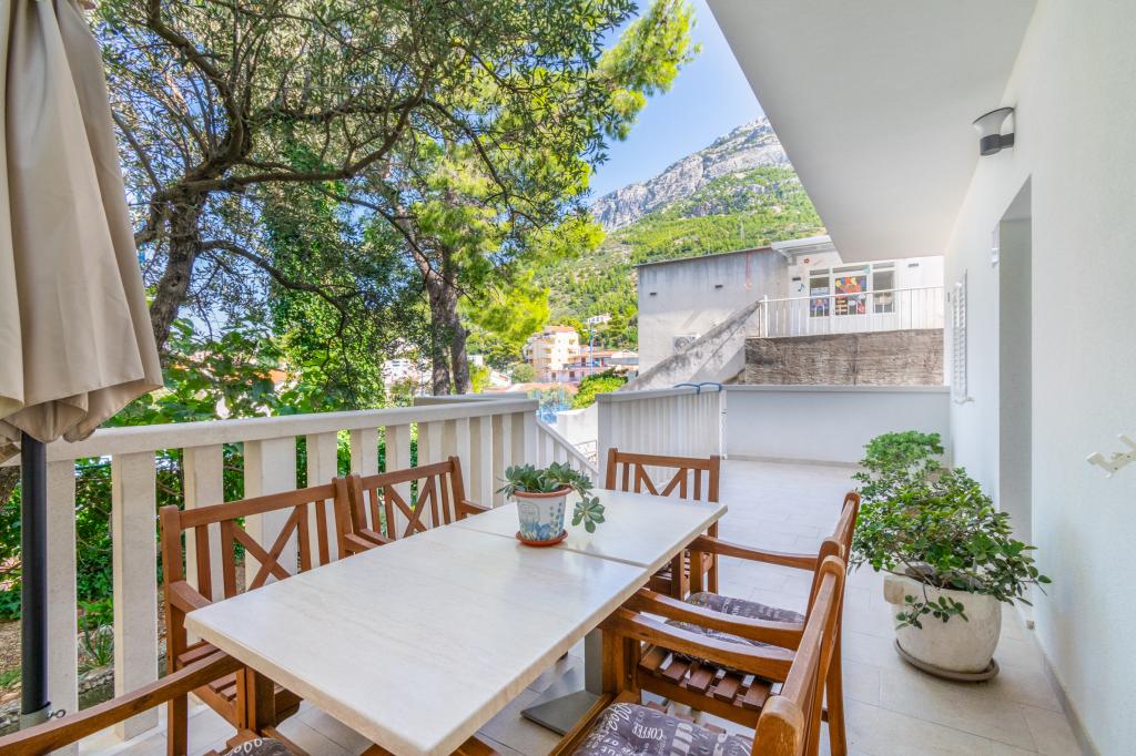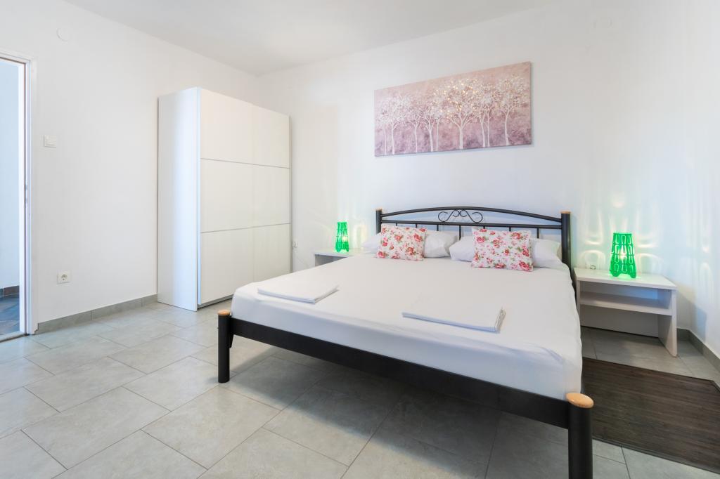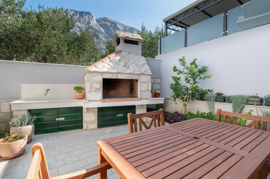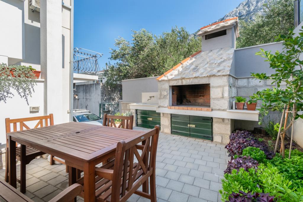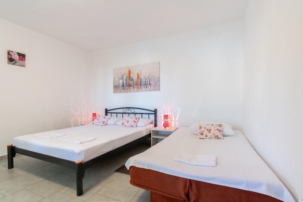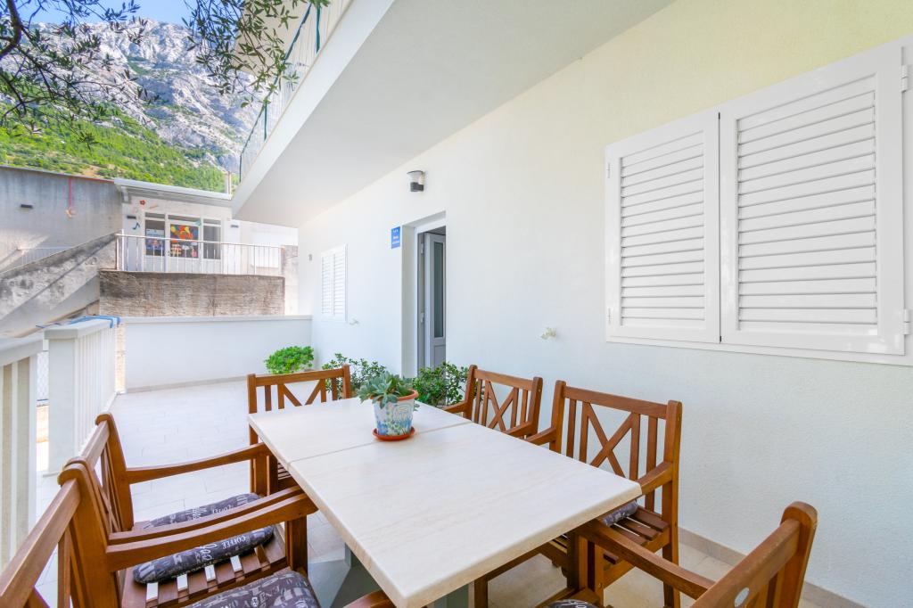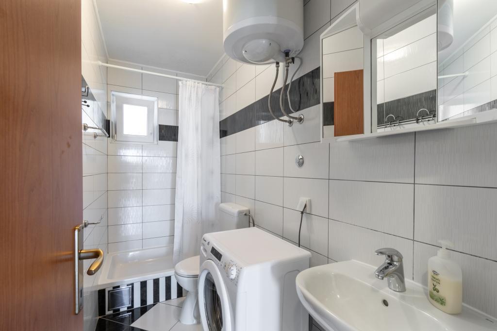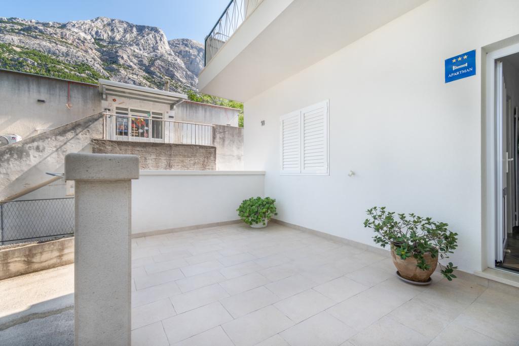 A spacious and newly renovated three-room apartment (6+1) is located in the beautiful town of Baška Voda at the foot of Biokovo. The apartment has 2 spacious rooms with a double bed, and one room with a double bed and an extra bed, 2 bathrooms, a modern and equipped kitchen and a spacious terrace with a view of Biokovo and the sea. The apartment contains everything you need for a carefree, pleasant and peaceful vacation: large terrace, air conditioning, wi-fi, LCD/SMART TV, washing machine, grill, parking space, bed linen, towels. A market, bakery, butcher, post office, pharmacy, cafes and beaches are just a few minutes' walk away. The very center of Baška Voda is only a 5-minute walk from the apartment with a wide range of restaurants, catering facilities and souvenir shops. Also in summer there is a rich offer of adrenaline sports, (jet ski, sup board, parasailing) entertainment for the youngest (new and attractive pedal boats, semi-submarine), deckchairs. Due to the very location of the apartment and its proximity to the center, you don't even need a car during the year.
