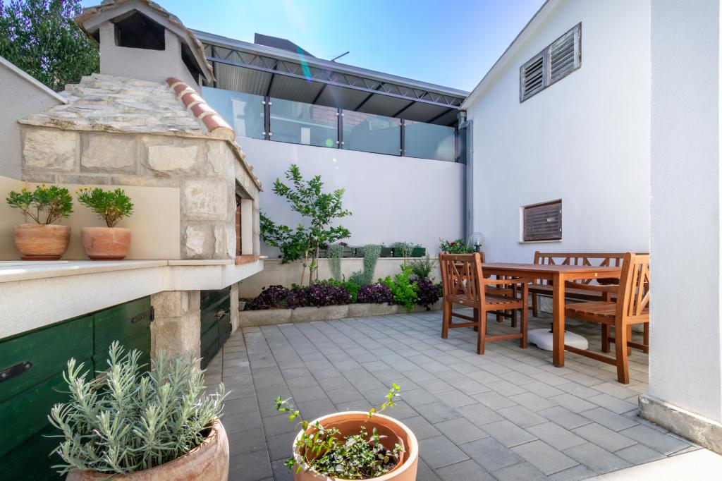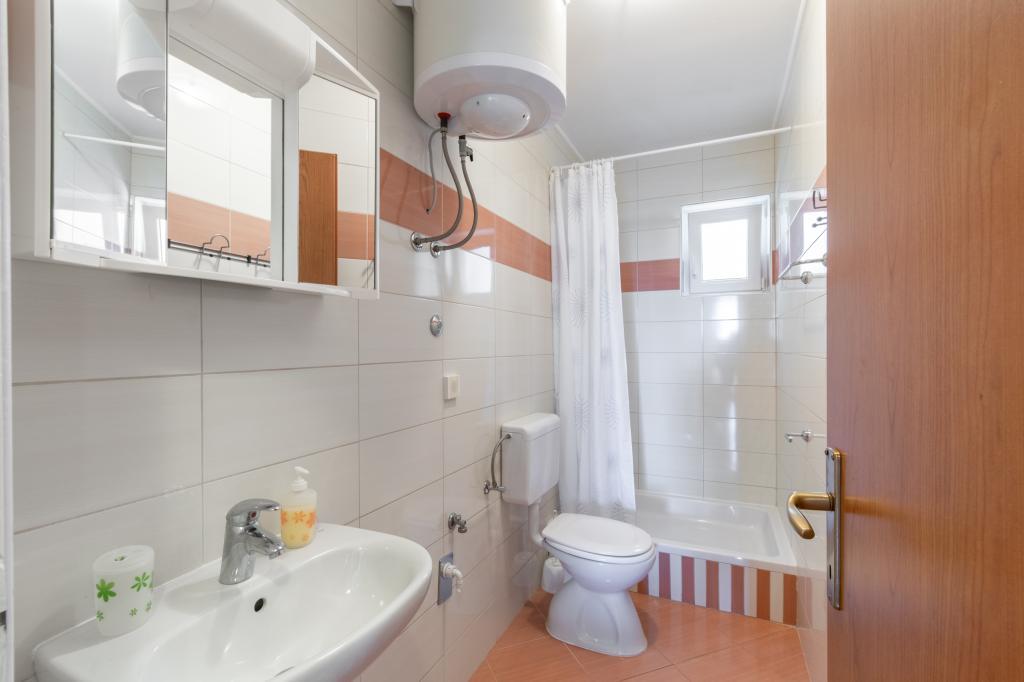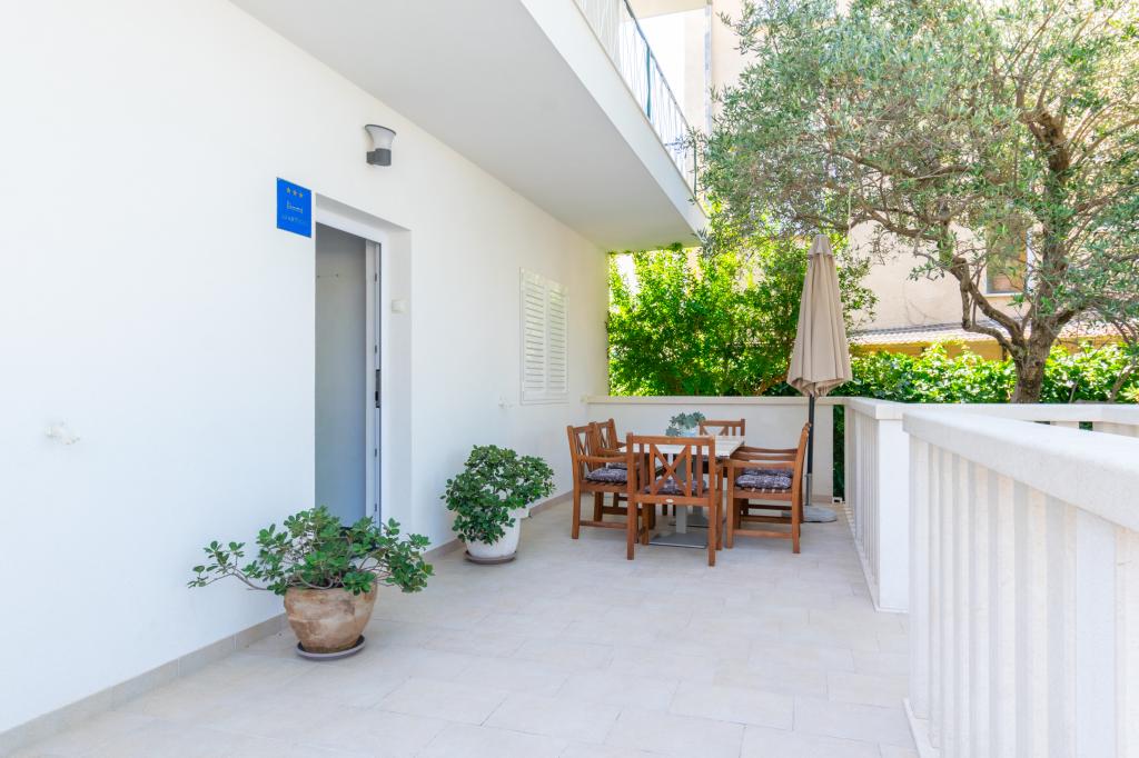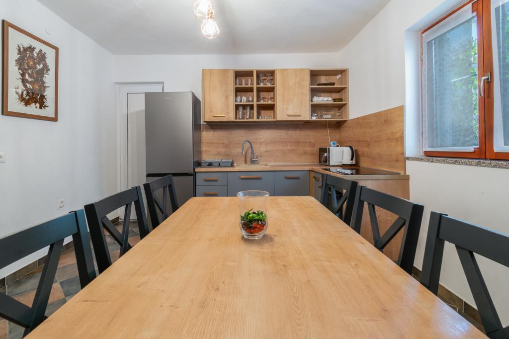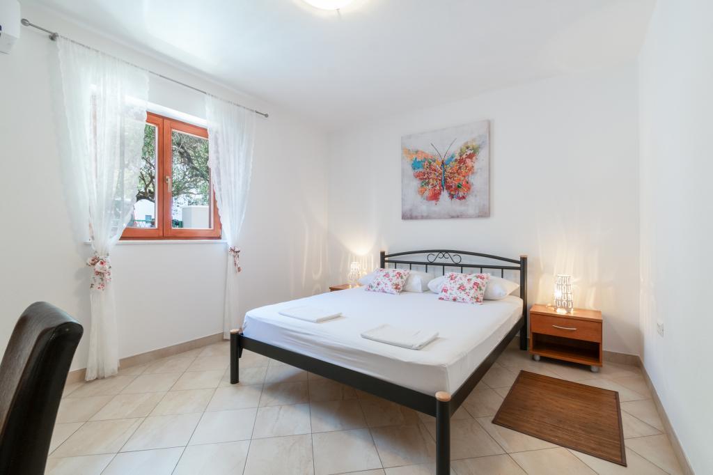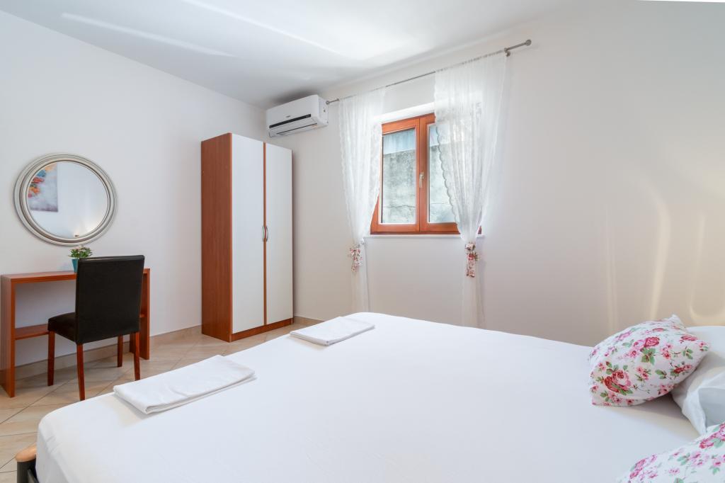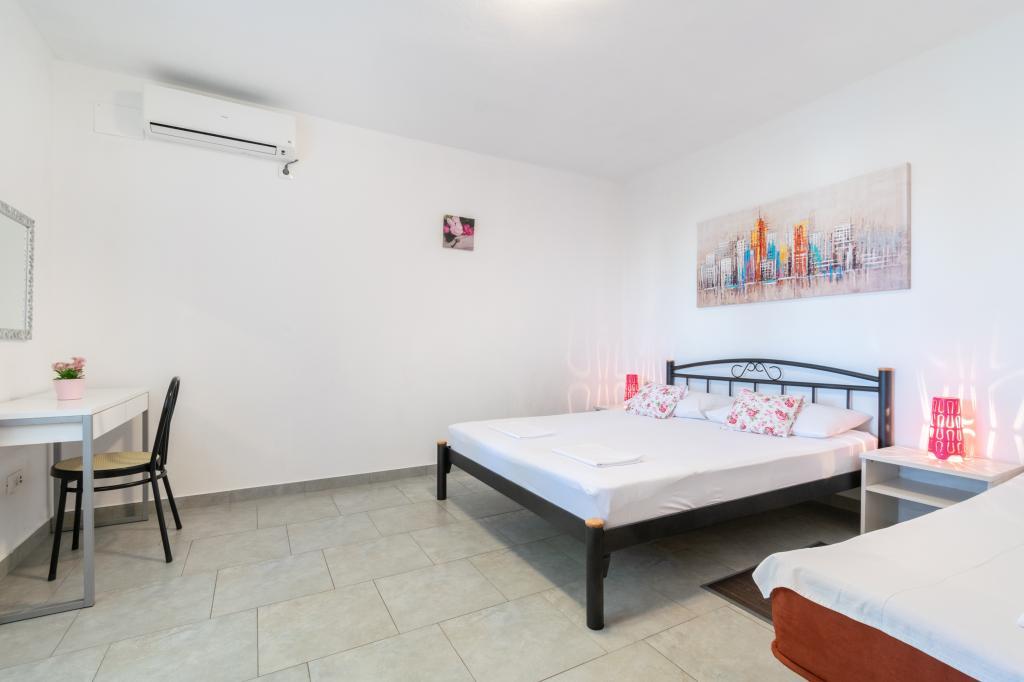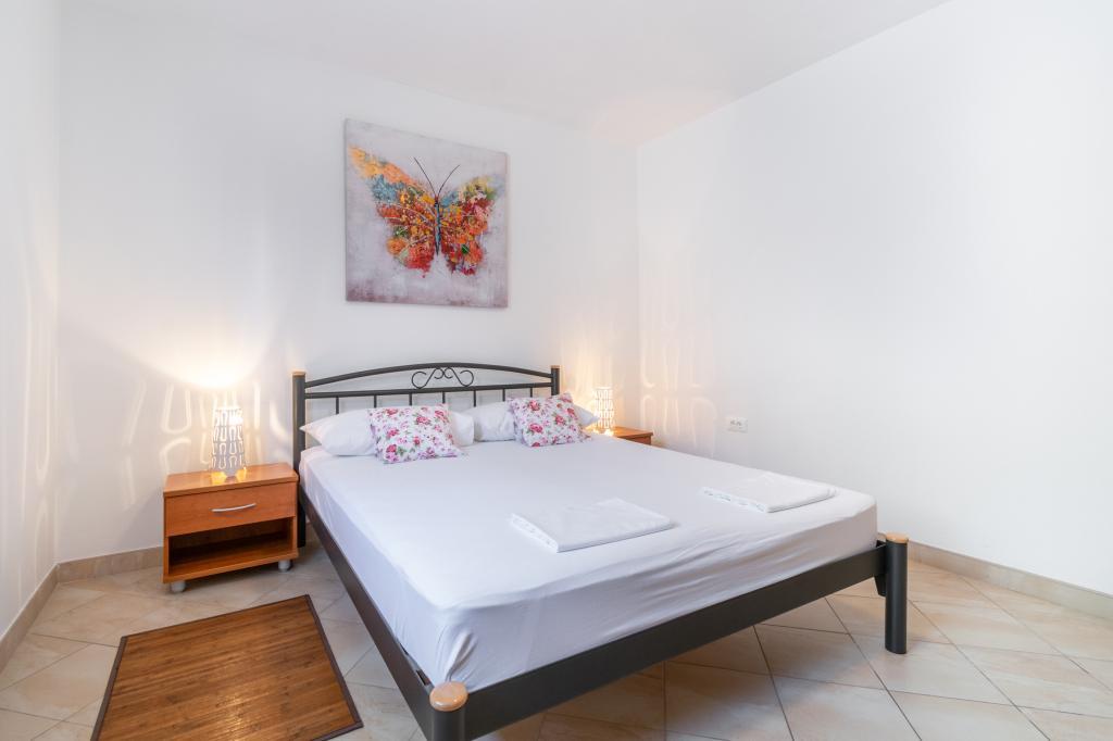 A spacious and newly renovated three-room apartment (6+1) is located in the beautiful town of Baška Voda at the foot of Biokovo. The apartment has 2 spacious rooms with a double bed, and one room with a double bed and an extra bed, 2 bathrooms, a modern and equipped kitchen and a spacious terrace with a view of Biokovo and the sea. The apartment contains everything you need for a carefree, pleasant and peaceful vacation: large terrace, air conditioning, wi-fi, LCD/SMART TV, washing machine, grill, parking space, bed linen, towels. A market, bakery, butcher, post office, pharmacy, cafes and beaches are just a few minutes' walk away. The very center of Baška Voda is only a 5-minute walk from the apartment with a wide range of restaurants, catering facilities and souvenir shops. Also in summer there is a rich offer of adrenaline sports, (jet ski, sup board, parasailing) entertainment for the youngest (new and attractive pedal boats, semi-submarine), deckchairs. Due to the very location of the apartment and its proximity to the center, you don't even need a car during the year.