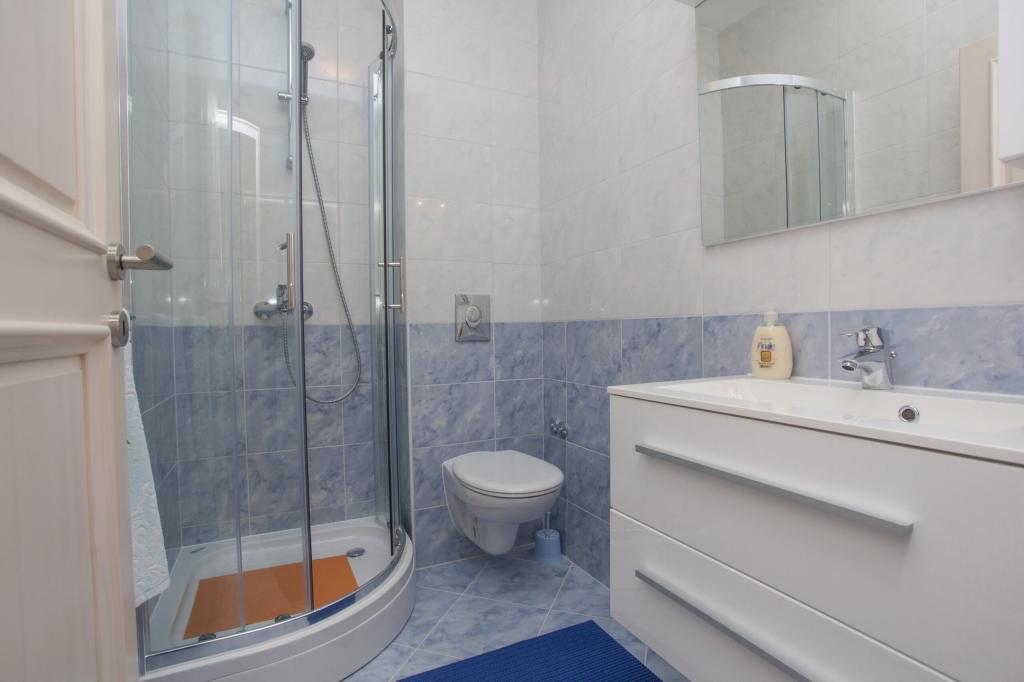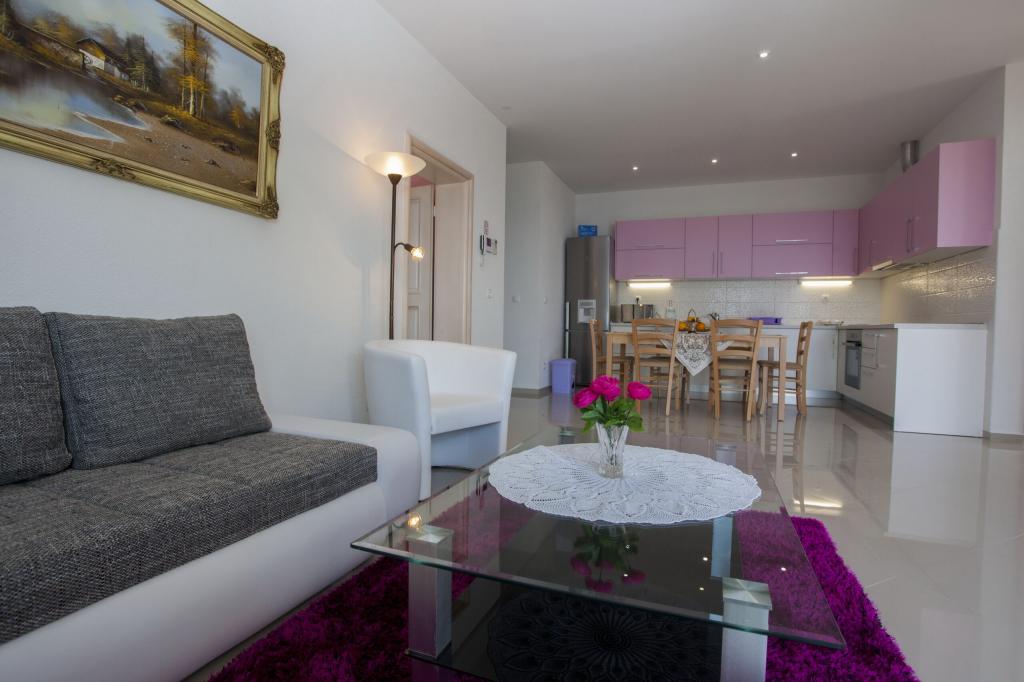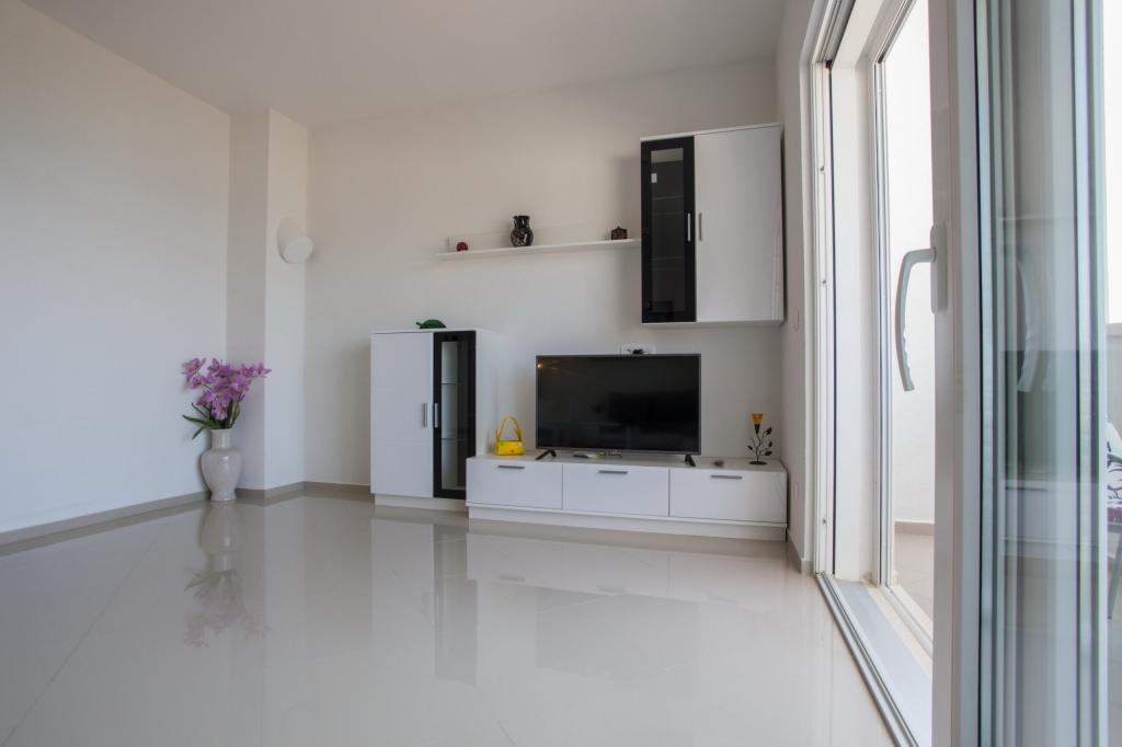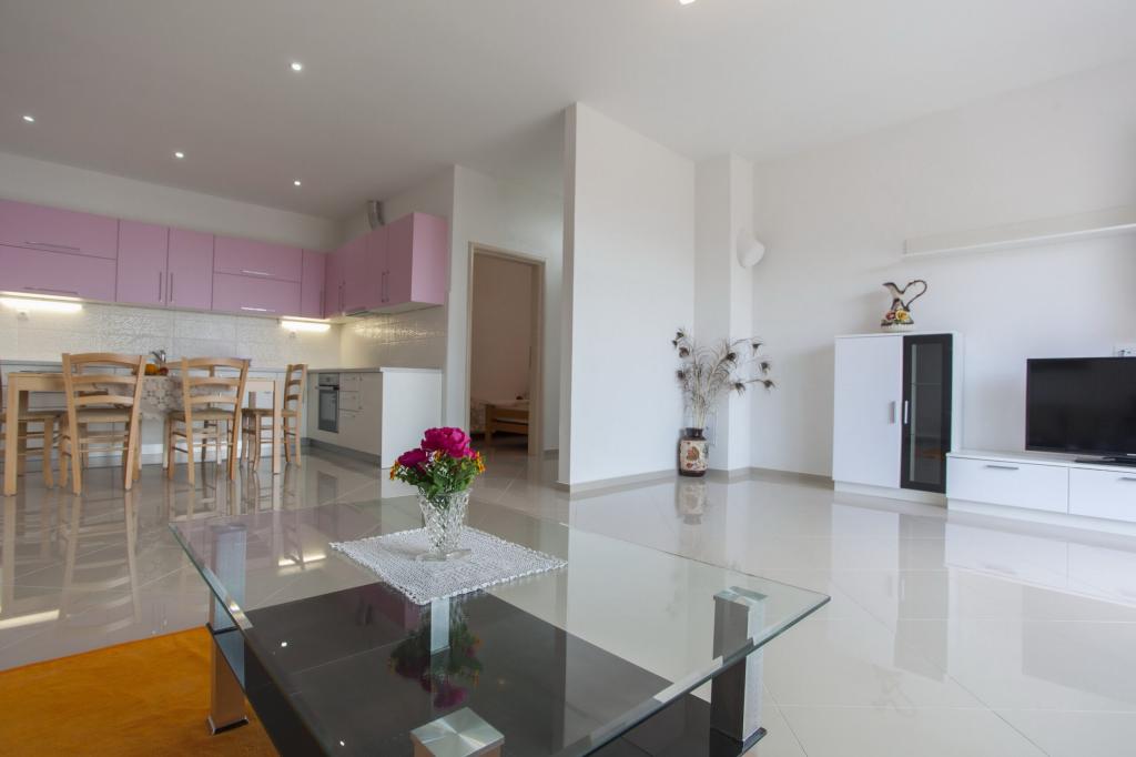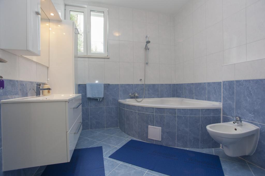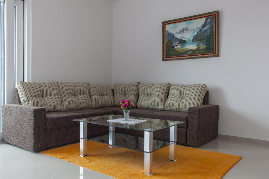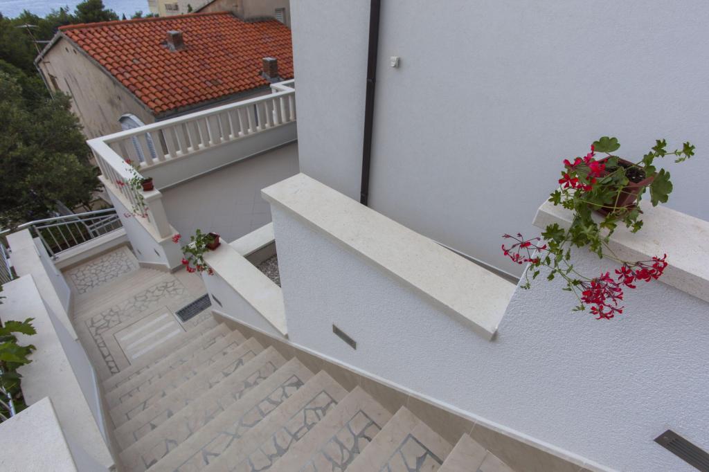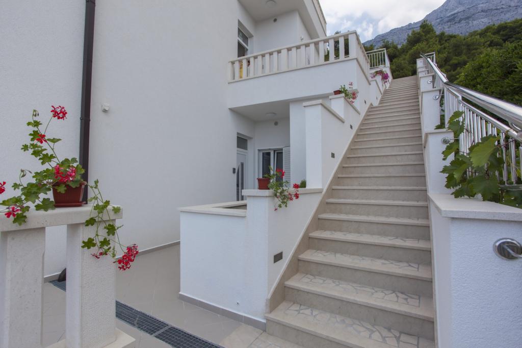 At the foot of the magnificent Biokovo, in Baška Voda, where the Adriatic gently kisses the pearly beaches, there is a newly built three-story house, VILLA ĐURĐICA. The entire floor is for seasonal rent, i.e. an apartment (180m2) with five rooms, a spacious living room, a large kitchen, air conditioning, and balconies with a beautiful view of the sea and the islands of Brač and Hvar.