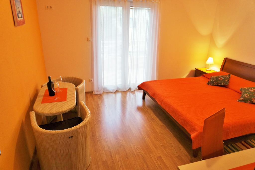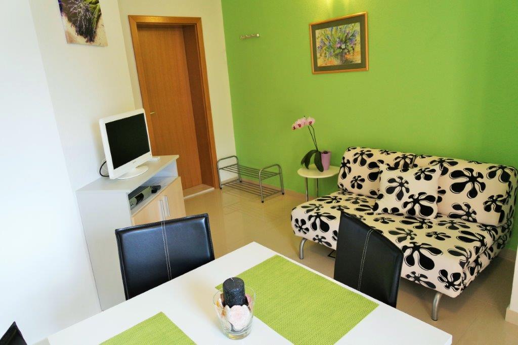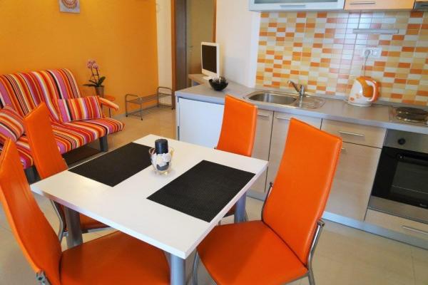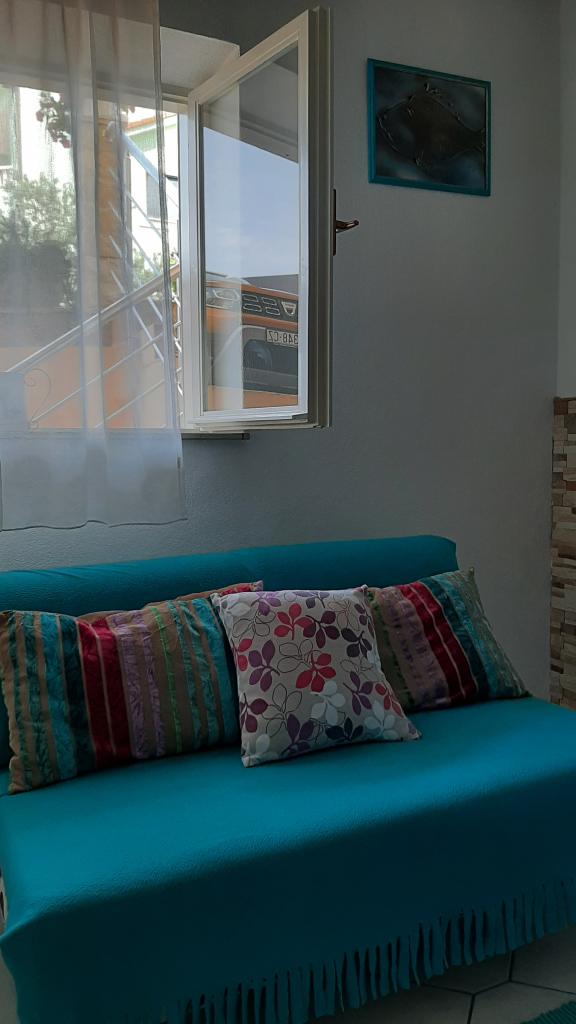 The modernly equipped Harmonia Apartments are the perfect choice for a comfortable family vacation or for couples seeking comfortable accommodation near the beach. About 200m from the beach of Nikola, in an attractive area of Baška Voda and not far from the center with a beautiful side view of the sea and mountain Biokovo. We offer accommodation in green and orange apartments, which are intended for 2 adults with 2 small children and in a turquoise apartment for 2 adults with ev. 1 child. Each apartment is 40m2, has a large bedroom, living area that includes a fully equipped kitchen, table and chairs and a sofa bed, bathroom and terrace. The green and orange apartments are located on the first floor of the family house and have large balconies with side sea views, while the turquoise apartment is located in the basement of the house without sea views, with a large terrace and lounge armchairs. Each apartment is fully equipped, exuding cleanliness and bright colors that will surely make you feel comfortable and have a nice holiday.