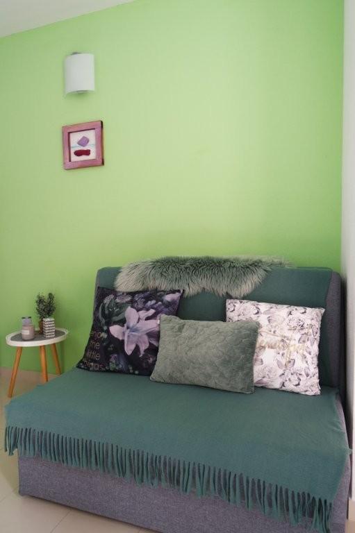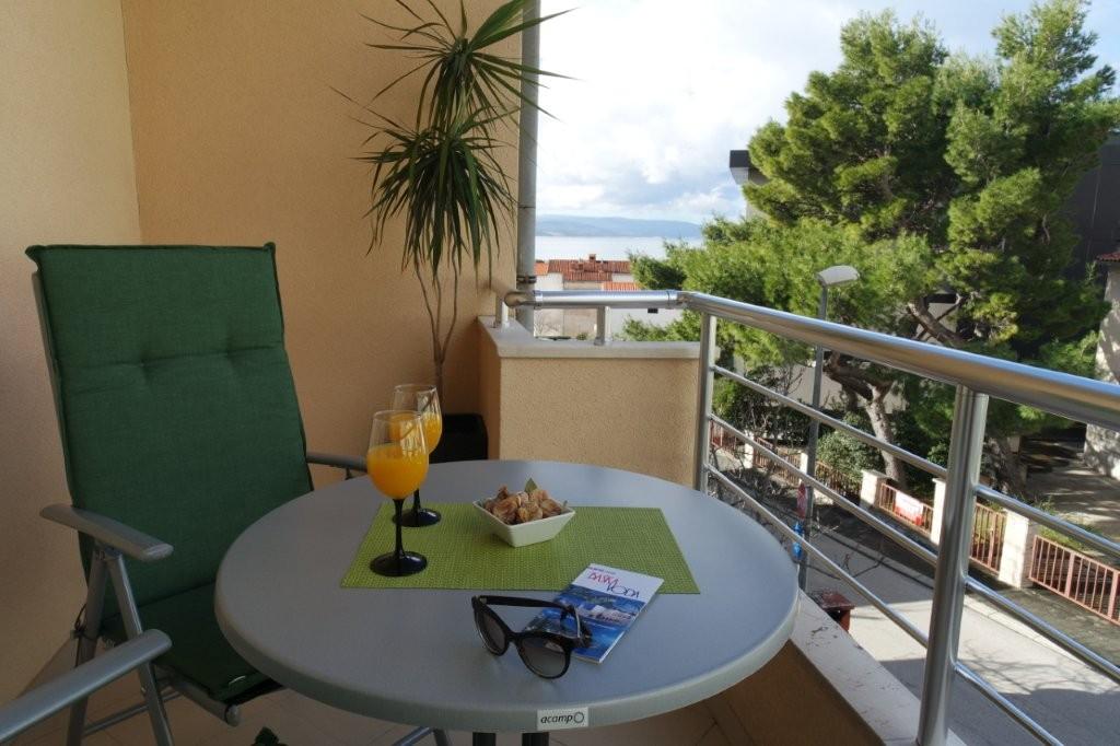 Carefully furnished and modernly equipped, apartments Harmonija are best choice for a peaceful and pleasant family holiday or for couples seeking comfortable accommodation in an excellent location 200m from the beach, in the attractive tourist area of Baška Voda, not far from the centre, with a beautiful side view to the sea and Mount Biokovo. We offer accommodation in three apartments: green, orange, and turquoise, designed for 2 adults with 1 child or 2 small children. Each apartment is approximately 40m2, has a large bedroom, a living area that includes a fully equipped kitchen with a dining table, a sofa bed, a bathroom, and a terrace. The green and orange apartments are located on the first floor of a family house, with balconies with sea view and garden furniture, while the turquoise one is located in the basement flooor of the house without a sea view, with a terrace and lounge chairs.The apartments exude cleanliness, harmony, and cheerful colours for your perfect holiday.