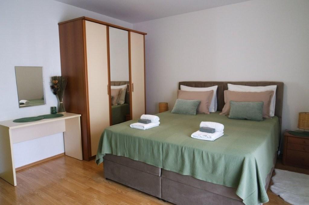 Residential tax is included in price.Parking space directly in front of the house, WiFi, air conditioning, and tourist tax are included in the price of accommodation. There is also an external barbecue for use, a baby travel cot available on request, and a washing machine for use within the house. Towels are changed every 3 days, with intermediate cleaning and bedding change after 7 days for a 14-night stay. Upon request and for an additional fee, we can arrange airport transfers. Nearby the apartment, there is a shop, bakery, and medical centre. Apartments Harmonija have excellent guest experiences and ratings, particularly for location, 200m from the sea, cleanliness, and comfort, making them a perfect choice for family holidays or couples' stays.