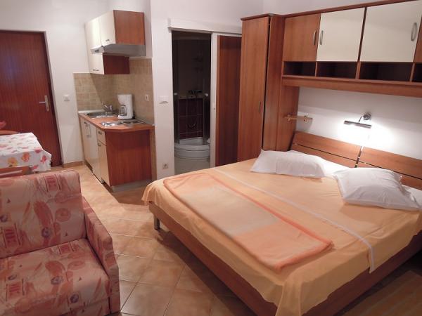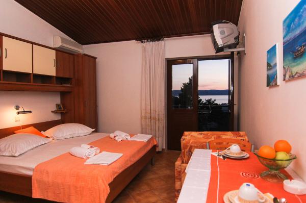 The studio is very neat. The hosts are great, they welcomed us with homemade brandy and fruit that they personally grow. The studio, equipped with everything you need to stay at sea, has a great sea view from the balcony, which we used a lot because we stayed there with an 11-month-old baby. We even got a free crib for our baby. All recommendations.