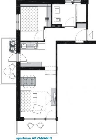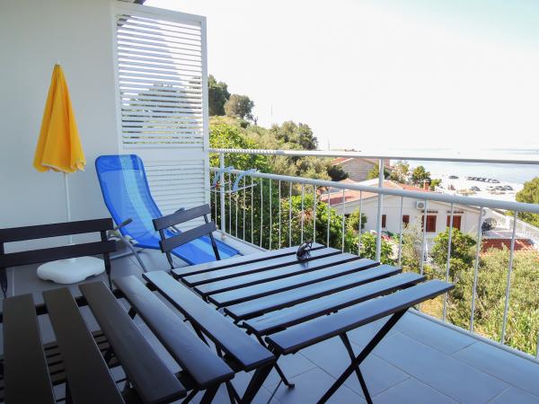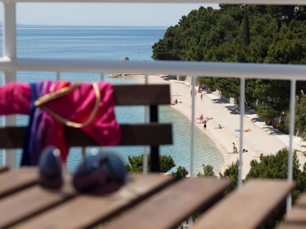Our apartments are located in a family house situated in a quiet area of Baška Voda, only 30m from the beach and 200m from the city centre. The house is in the front row on a rise by the sea, and is approached by flights of stairs. The apartments are located on the first and second floor of the house. They were completely refurbished and equipped during the winter of 2011/12. Each apartment faces south with a balcony offering an enchanting view of the bay and the islands Brač and Hvar. They ideally accommodate two adults with one or two children. There is a modern kitchen at your disposal, while you can relax watching satellite television, or surfing the internet. In case the Adriatic summer turns out too hot for you after all, the apartments are equipped with air conditioning.