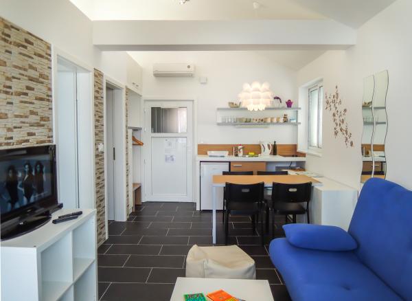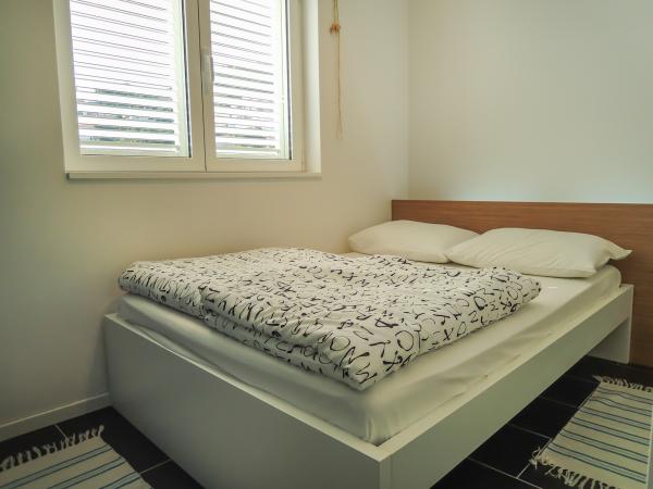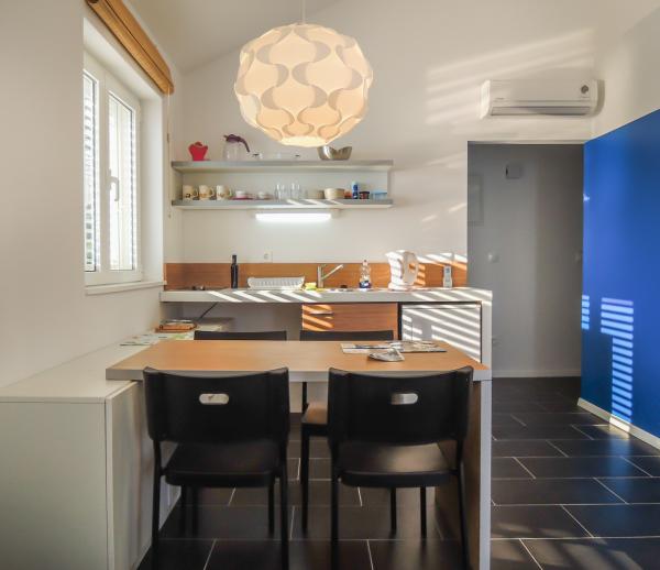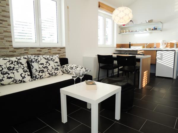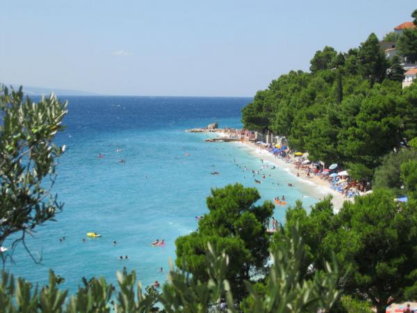 Apartments are tastefully decorated and functional. The owner seems to be a professional interiror designer and/or architect, and apartments really promote her talents. I can't think of a better marketing of her work than those apartments. Everything is brand new and very clean, which is extremely important to me. Although fairly small, apartments offer all you need. Big plus for a big bathroom! The whole house is equipped with air condition but it is cold inside and there's no need for it at all. Owners are great, helpful and polite, yet discreet. Free WiFi is a great plus, especially because it is quite rare in private accommodation in Croatia. In the vicinity of the apartment you can find everything you need on a vacation. If you prefer home cooking, you can find a market with fresh vegetables and fruits, as well as grocery store, fresh fish, and butcher's shop. If you prefer not to cook, you can enjoy specialties of the nearby restaurants. We have combined the two and later regretted that we didn't go out more because the restaurants were very good. They were quite expensive but worth every lipa (dime, cent). Beaches are beautiful, the sea is crystal clean. There are no words that can describe the beauties of the Adriatic sea and Biokovo mountain in Baska Voda. There is something extraordinary about swimming in the blue sea and looking at blue skyes, green woods and high mountains. Views of the islands Brac and Hvar are fantastic. On a clear day, you can even see peninsula Peljesac. One of the best features of the apartment-house is its location - sea in the front, views of beautiful beaches on the side, and impressive mountain in the back. And everything is so much more beautiful with the green trees all around. It was amazing and we want to go back. Actually, we wish we didn't have to leave at all. The only bad thing about this place is that it breaks your heart to leave. It's a paradise!
