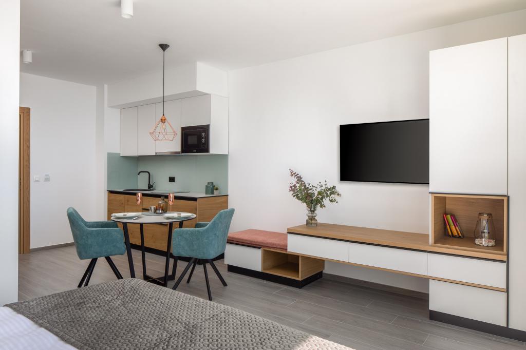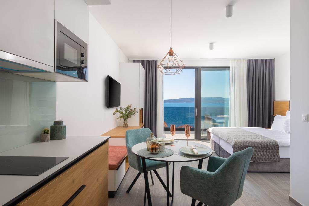 The facility opened in June 2020 and we were one of the first guests in this beautiful apart-hotel. We had an apartment with a direct sea view and a beautiful large terrace, where we enjoyed our breakfast and the evenings. The rooms are very stylish. Everything you need is available in the kitchen. A big plus point goes to the many closets, for the first time we were able to store all our things The room was cleaned every day and the whole hotel was very clean. The owners were very friendly and helpful, we felt very comfortable in this accommodation and are looking forward to coming back. The beach can be reached in 2-3 minutes on foot, which is also a great advantage. Bars & restaurants are right by the beach. Everyone who books this accommodation lands one Direct hit.