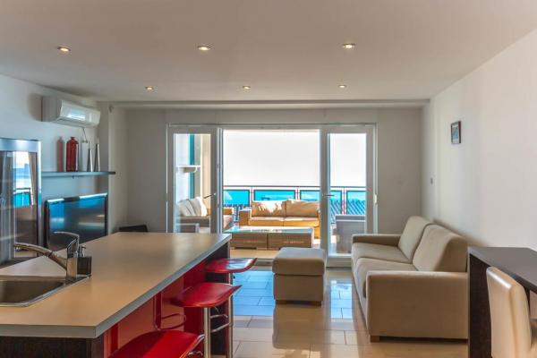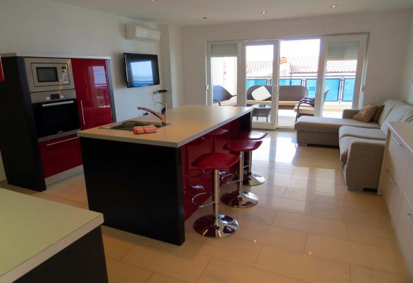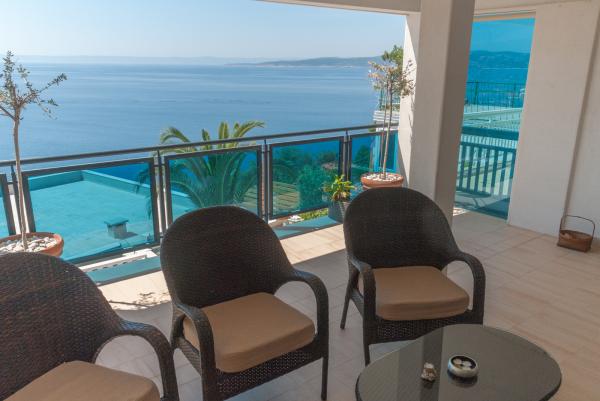 6 luxurious and contemporary apartments in a complex of two large stone houses. Each apartment has a sea view and are all brand new and modernly equipped. The complex is 5 minutes walk to the first beach and sea and 7 minutes to the center.