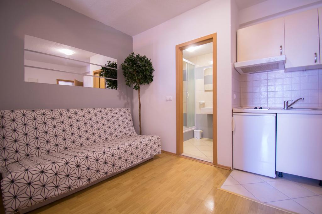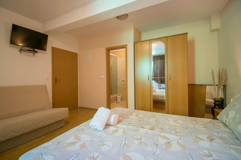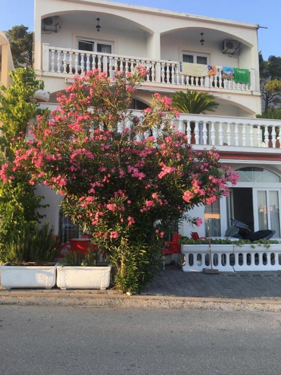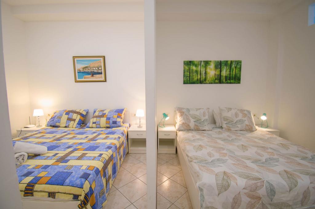 The property is located in a quiet area of Baska Voda. The facility is located 3 minutes walk from the center and the beach. The restaurant is located 20 meters from the accommodation. Near the shops, the distance of 40 meters. Two apartments on the ground floor with access for the disabled. Parking is included in the price. Possibility of transportation from the airport to accommodation surcharge.
