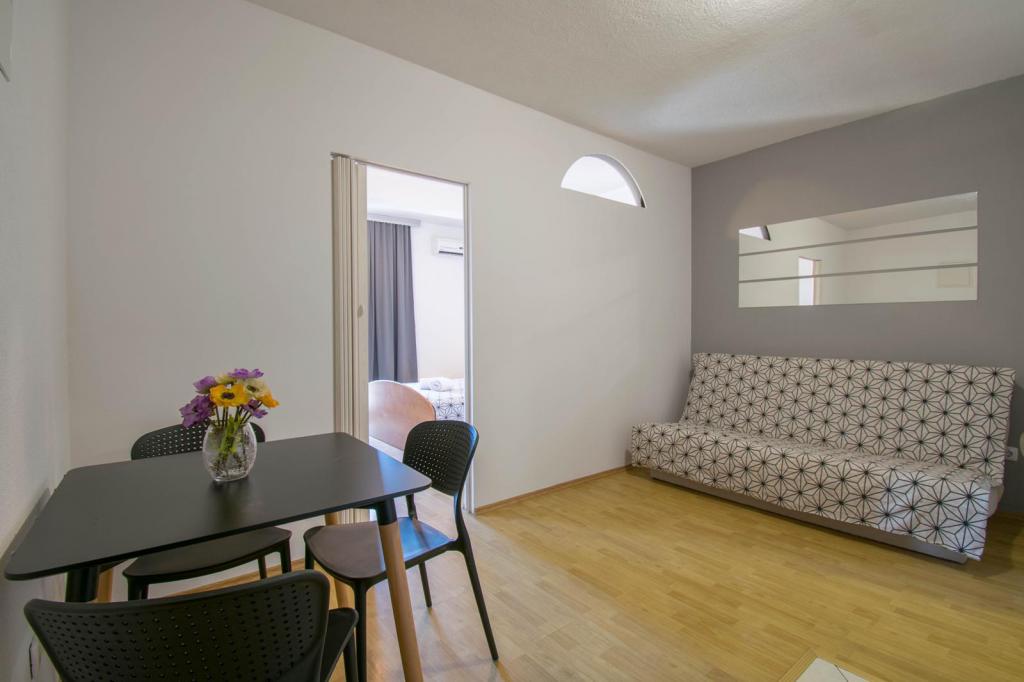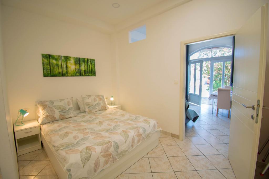 The apartment was on the ground floor, by the street, so you couldn't sleep with the door open. Air conditioning like everywhere, only in the main living room. There is a window only in the main living room, the bedroom is windowless, but that was a plus, because there was no sun there. Clothes dryer a plus, minus the equipment, a few plates and glasses, no microwave, but in front of the entrance there was a kettle with chairs, despite the street, no one looked at the plates, but there is a small terrace. Parking at a height behind the house. The rooms on the first floor would be more atmospheric.