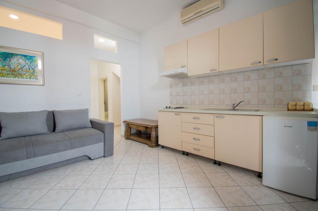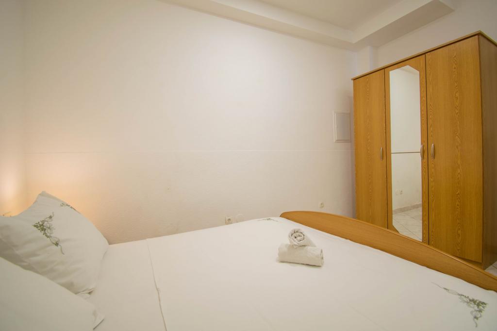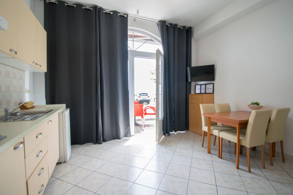 Apartment as described in the offer. Located on the main road in the village so very easy to find. It is close to the beach and the town center - maximum 5 minutes on foot. Parking is available but not at the property itself, only about 150-200 m from it. Very close - within a radius of several hundred meters markets and a bakery. The apartment we rented was on the ground floor. It was clean and nice. There is working air conditioning. Comfortable and fully equipped kitchen (pots, plates, glasses and other utensils, fridge and two-burner electric cooker). Bathroom with shower - everything OK. The rooms have large wardrobes and large very comfortable beds. There is a small terrace with a table at the exit of the apartment, but you sit almost on the pavement (I don't know if it's a disadvantage or an advantage). The owner very nice and helpful. He speaks very good English. I really recommend this apartment.