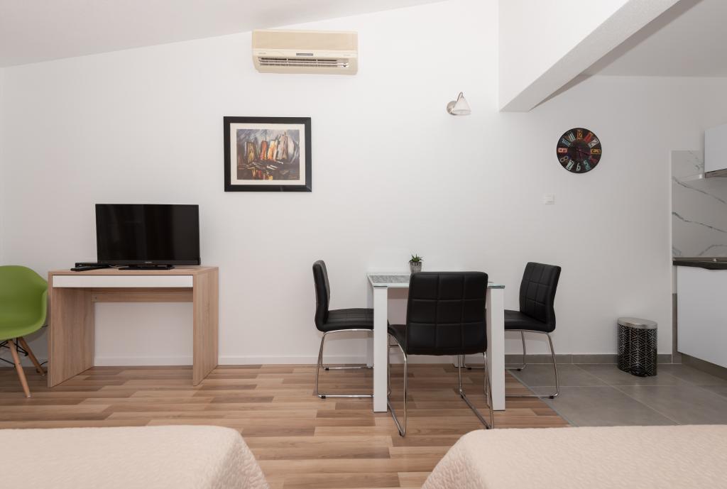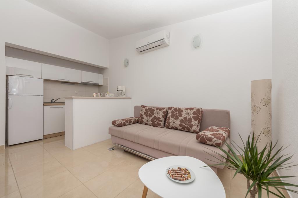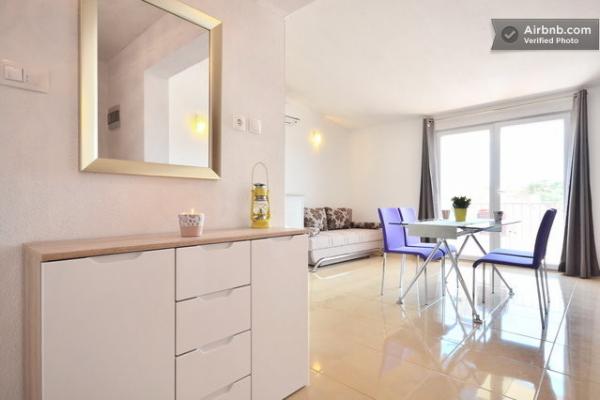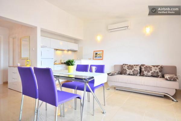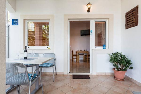 Air-conditioned apartments overlooking the sea, just 200m from the main beach, 4 minutes walk APARTMENT2 2 (a) LUXURY, COMFORTABLE. A modernly decorated apartment-50 m2, a separate bedroom with a king-size double bed and a pull-out bed for 2 people in the living room. APARTMENT 4 1 with 2 bedrooms large living room with fold-out bed for 1-2 persons. Suitable for families and couples. APARTMENT 3 comfortable apartments for 2-3 persons with balcony - a spectacular view of the sea and the islands. APARTMENT 2 2 (b) air-conditioned apartment, separate entrance with bedroom and bed for 2 persons in the living room. , Belonging to the sun terrace, and a seating area in front of the apartment Suitable for families and couples. ROOM for 2 persons - separate entrance, refrigerator, parking secured . In the surroundings there is a restaurant, a shop, a pharmacy, a doctor, a beach. Our guests have free use of WI-FI, parking next to the house,. . Special features - Mediterranean garden behind the house with a sunny refreshing shower.