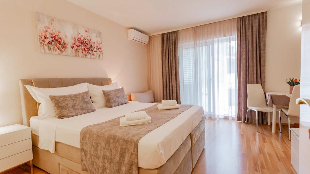 Located in a quiet street in the heart of Baška Voda, our fully equipped apartments are just a 2-minute walk from the main beach, shops, restaurants and the town center. Each apartment has air conditioning, free Wi-Fi and its own parking space in front of the building. They are an ideal choice for guests who want to enjoy being near the sea, but also have peace and comfort during their vacation.