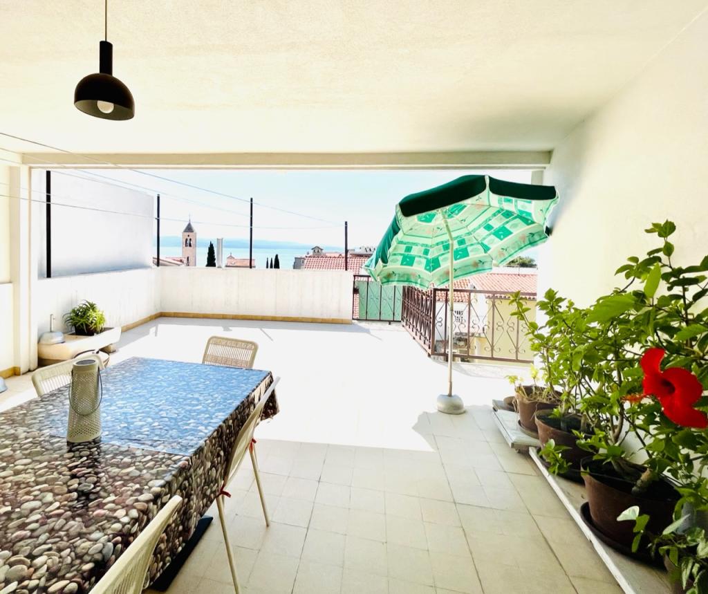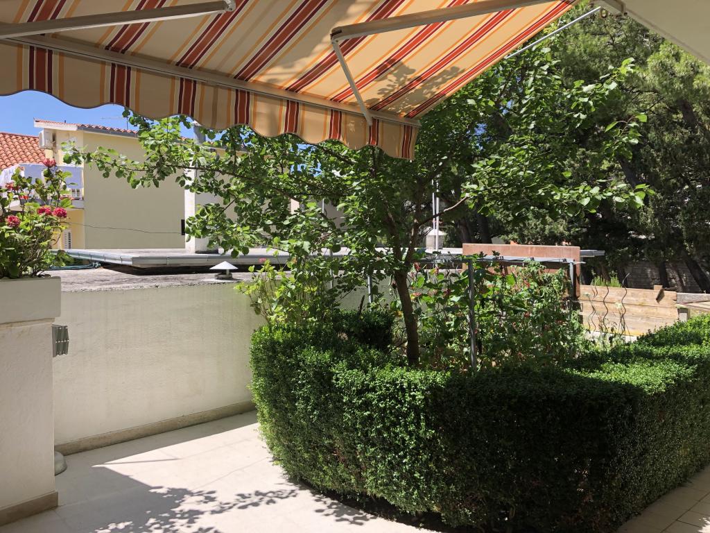 Welcome to our family house in a quiet part of the center of Baška Voda, right next to the pine forest and the church of St. Lovre. The house is a 2-minute walk from the sea and the pebble beach, and offers a beautiful view of Mount Biokovo and the islands of Brač and Hvar. The apartment on the ground floor is ideal for a couple with children or two couples. It includes a kitchen, a master bedroom with bathroom and a separate room with its own bathroom, ensuring additional privacy and comfort. The terrace offers a view of our garden and the nearby pine forest and is perfect for morning coffee or evening relaxation. The apartment on the second floor offers an extraordinary open view and is ideal for a couple with children or just a couple. It has a separate kitchen, a living room with a large sofa bed, a bedroom and a bathroom. The large terrace is an ideal place to enjoy privacy during your vacation. We provide our guests with private parking a 7-minute walk from the house. Come and experience our hospitality and enjoy the ideal location for a perfect vacation in Baška Voda!