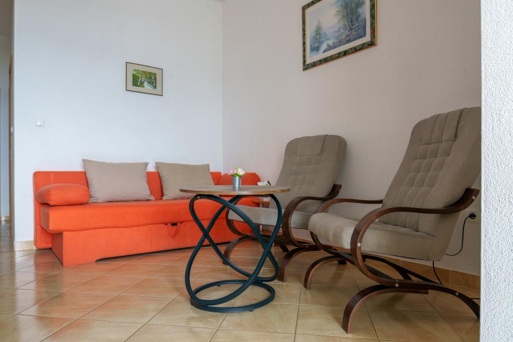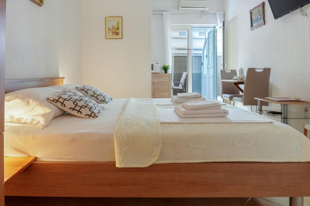 Apartment Ruza Baska Voda is recommendable! Excitable owners. All in accordance with the description and the photos. Clear. The room where we stayed (2 + 1) beautiful view from the balcony of the sea. In the evening, you can leisurely relax on the balcony - without the bustle and noise. Very good kitchen, practically anything you do not need to take with you (I missed only a microwave, but it is electric hob and to the pan and pots). The apartment is fairly steep climb / driveway, but if it is not the view from the balcony would not be so cute :) and so it all beautifully in advance to be seen. WIFI evenings weak links. Overall: I would recommend.