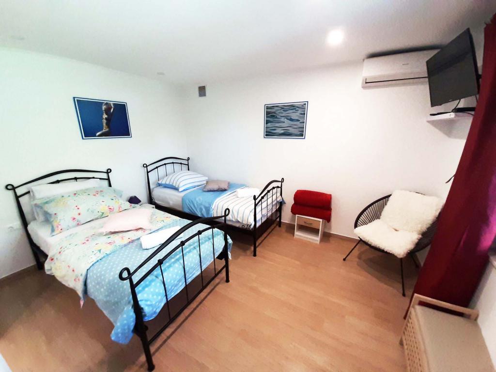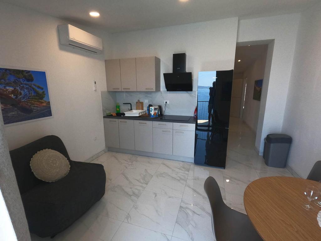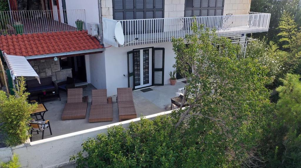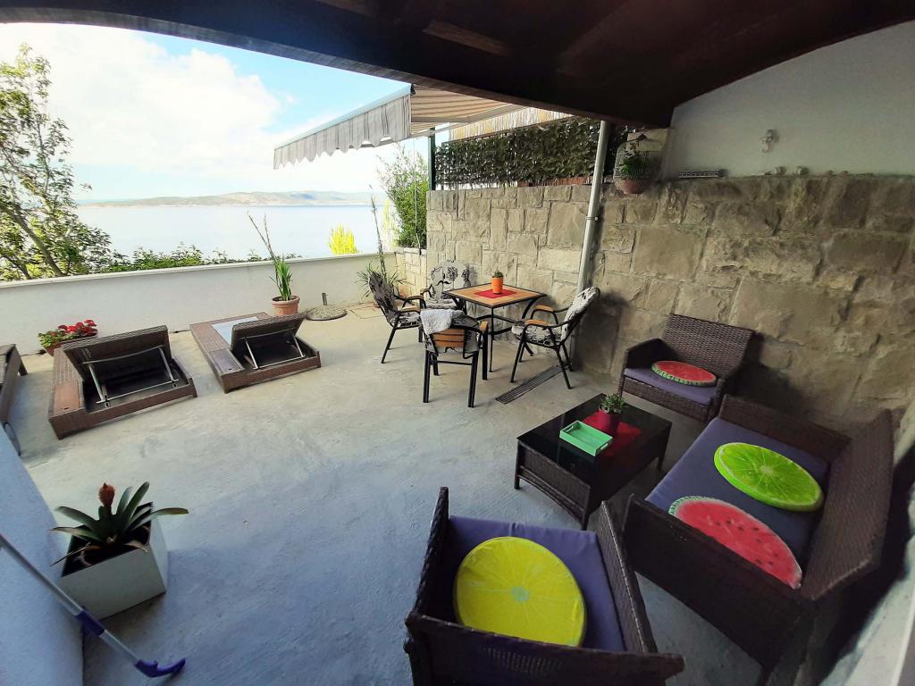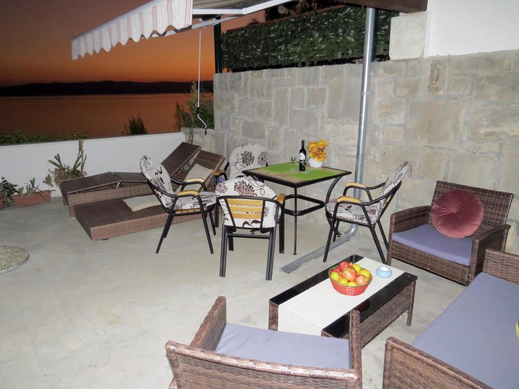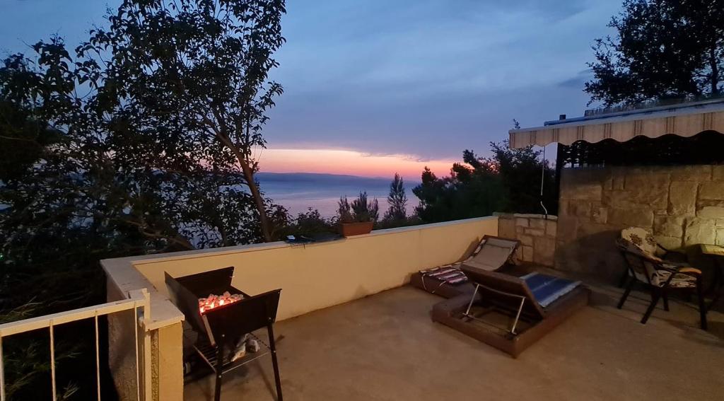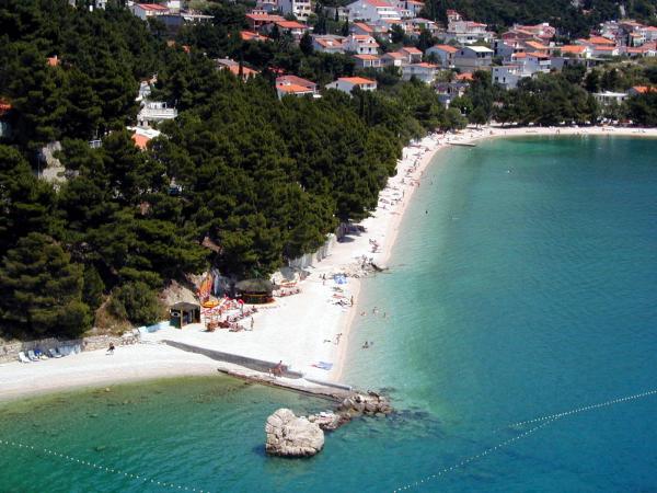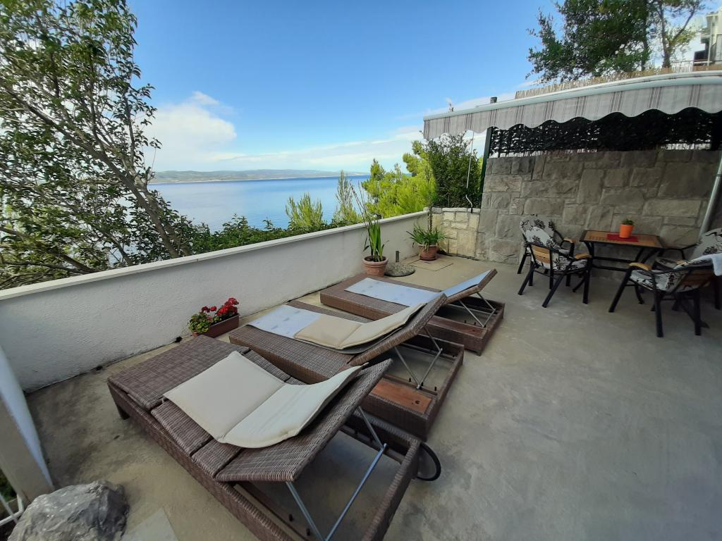 Newly renovated and fully equipped apartment in a quiet area between Baska Voda and Brela, located first row to the sea, above a beautiful beach. The facility is located 10 minutes walk (approx. 500 m) from the center of both places. Large terrace with canopy and sea view, 2 double bedrooms, two bathrooms and kitchen with access to the terrace. Everything new. The apartment is located on a separate floor with a separate entrance, a large garden separated from all neighbors. Private parking in the shade just above the house.