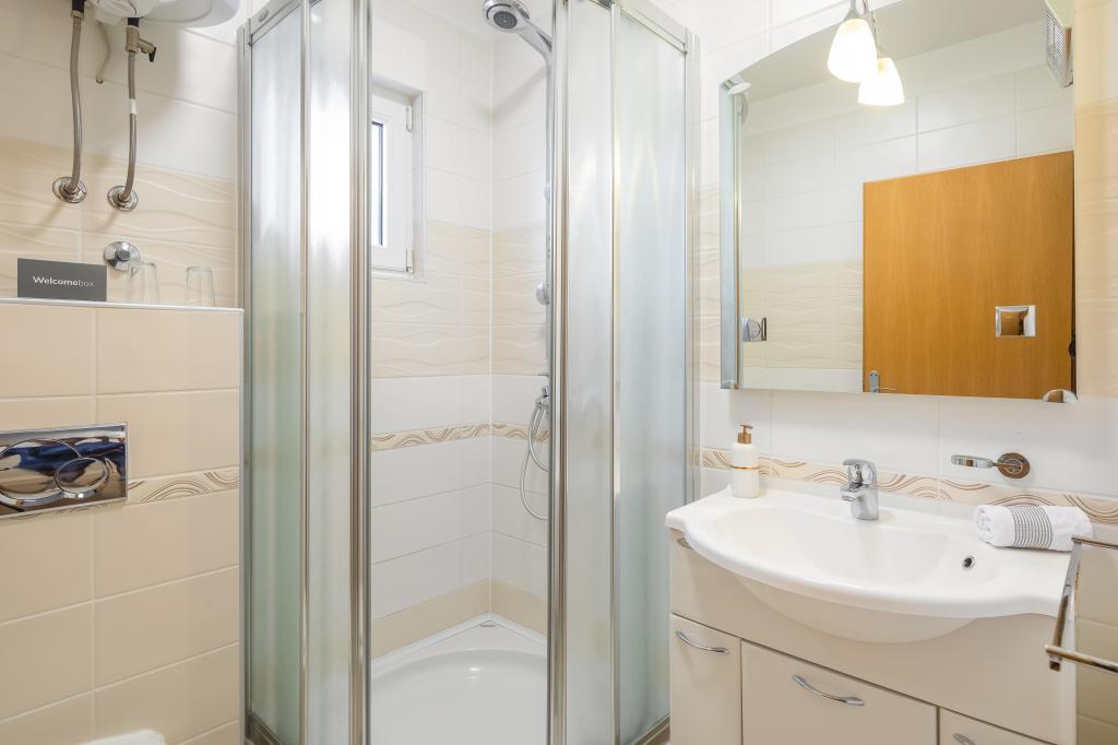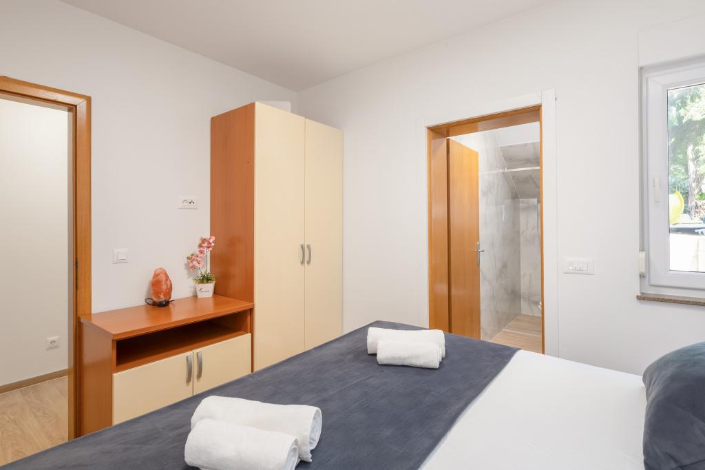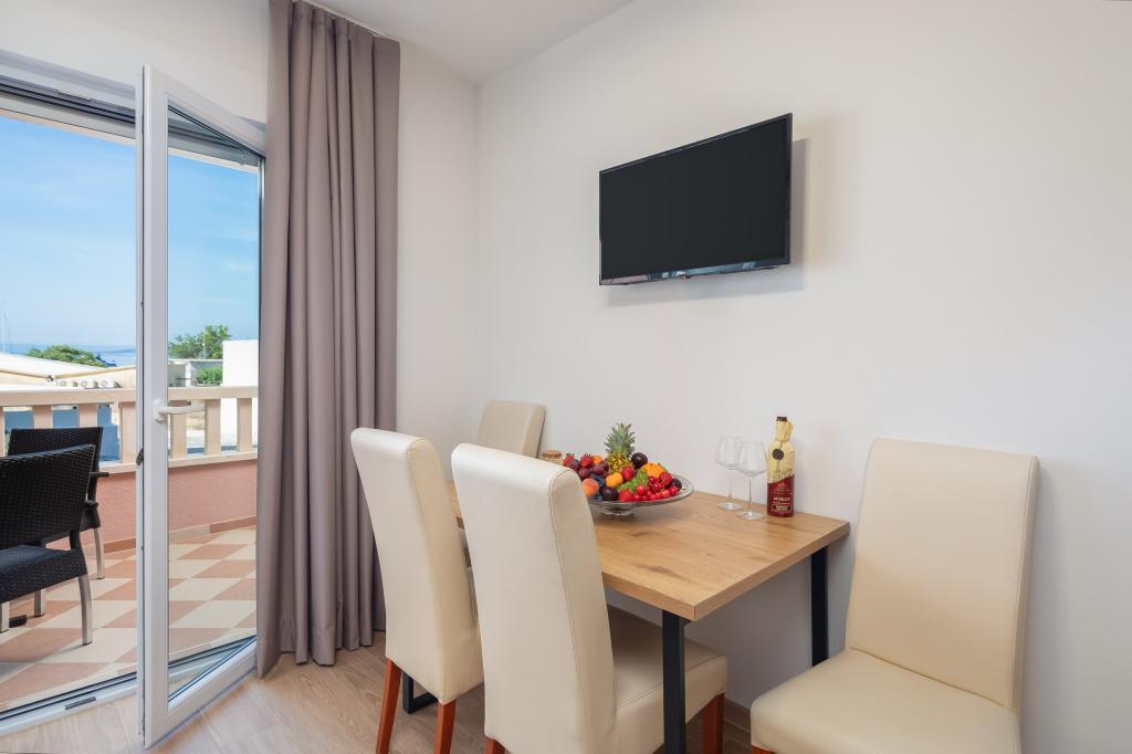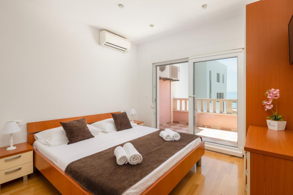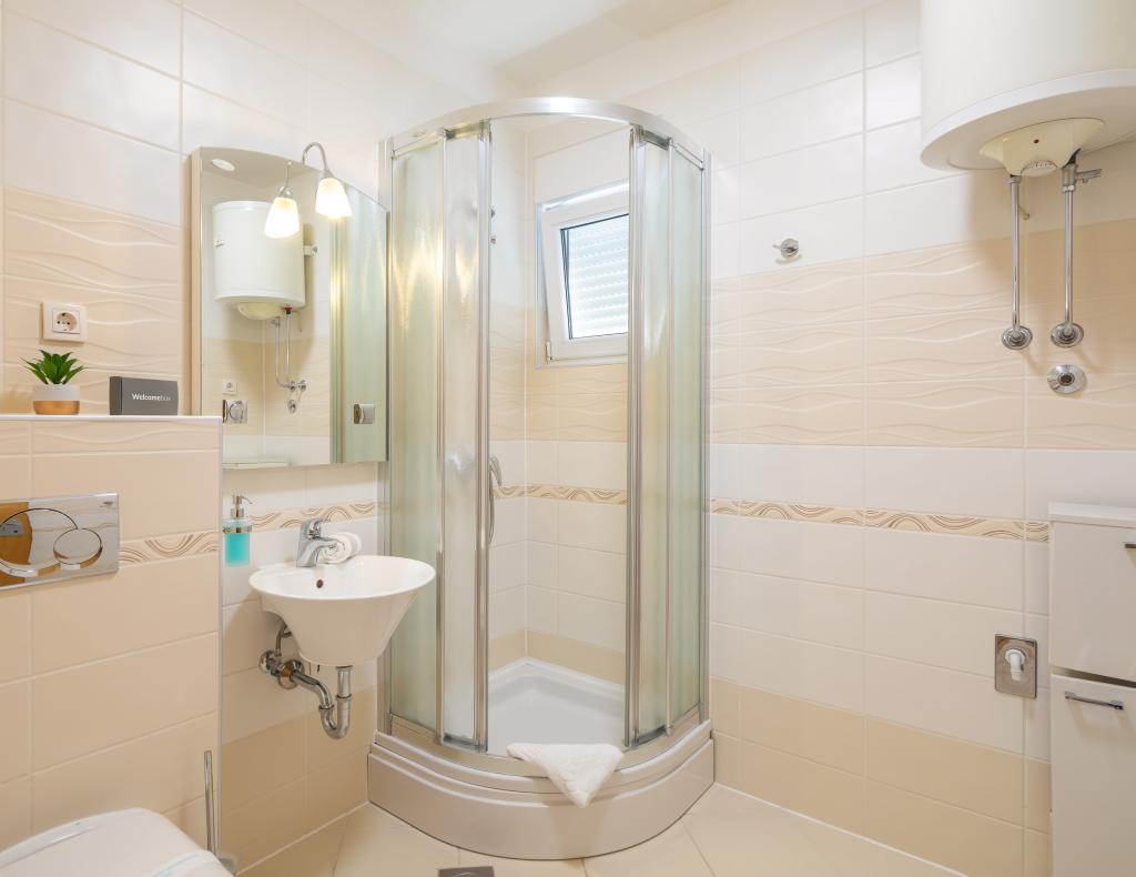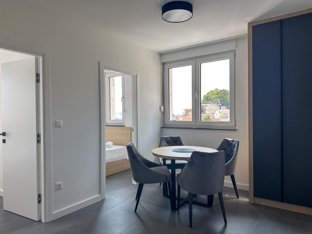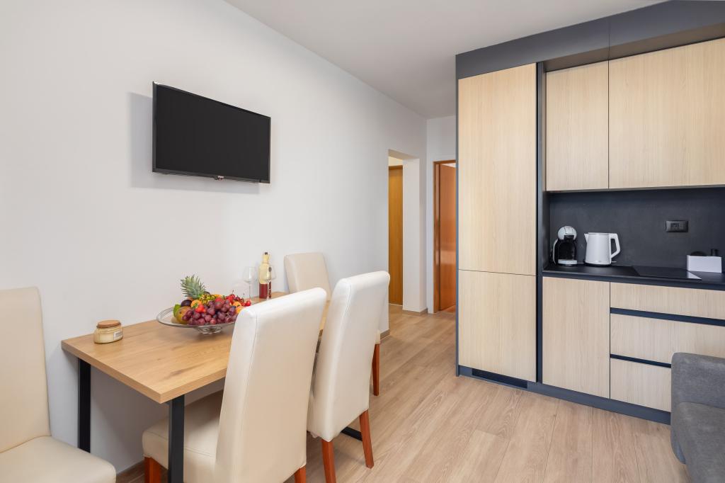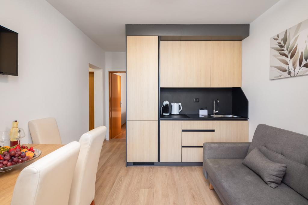 Apartments Teo are located 150m from the beach in Baška Voda. It consists of an apartment for 4 people, then an apartment for 6 people and two apartments for 8 people. The apartments are equipped with a kitchen, a bathroom, a living room and a private balcony. A shared washing machine is located in the garage. Parking is free within the building.