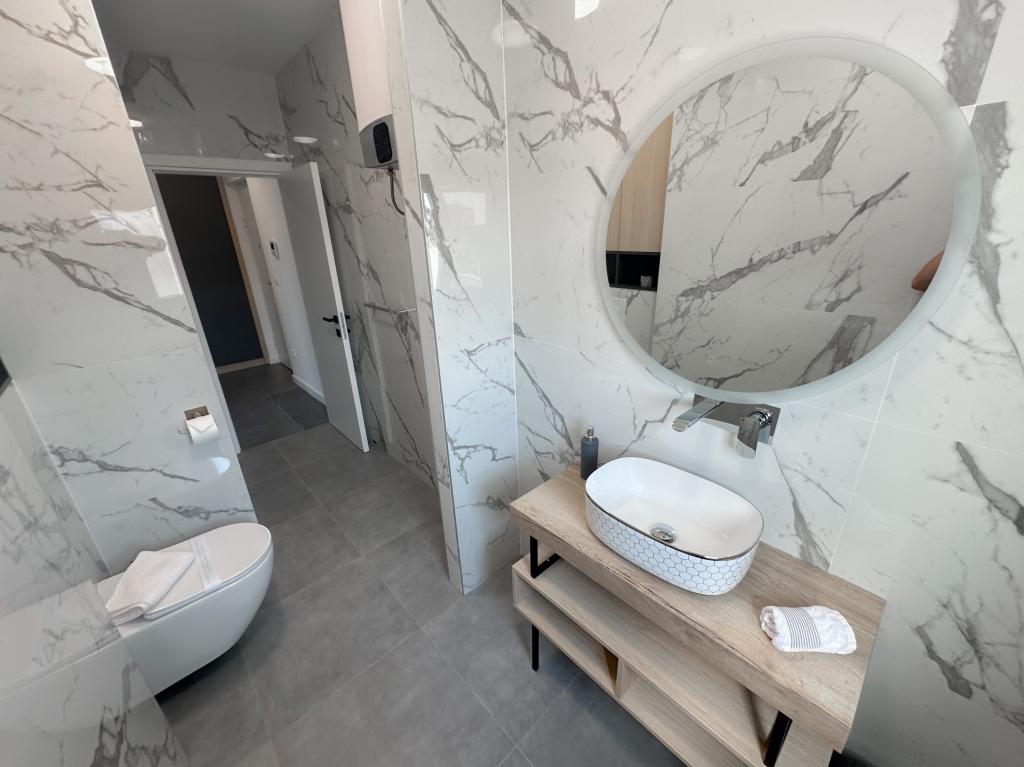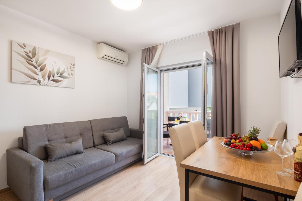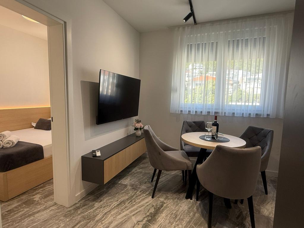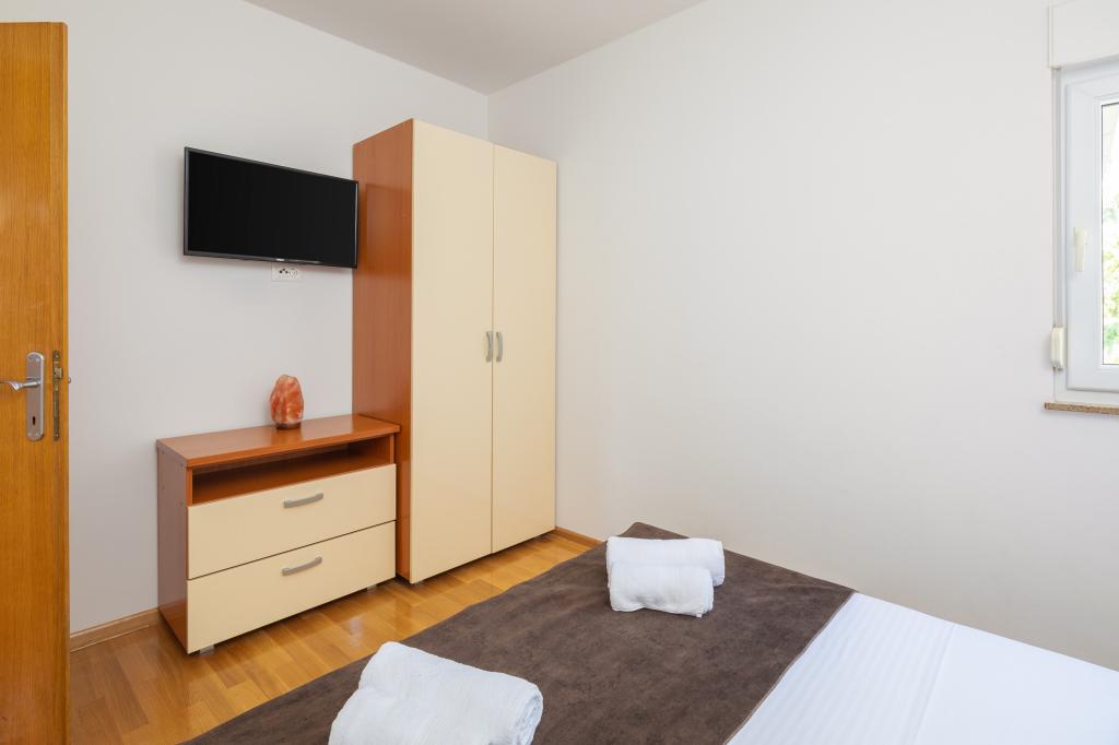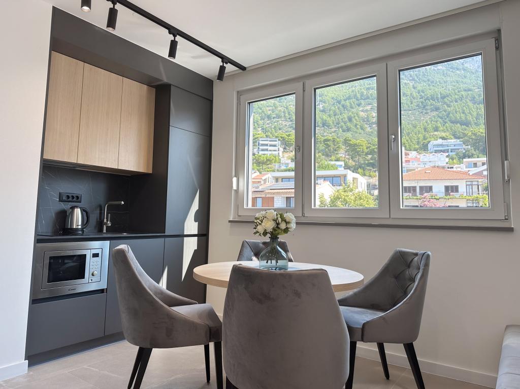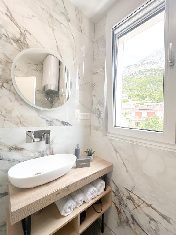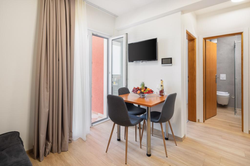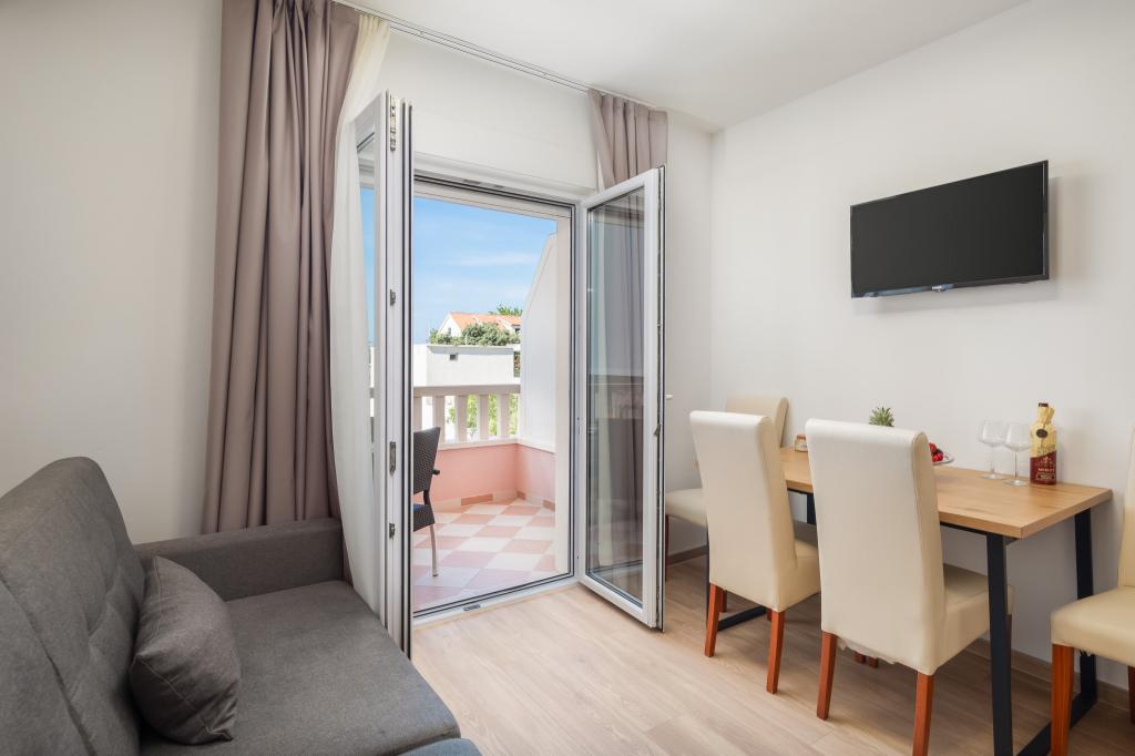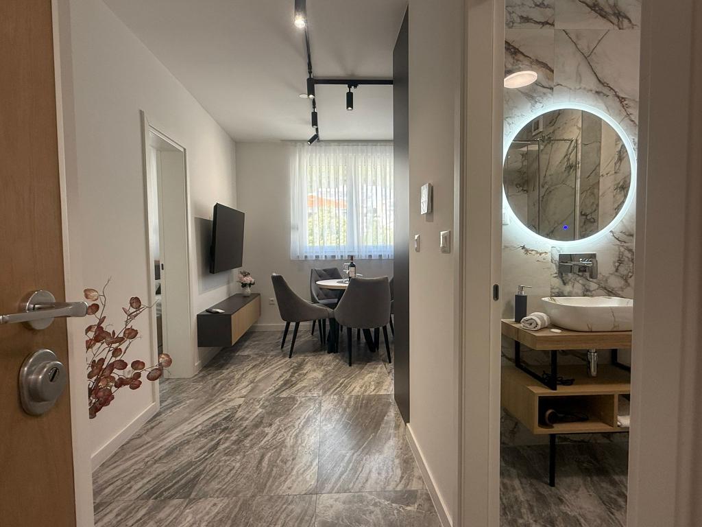 Apartments Teo are located 150m from the beach in Baška Voda. It consists of an apartment for 4 people, then an apartment for 6 people and two apartments for 8 people. The apartments are equipped with a kitchen, a bathroom, a living room and a private balcony. A shared washing machine is located in the garage. Parking is free within the building.