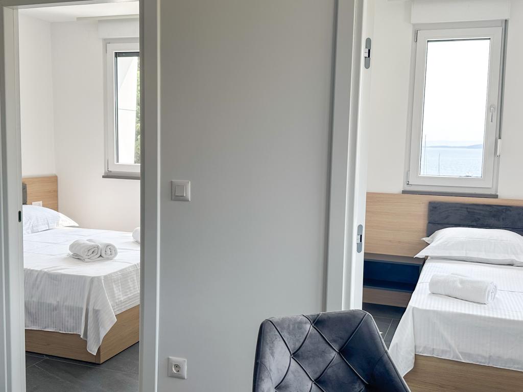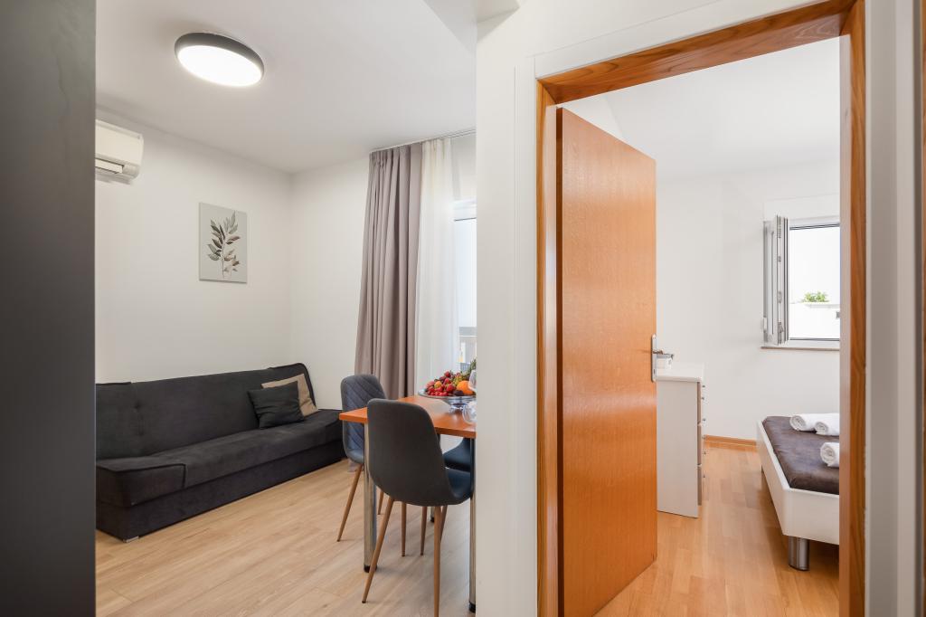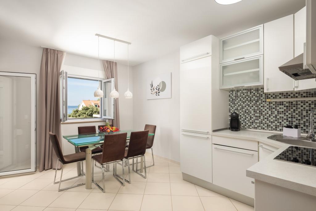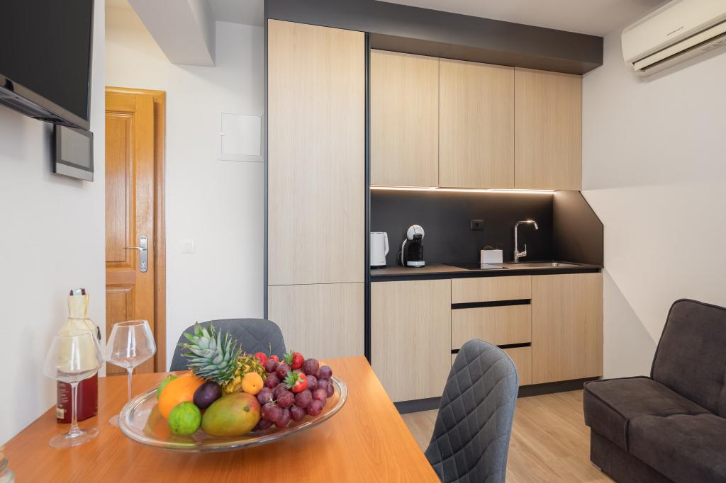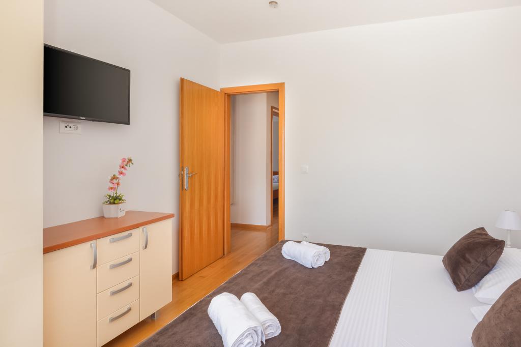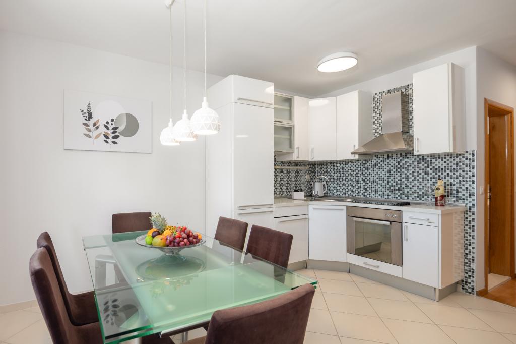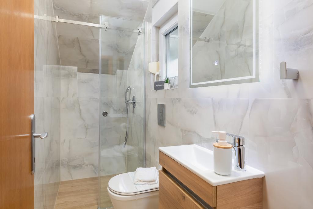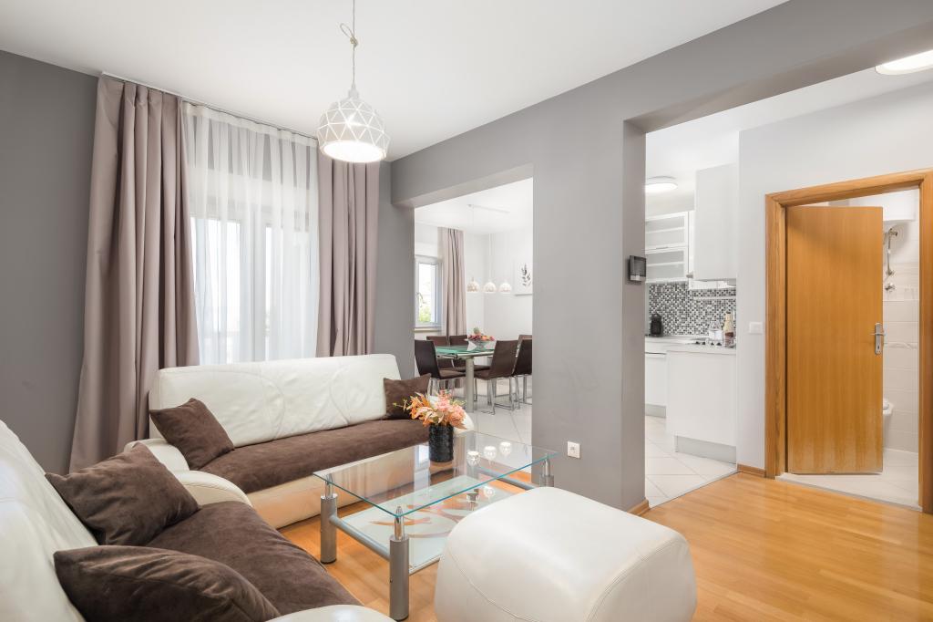 Apartments Teo are located 150m from the beach in Baška Voda. It consists of an apartment for 4 people, then an apartment for 6 people and two apartments for 8 people. The apartments are equipped with a kitchen, a bathroom, a living room and a private balcony. A shared washing machine is located in the garage. Parking is free within the building.