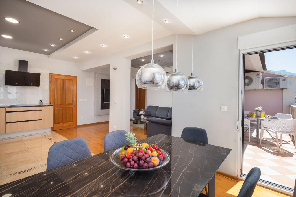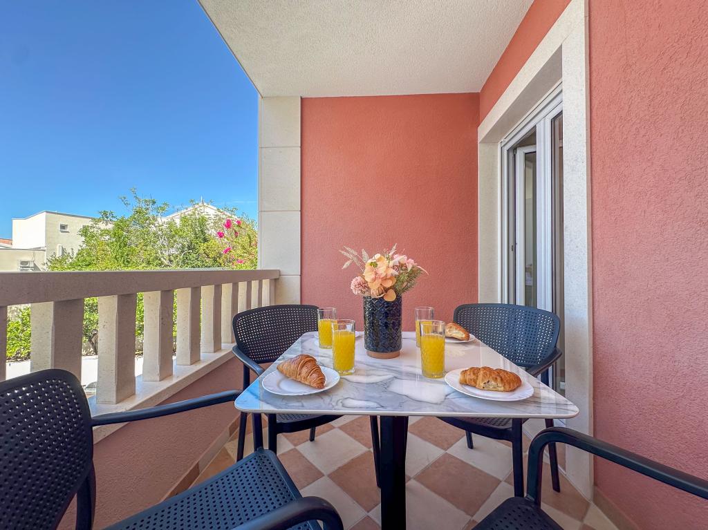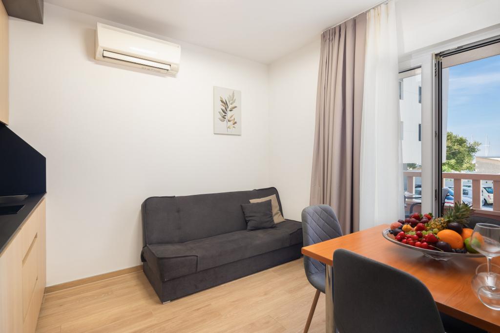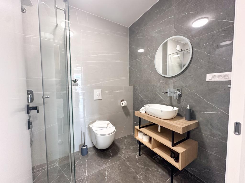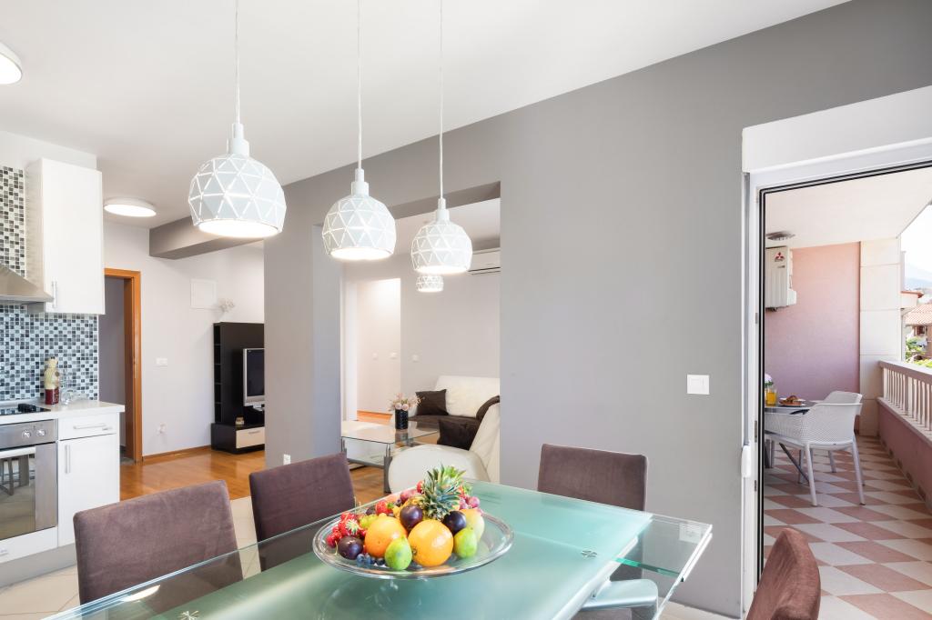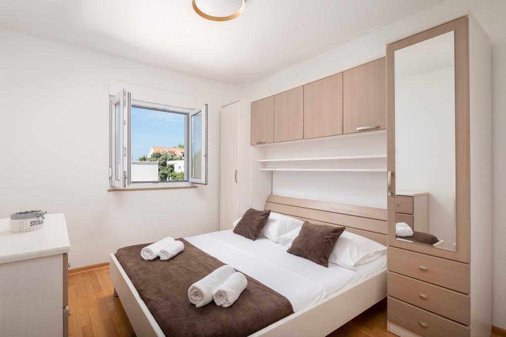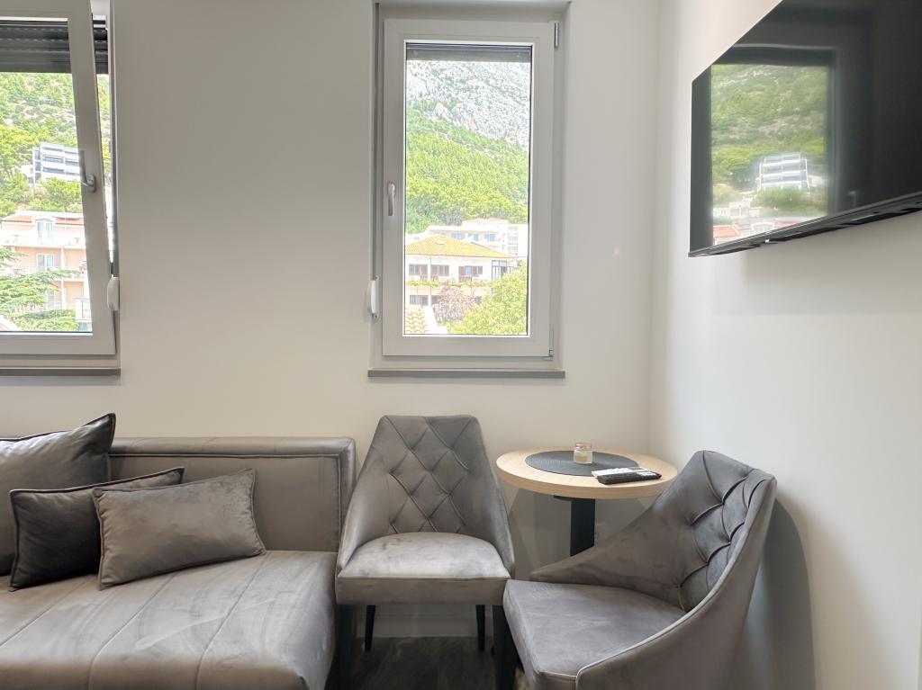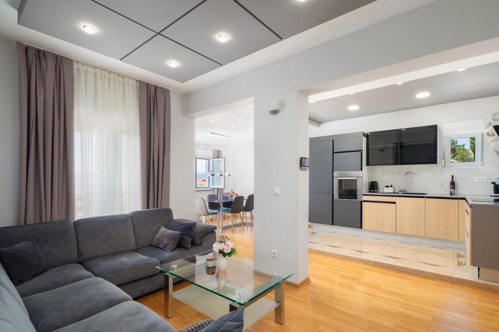 Apartments Teo are located 150m from the beach in Baška Voda. It consists of an apartment for 4 people, then an apartment for 6 people and two apartments for 8 people. The apartments are equipped with a kitchen, a bathroom, a living room and a private balcony. A shared washing machine is located in the garage. Parking is free within the building.