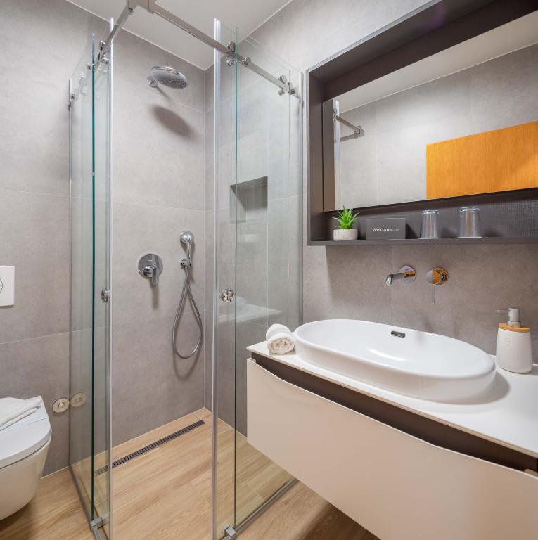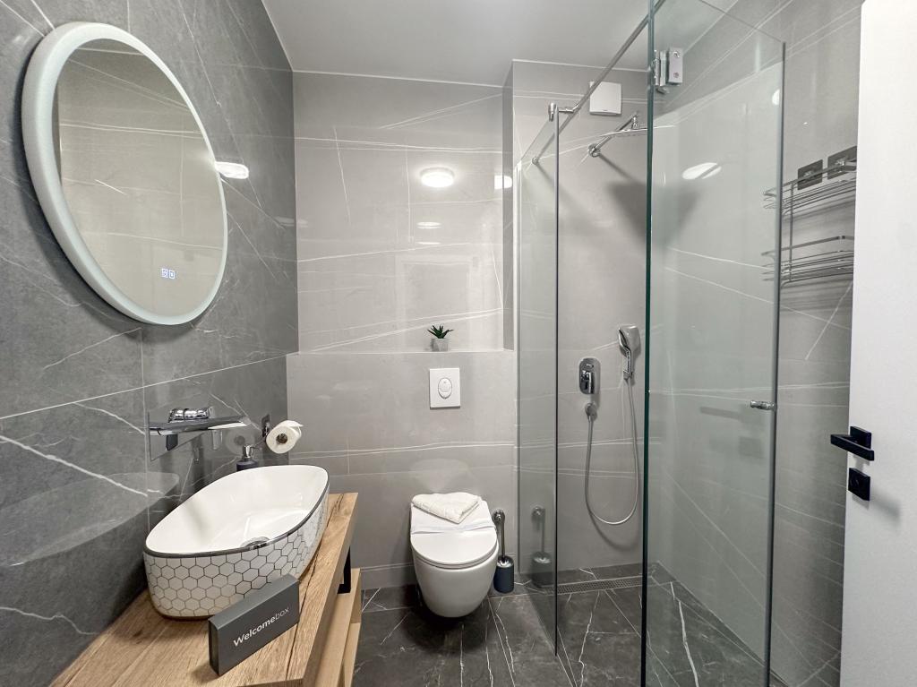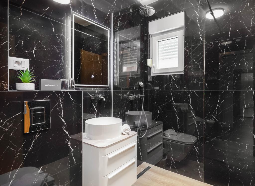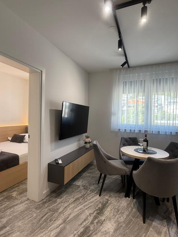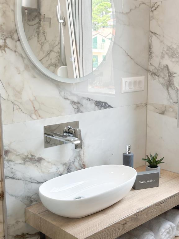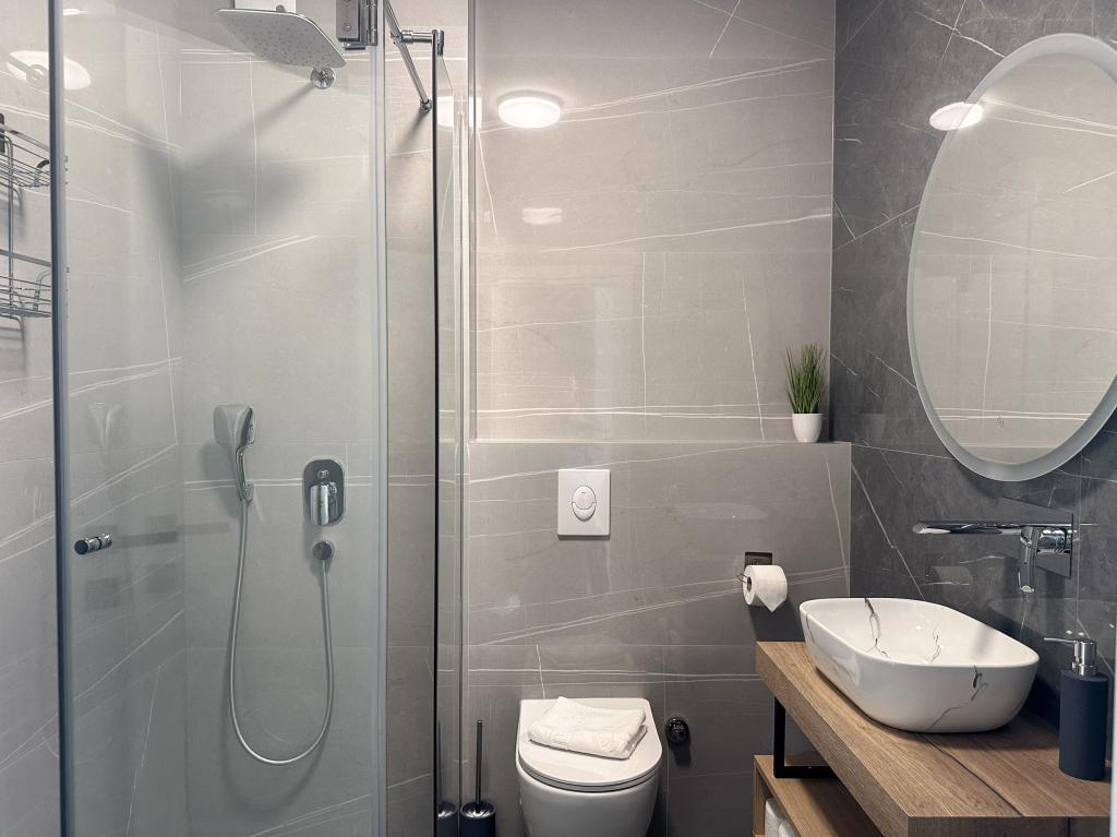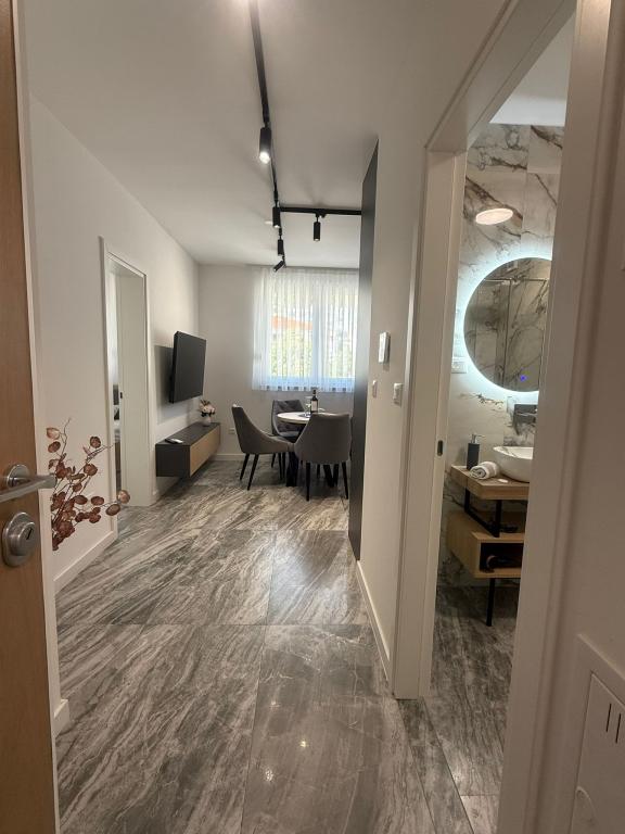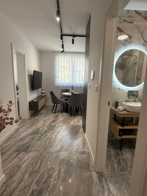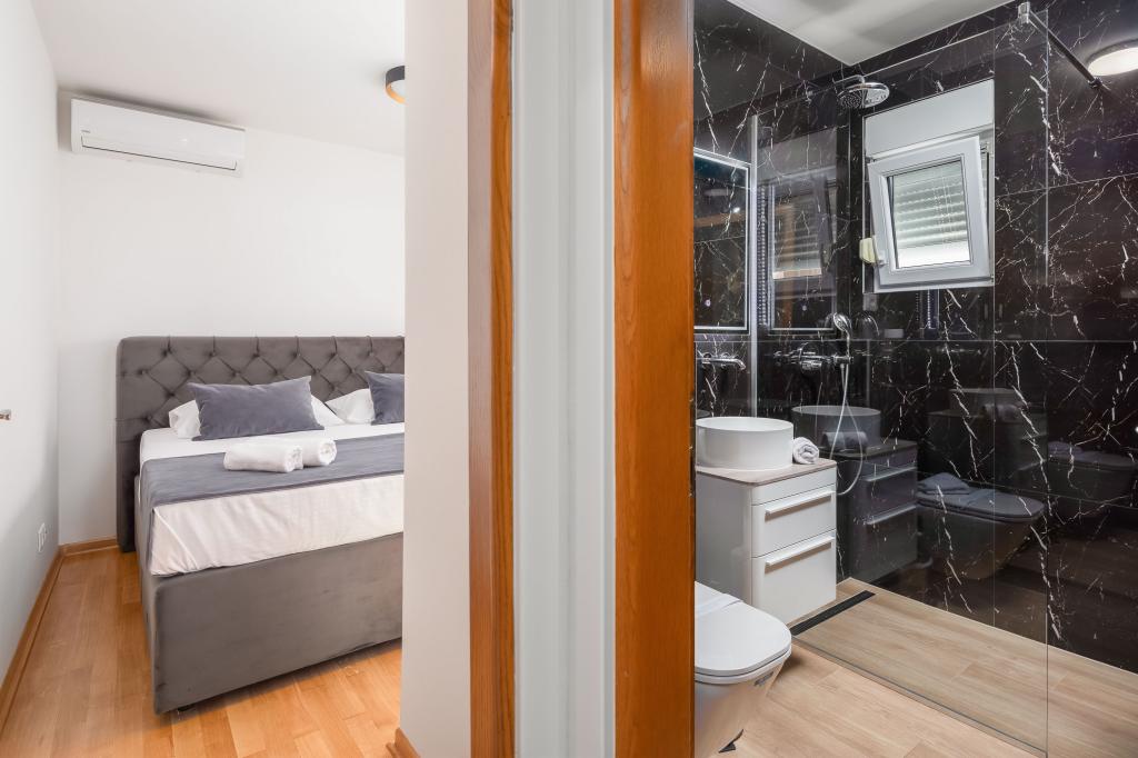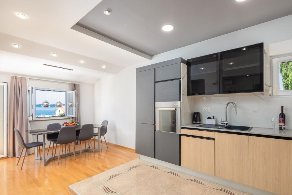 Apartments Teo are located 150m from the beach in Baška Voda. It consists of an apartment for 4 people, then an apartment for 6 people and two apartments for 8 people. The apartments are equipped with a kitchen, a bathroom, a living room and a private balcony. A shared washing machine is located in the garage. Parking is free within the building.