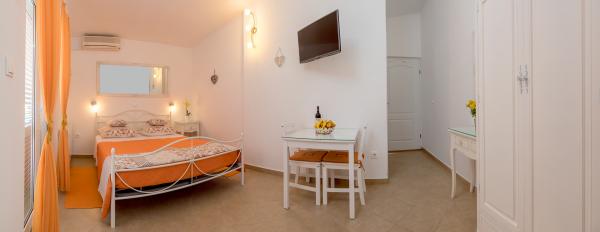 We were in a studio apartment for 2 people. The apartment is very nicely furnished with style and a touch of romance ... in a great location near the main beach. The owners are friendly and loving, and around the house is a beautiful garden and a parking space in the shade. So far, this is the nicest apartment we've been to ... and I have no comments. I hope to see you again next year.