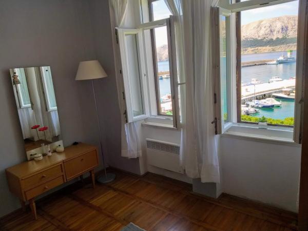 Apartment Franica is located on the coast, first row to the sea, only three minutes walk to the small pebble beach. The apartment is a spacious, charming combination of retro and modern style. Guests are also available and already included in the price of Wi-Fi, LED TV with international programs and air conditioning. Since the facility is in the pedestrian zone, we offer free private parking, 300 meters away from the apartments. The apartment consists of a kitchen with dining and living room, two bedrooms, a toilette, a bathroom with a shower and a small, lovely balcony. The apartment is designed for guests looking for a perfect location close to the sea and the beach, and with a view to remember. Welcome!