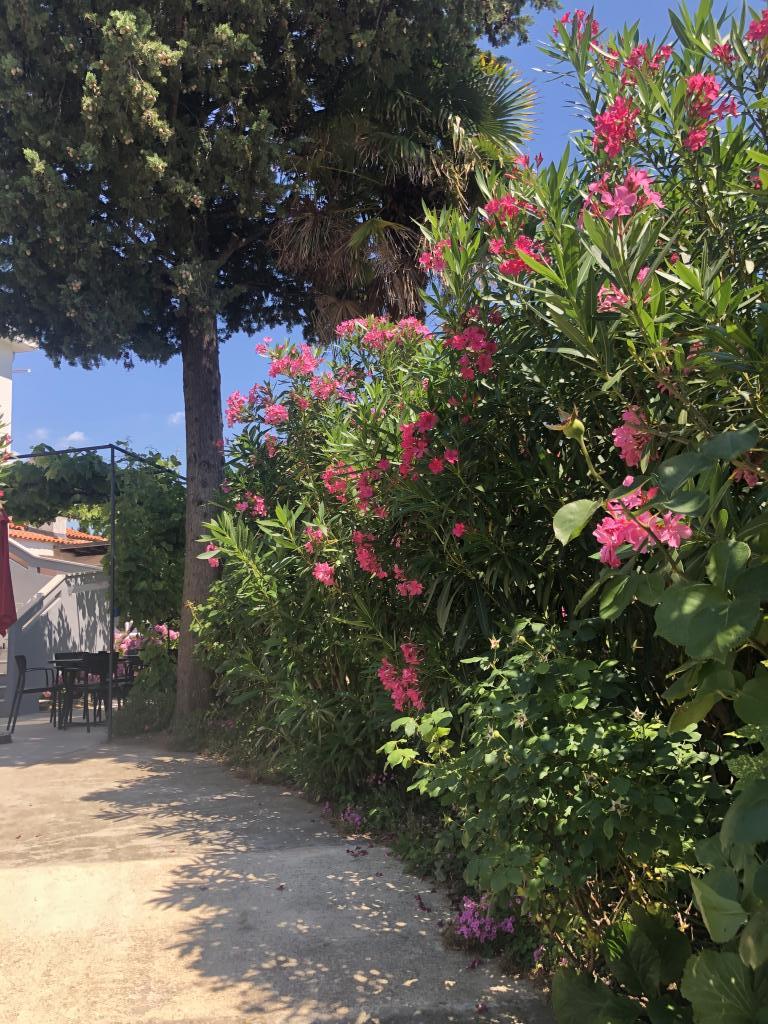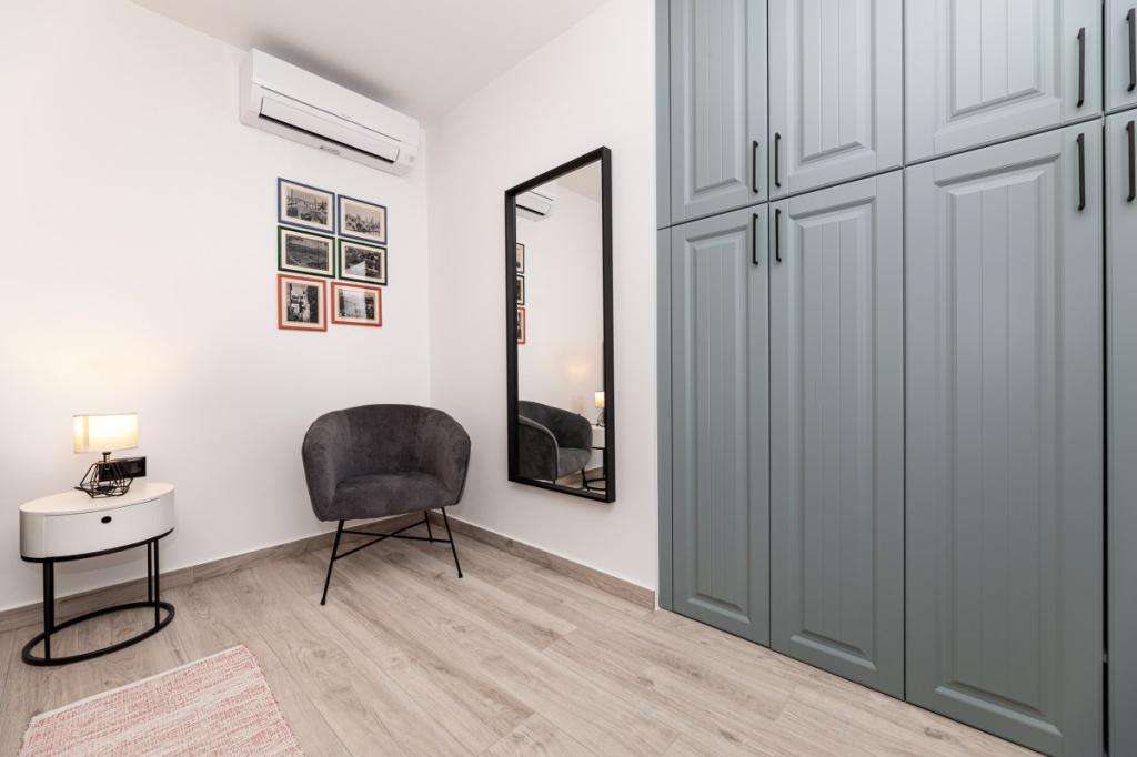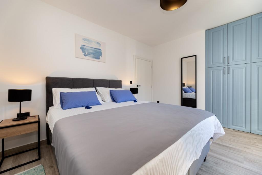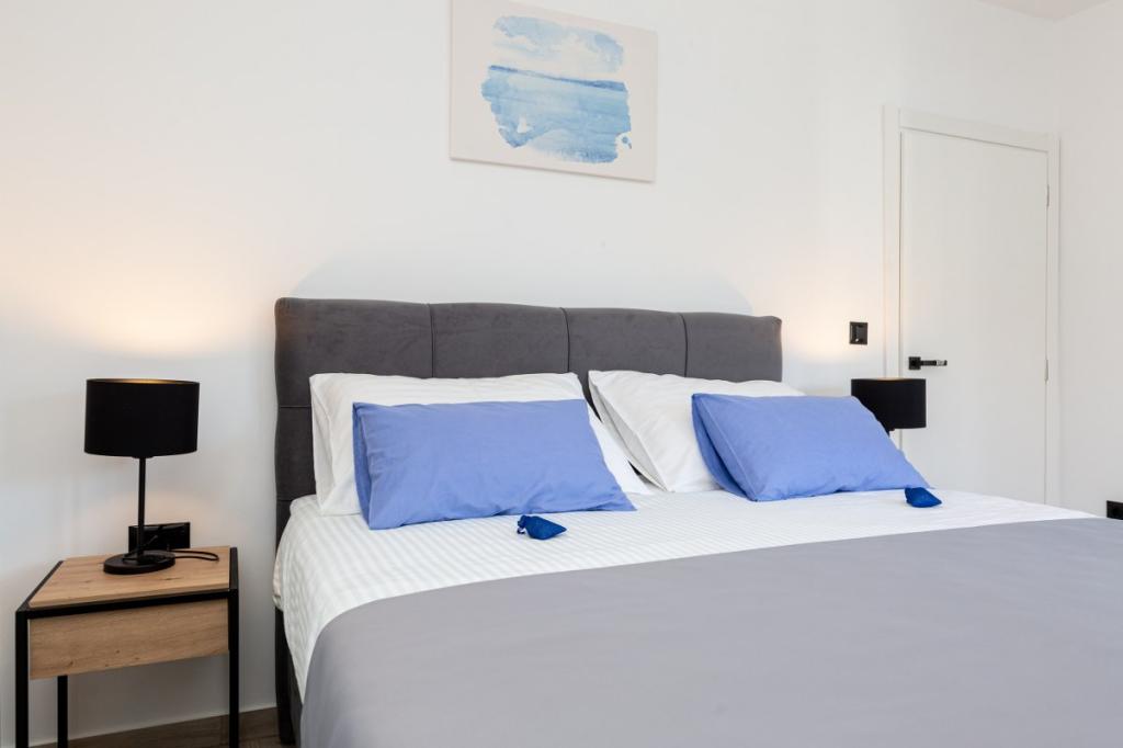 Modern apartment in a quiet area, about 200 m from the sea. It is located on the 1st floor of a family house. The facility is located 5 to 10 minutes walk to the beach or town center, and has 2 parking spaces. The apartment consists of 3 double bedrooms, 2 of which have a balcony. Each room is air conditioned and has satellite TV and hairdryer. Kitchen equipped with refrigerator, freezer, dishwasher, hob, microwave, filter coffee machine, kettle, toaster and all necessary utensils. The living room is also air conditioned and has satellite TV. The apartment has 2 bathrooms with shower. WI FI included in the price. The apartment also has a garden terrace with seating and barbecue. We wish you a pleasant stay in our apartment.