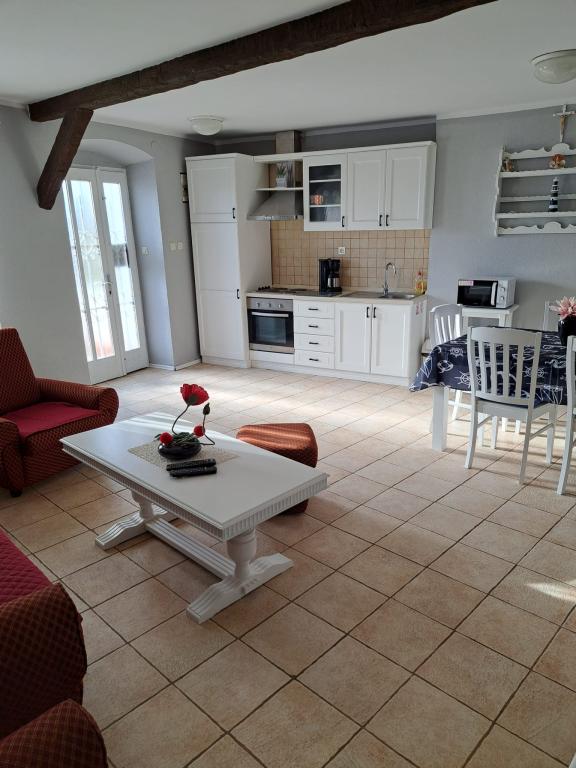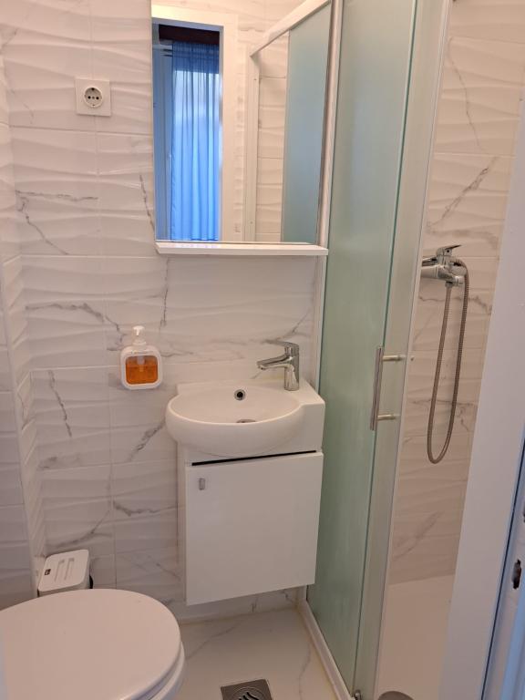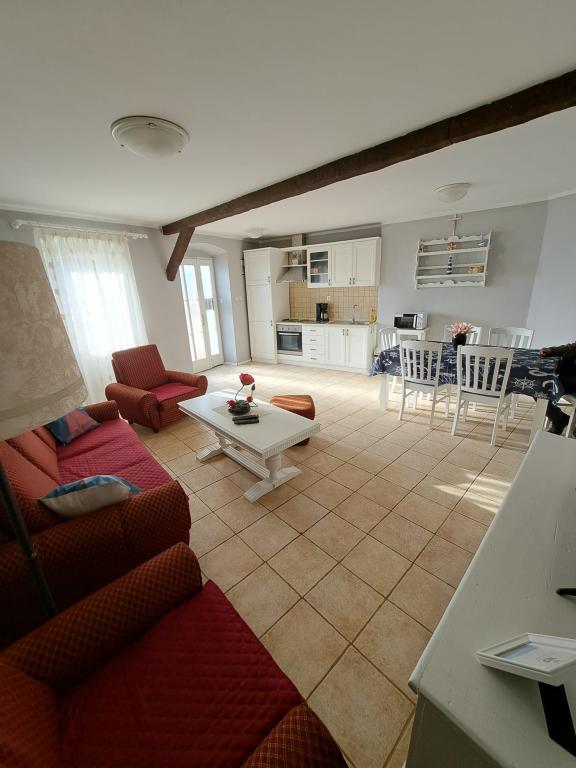 The apartment is located in the old town. The apartment has two bedrooms with double beds and an extra bed for 1 person (a sofa bed). On the ground floor there is a living room, dining room, kitchen and bathroom with separate toilet. On the first floor there are two bedrooms, toilet and shower. On the roof of the apartment there is a terrace. The apartment offers Android TV, microwave oven, washing machine, air conditioning throughout the apartment. The apartment is located first row to the sea. The apartment is 70 m from the beach, which our guests like to use. You have a parking space for two cars 300m from the apartment. Traffic is prohibited in that part of the town.