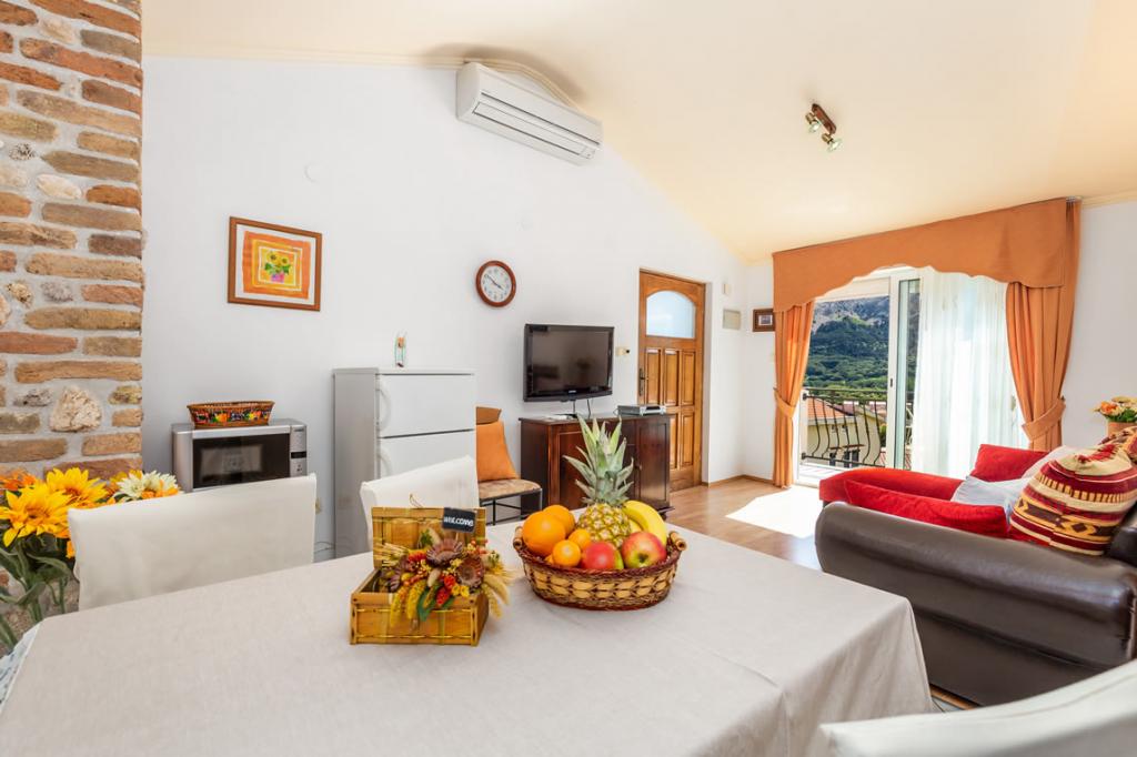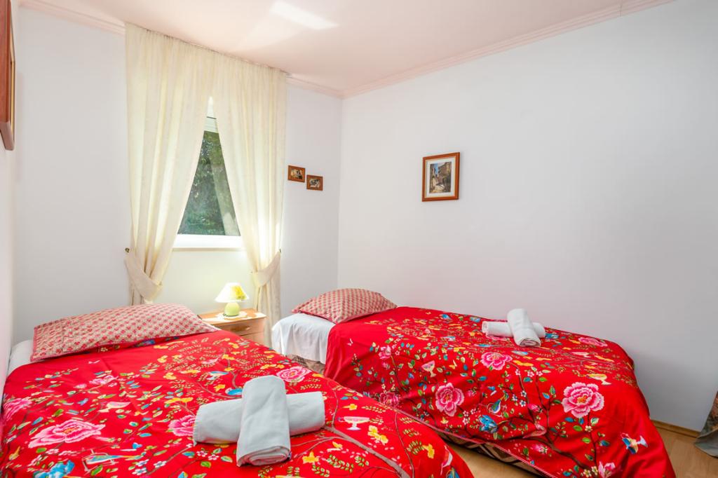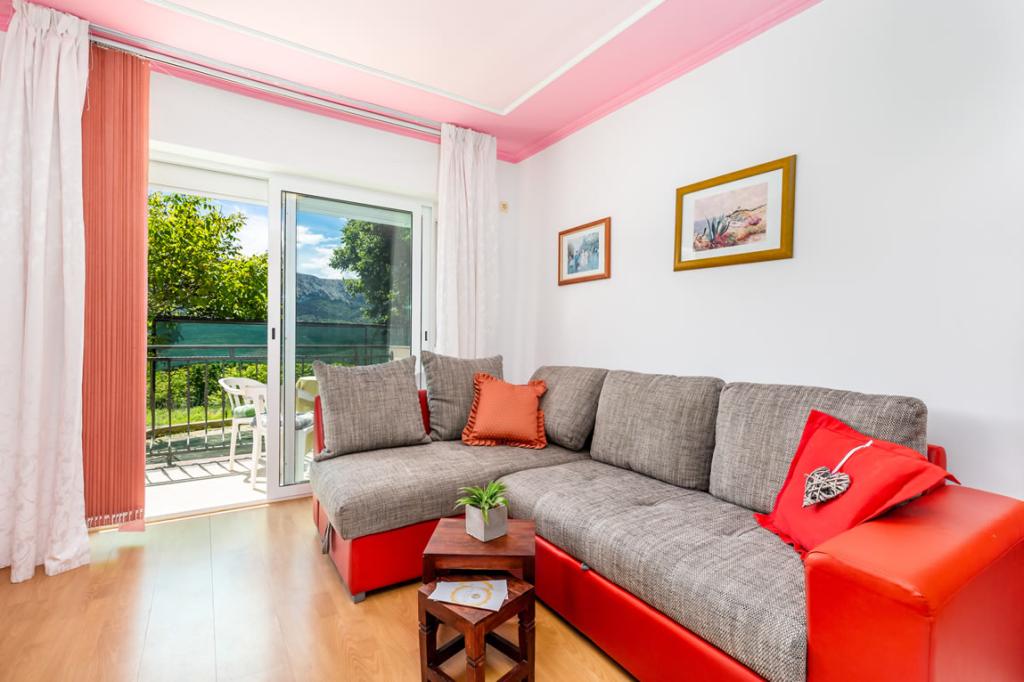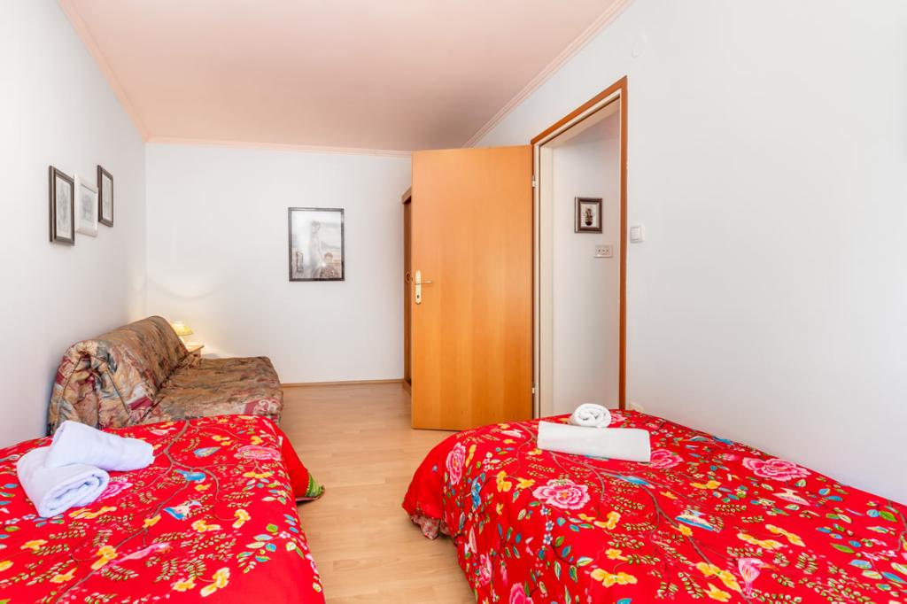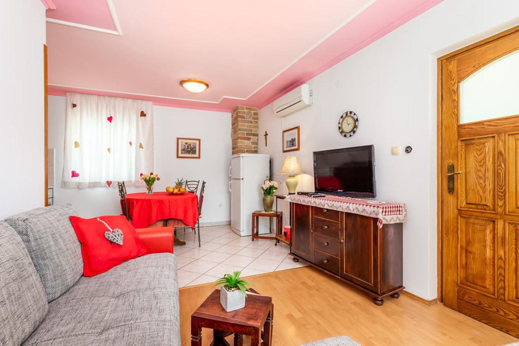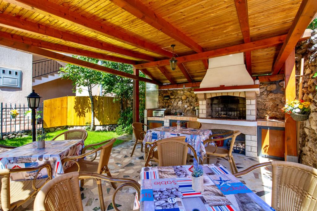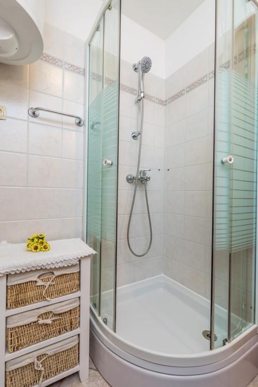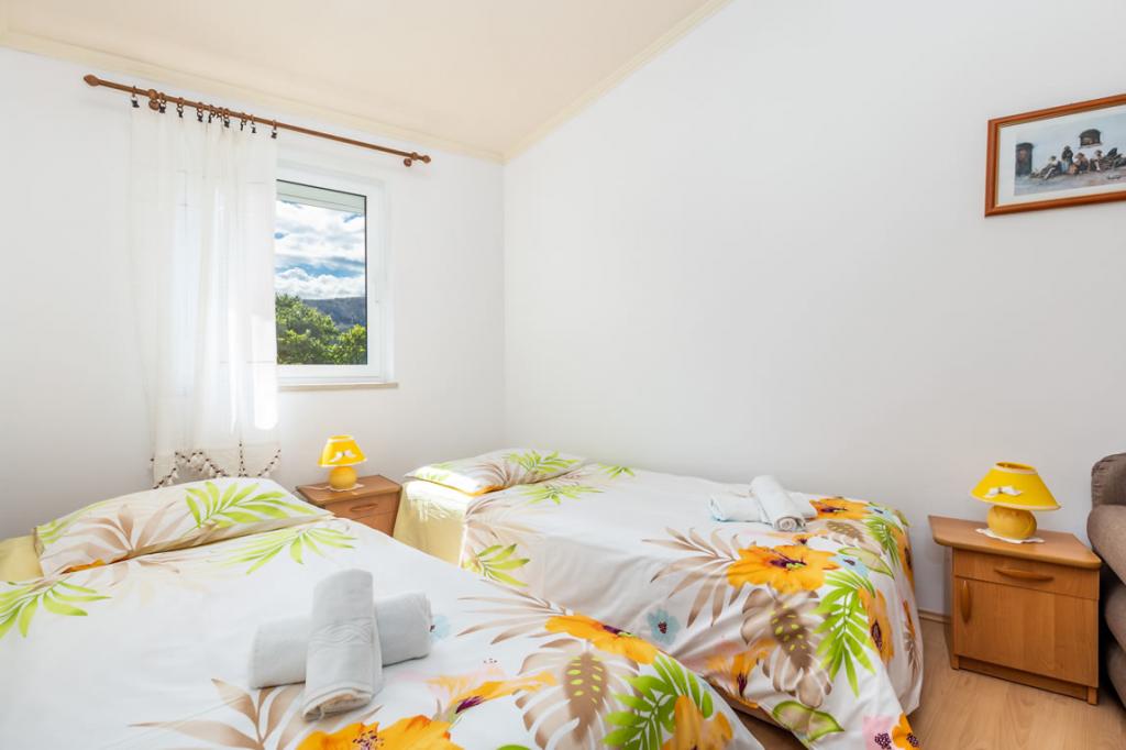 Apartments Patricia are located in a quiet location close to the center, a 5 minute easy walk (350 meters) to the beach, which has a European blue flag. The apartments are 60 square meters, equipped for 4-7 persons. The apartments are newly renovated, consist of one bedroom with double bed, one room with two to three beds, bathroom with WC, spacious and fully equipped kitchen, and living room with armchair and satellite TV. Each apartment has a balcony. Guests of the apartment have a barbecue with a terrace surrounded by greenery and a parking space in front of the house. The apartment has air conditioning and internet.
