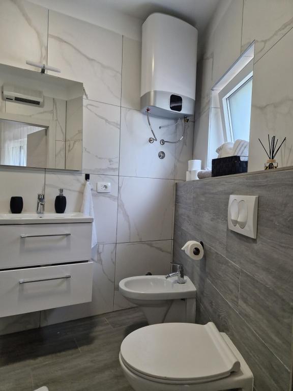 In one word, the apartments are great. The hosts are primarily very friendly and take care of the cleanliness of the pool and stairs every day. There were twenty of us. Mrs. Tanja hosted us all in the middle of the week. We didn't lack anything. We had everything from dishes, enough for all of us, we even had a grill, which we used, of course. There were also multiple clothes dryers, so our towels were dry by the next day (and earlier). Seats for two hundred Thank you for a nice stay
