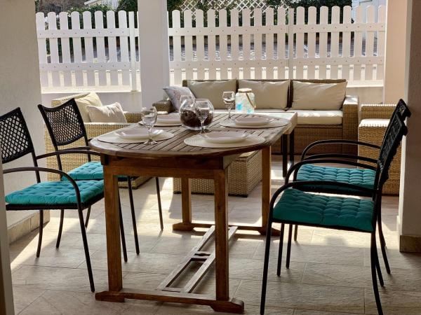 Modernly decorated and fully equipped apartment with a large terrace and garden. It is located in Baška, the most popular summer resort on the island of Krk, known for its most beautiful sandy beach. The apartment is located in a quiet street only 400 m from the main Bašča beach - Vela beach, all restaurants, cafes, and a promenade that surrounds the 3 km long beach. The apartment consists of a kitchen equipped with a hob, oven, refrigerator, necessary dishes, kettle, toaster, filter coffee machine. The bedroom is equipped with a 160x200 bed and a wardrobe. Bathroom with shower cabin. The living room is equipped with a TV, a satellite dish, a large sofa and a dining table. The second bed, size 160x200, is located in the living room. The apartment is air-conditioned and has unlimited WIFI. The terrace is equipped with garden furniture, and in the garden you can enjoy relaxing on the garden deckchairs and soaking up the sun's rays. In front of the building, 1 parking space per apartment is provided.