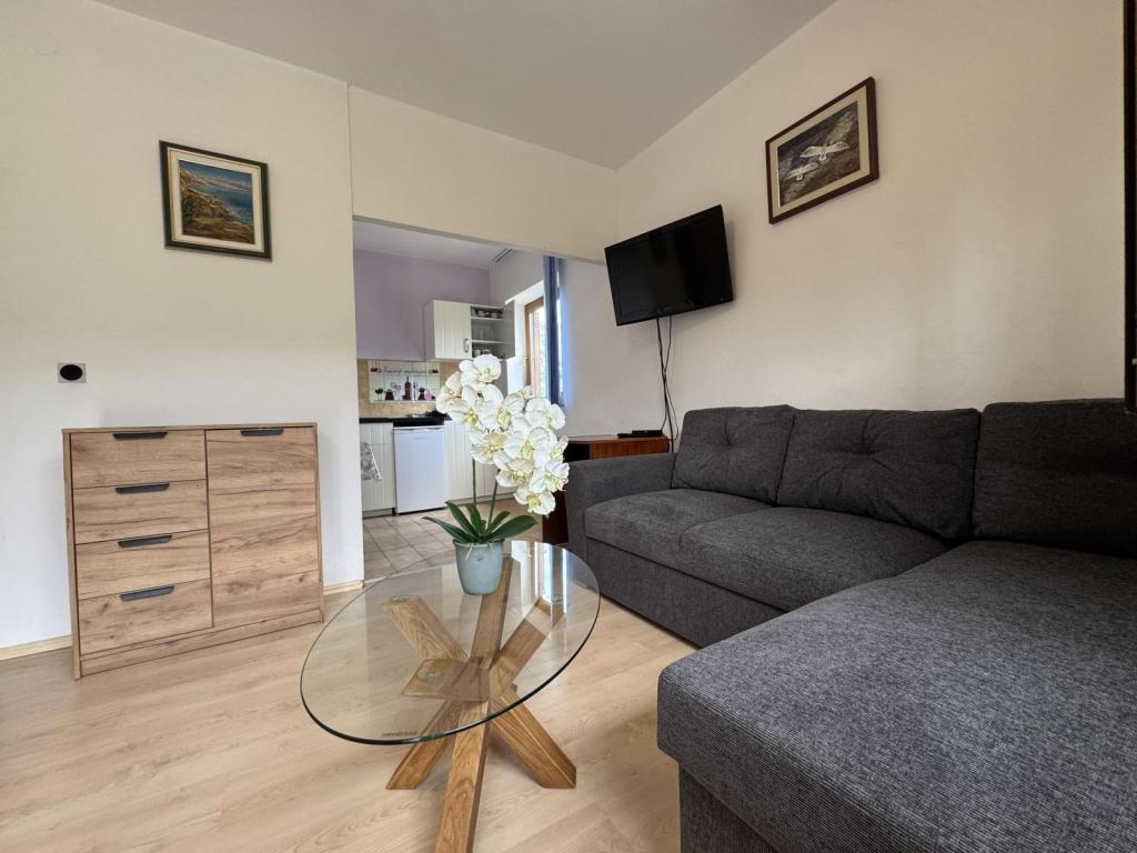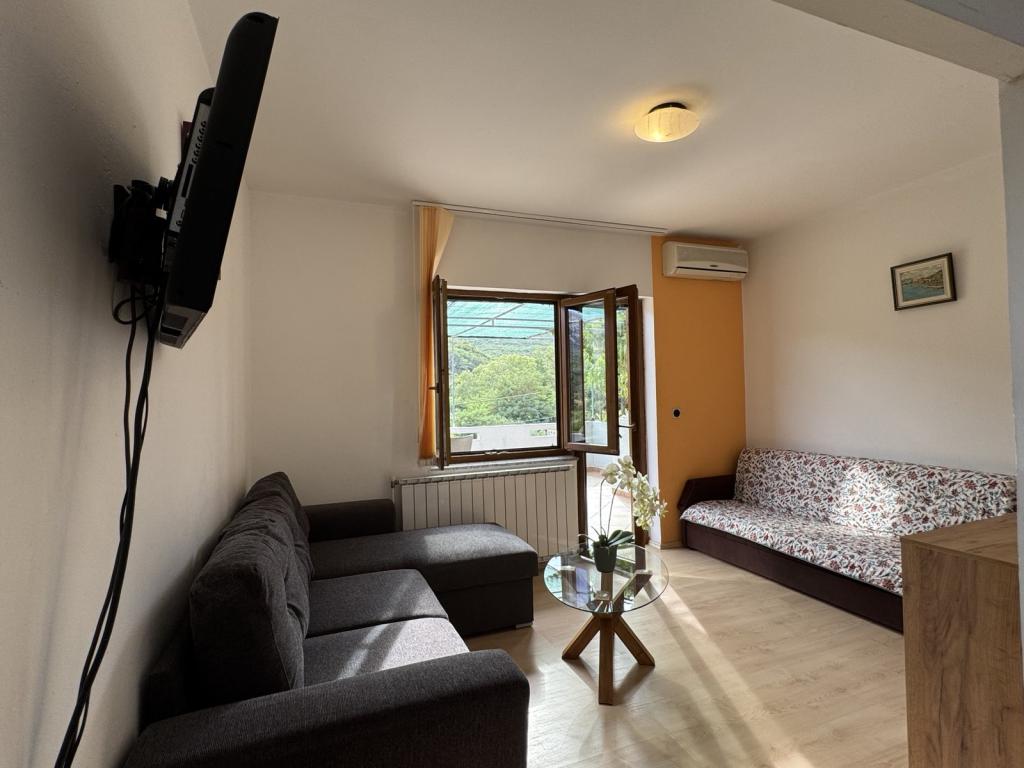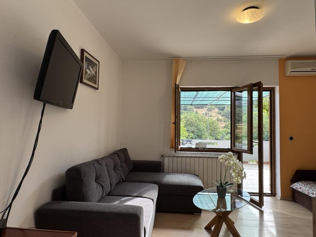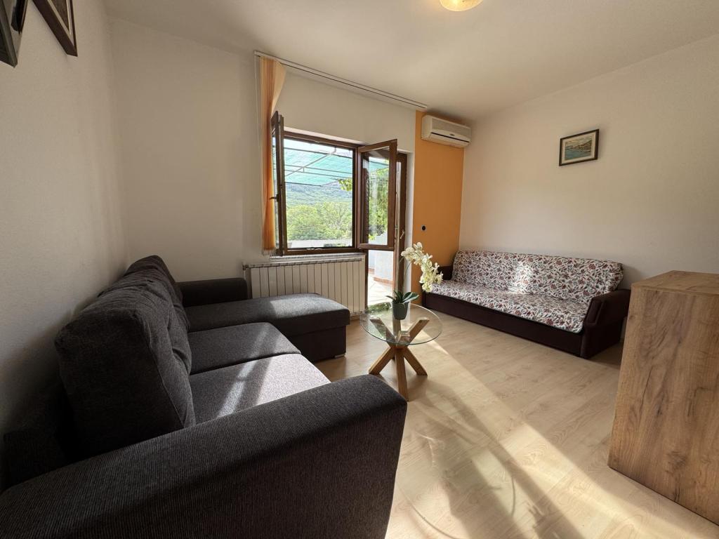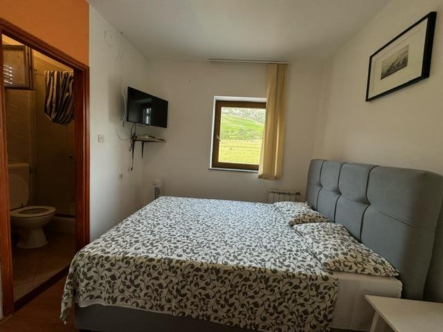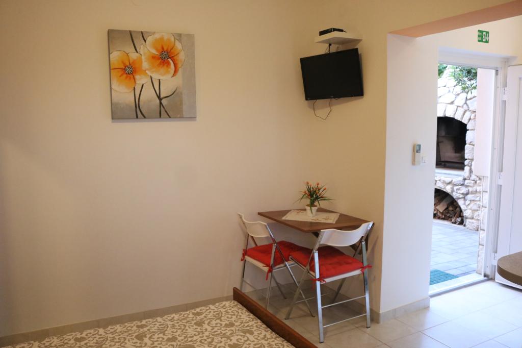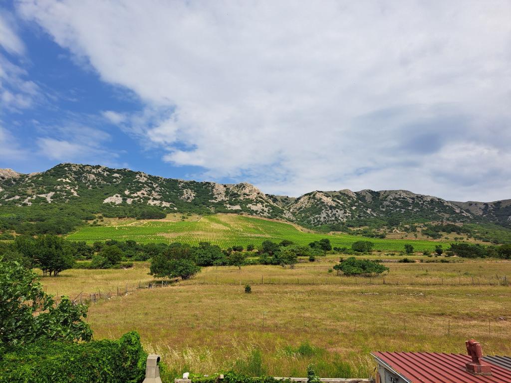 Apartments Gina are located in Draga Bašćanska, surrounded by greenery, a few minutes by car from Vela Plaža, only 3km away. The apartments have their own separate terrace/balcony, and the room overlooks the mountain and the vineyard where Vrbnička žlahtina is planted. In the yard there is also a barbecue area, an outdoor table for guests, and parking for cars.