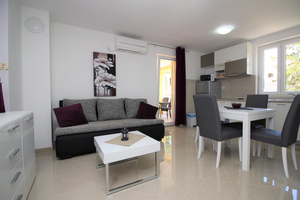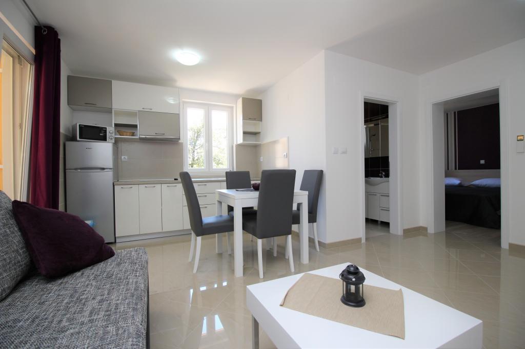 Modernly furnished apartments, just a 5-minute walk from the beautiful Vela Beach, with a shared outdoor pool and barbecue. The house has 9 apartments equipped with a dishwasher, washing machine, safe, air conditioning, Internet and SAT-TV. Each apartment has one parking space. Pets are not welcome.