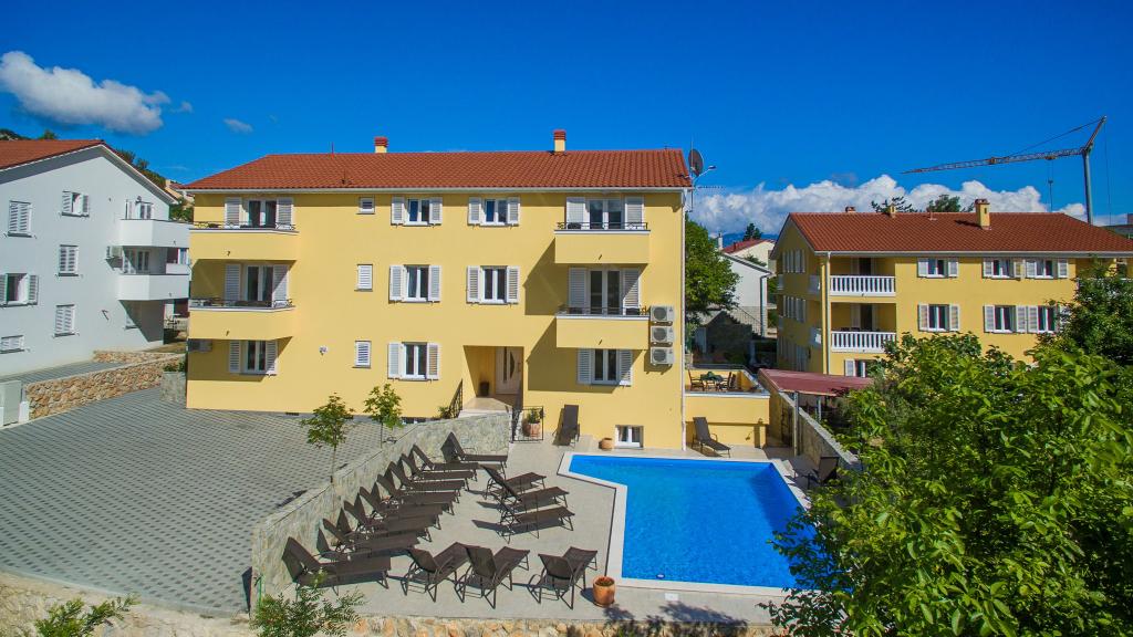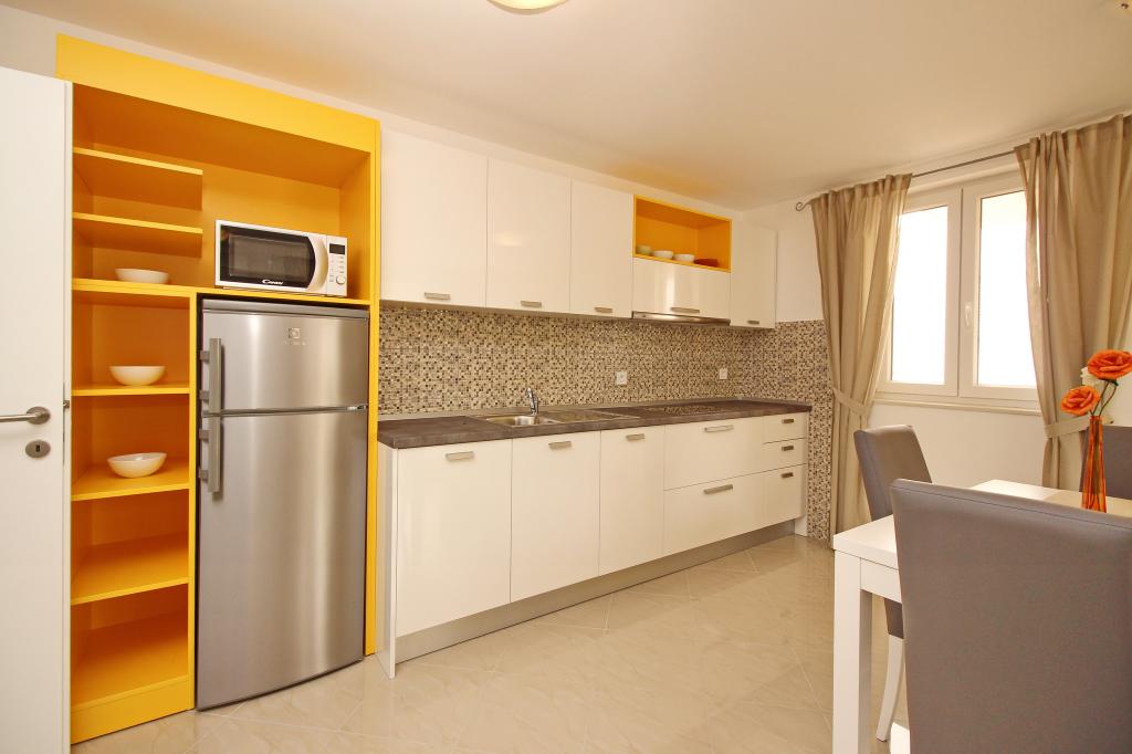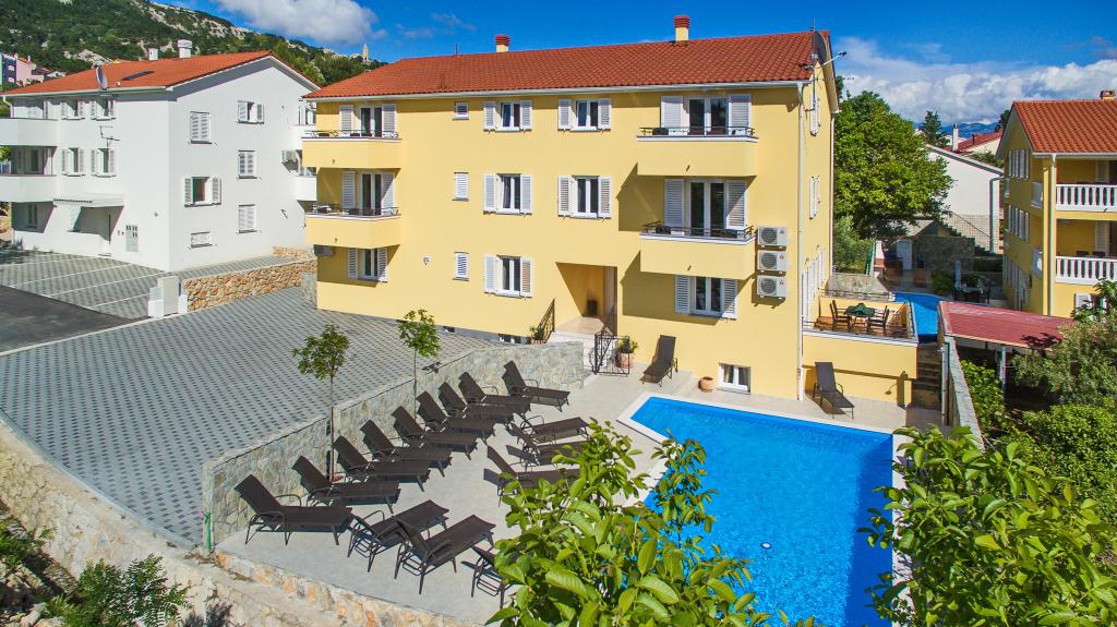 Modernly furnished apartments, only 300m from the beautiful Vela Plaža beach, with a shared outdoor pool and barbecue. The house has 13 apartments, 4 of which are located in the basement. The apartments in the basement use a shared terrace (20m2) located on the floor above. Each accommodation unit is equipped with a dishwasher, washing machine, air conditioning, Internet and SAT-TV. Guests have one parking space at their disposal. Pets are not welcome.
