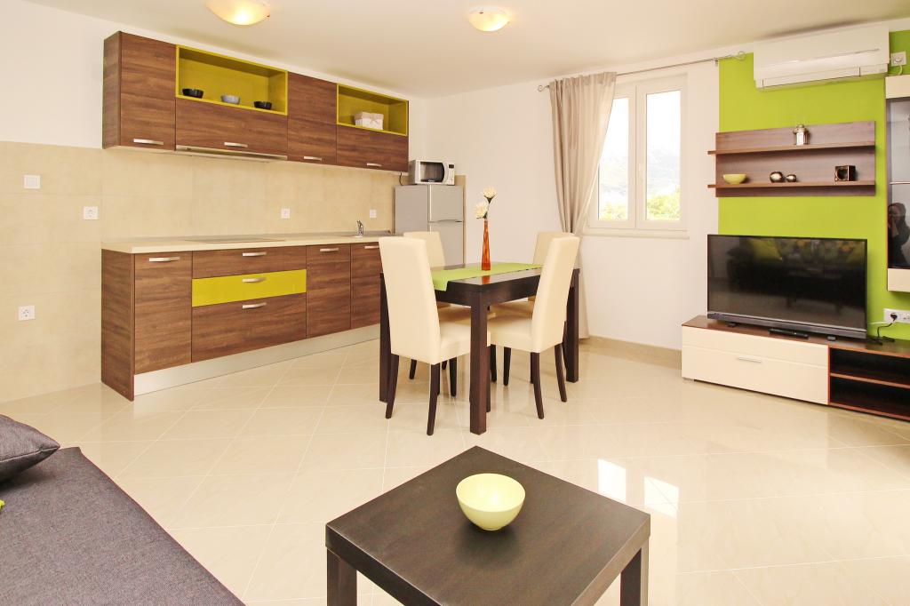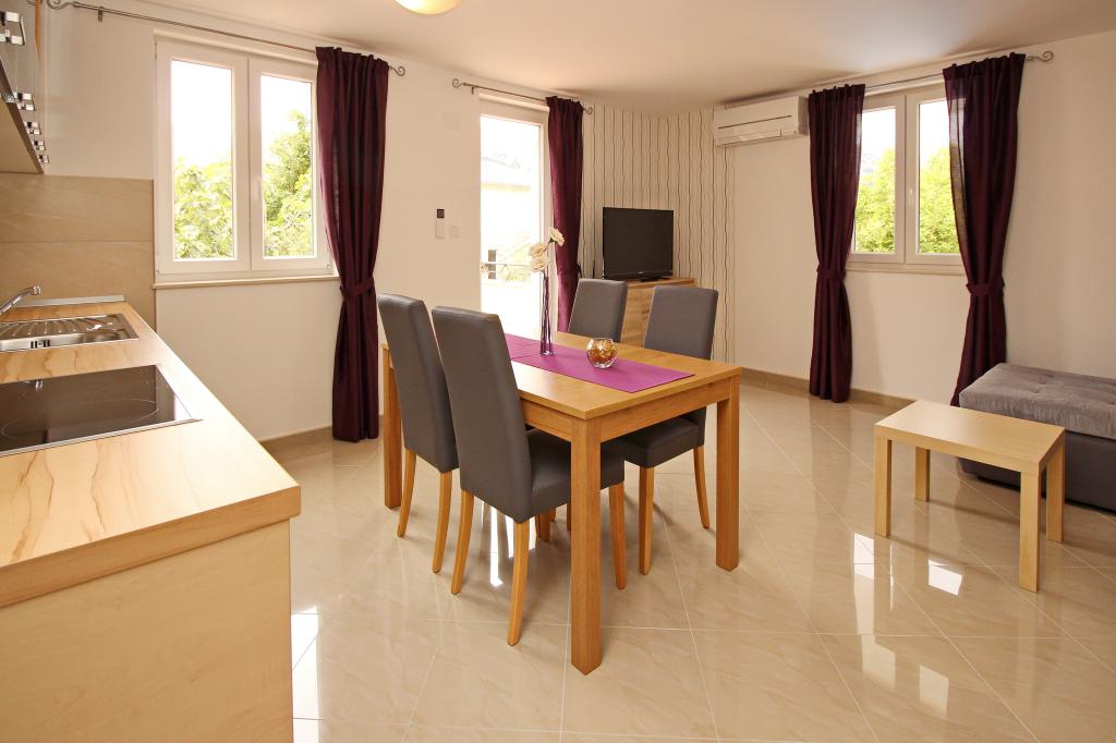Read more Accommodation unitsPlease note that reservations can be made for a minimum of 4 nights from 01.04.-20.06., for a minimum of 7 nights from 21.06.-05.09., and for a minimum of 4 nights from 06.09.-06.10. Prices will be displayed when you enter the desired period of stay and number of people. Prices by season can be seen under the € price list (on the right, under the pictures of the desired accommodation unit). Additional costs: tourist tax (adults 2.20 EUR/person/night; children 12-18 years 1.10 EUR/person/night) and registration fee (5 EUR/person/one-time). For a fixed reservation, a deposit of 30% of the total price of the apartment must be paid (via bank transfer). The remaining amount of accommodation, tax and registration fee is payable upon arrival. Check-in to the apartment is possible after 2 pm, departure is by 10 am.