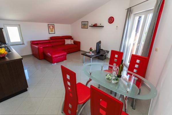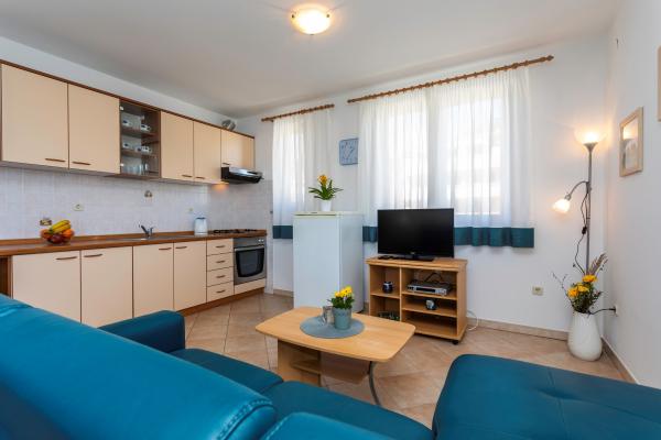The apartments are located in a quiet part of Baska. Widely known bašćanska sandy beach is only 200 m. The store is located 100 m and restaurants 200 m. In addition to swimming on the beautiful beach and the nearby smaller beaches, there is a possibility hiking and biking on well marked trails. In the garden secured parking for each apartment and a barbecue. We wish you a pleasant stay in our apartments.
