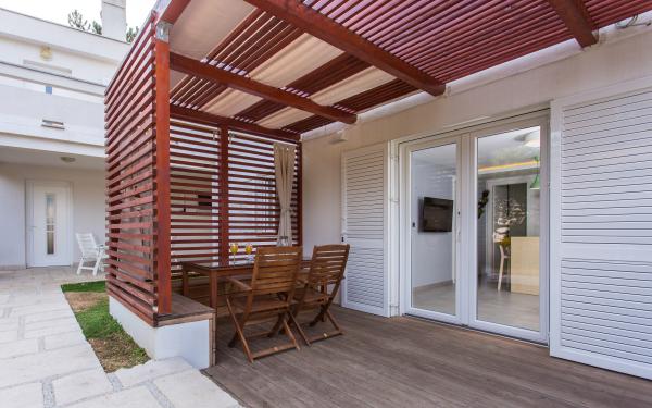 Perfect location in a quiet part of town. Very close to the beach. The owner is friendly, kind and very hospitable. Apartments super equipped, clean. The beautiful terrace in the apartment, surrounded by greenery, creates ideal conditions for relaxation. Perfect place!!!
