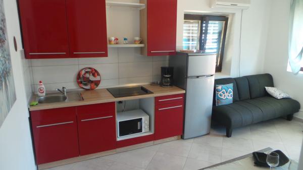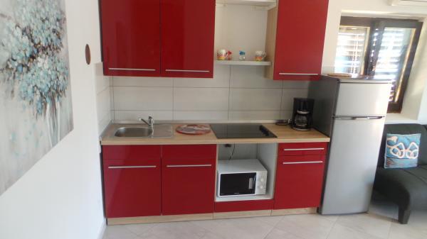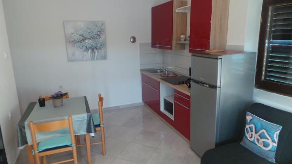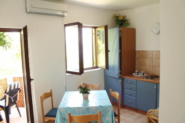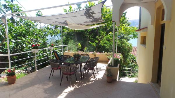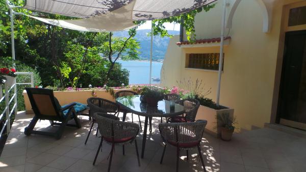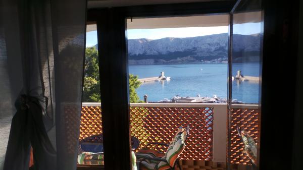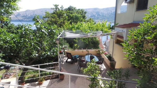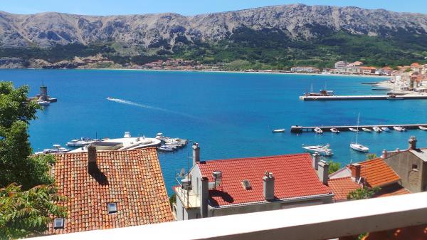 Fully furnished apartments with terrace and direct sea view and all over Baska. Apartment Robi is an apartment with a balcony overlooking the sea but on the side of the house. The sea-going facility leads to the stairs and is not suitable for the poorly movable persons, the person on the wheelchair. The facility has its own parking lot. Close to FKK beaches. The first few beaches are only 100 m away, and to the beach of Vele, the famous 2 km long beach of Baška is about 15 minutes walk to the sea. The house is located in a quiet place, above the harbor, suitable for guests with a boat.