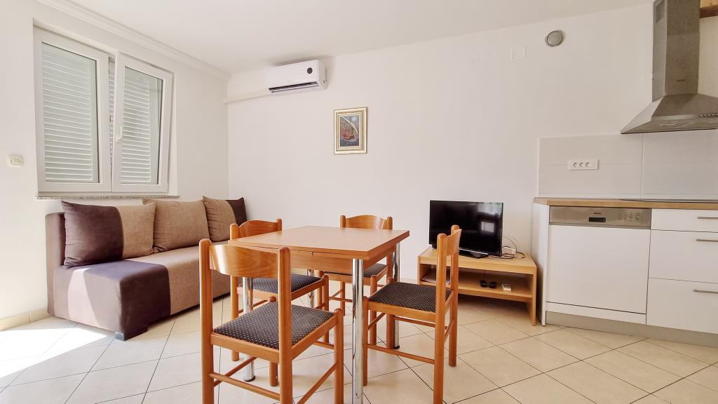 Accommodation unitsPlease note that reservations can be made for a minimum of 4 nights from 01.03.-19.06., for a minimum of 7 nights from 20.06.-04.09., and for a minimum of 4 nights from 05.09.-06.10. The prices will be displayed when you enter the desired period of stay and number of people. You can see the prices by season under the € price list (on the right, under the pictures of the desired accommodation unit). Additional costs: registration (5 EUR/person/one-time). Pets - allowed - on request - (10 EUR/pet/night) For a fixed reservation, it is necessary to pay an advance payment (via bank) in the amount of 30% of the total price of the apartment. The rest of the accommodation and registration fee is paid upon arrival. Check-in to the apartment is possible after 2 pm, departure is by 10 am.